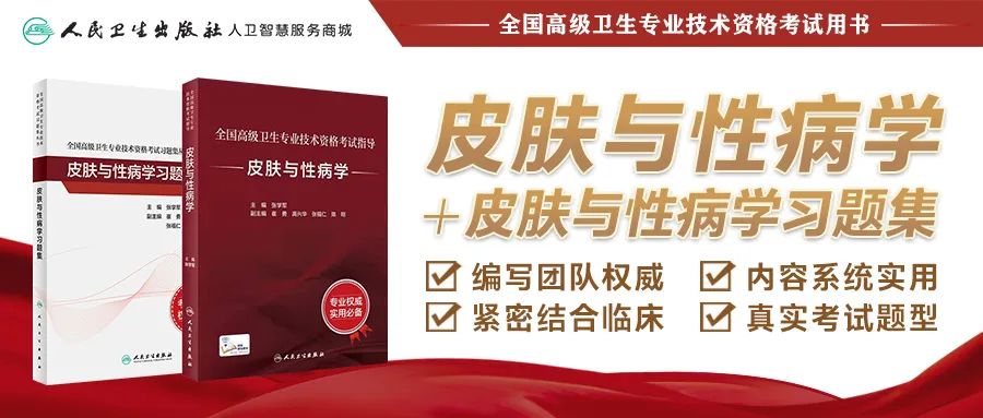 国家卫生健康委人才交流服务中心《中国卫生人才》杂志社与人民卫生出版社共同组织权威专家,编写出版了《全国高级卫生专业技术资格考试指导 皮肤与性病学》和配套《皮肤与性病学习题集》。