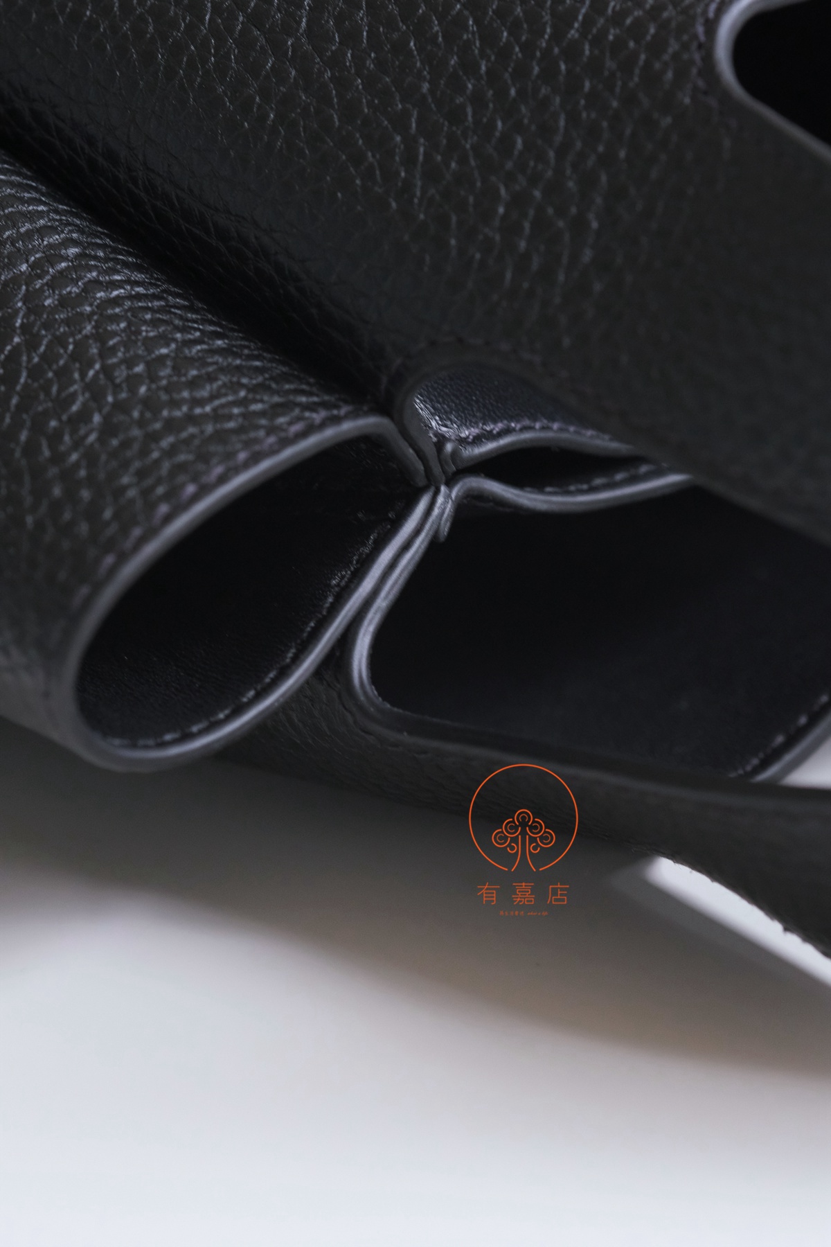 有一个夹层,同时有磁吸扣,客供的原厂意大利荔枝纹牛皮,皮料软糯有肉感,毛孔清晰可见。