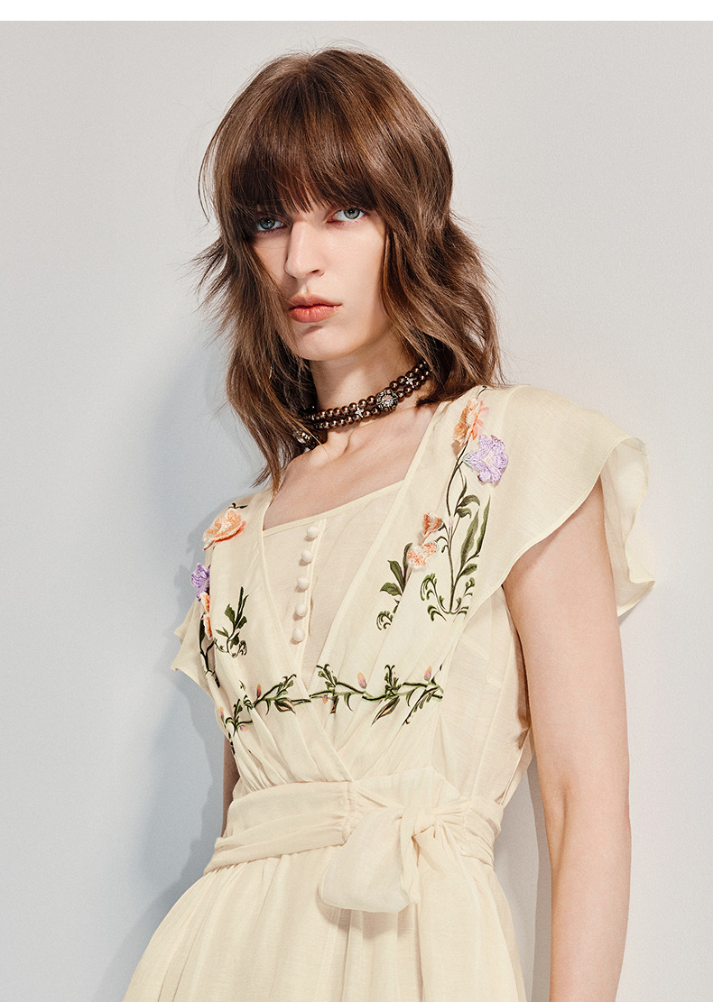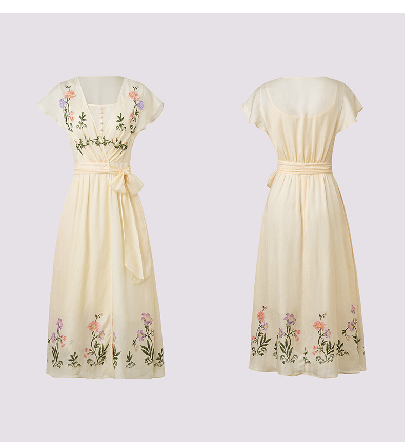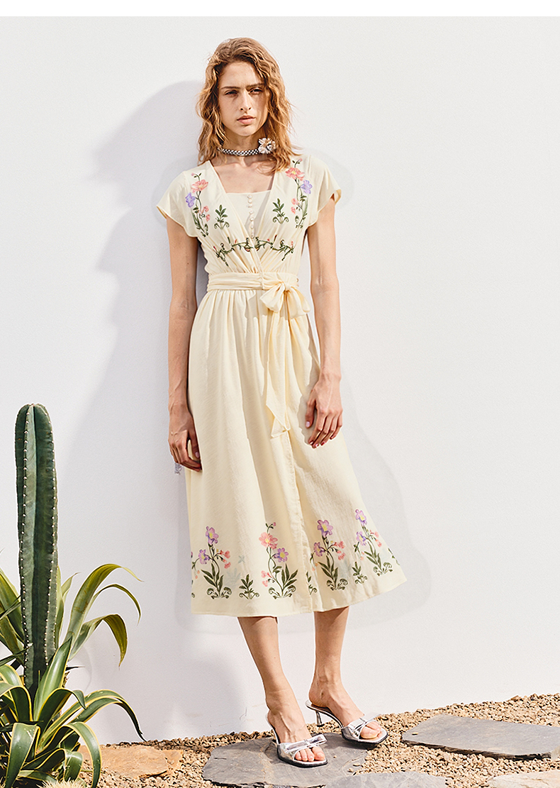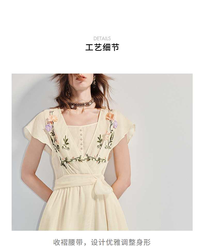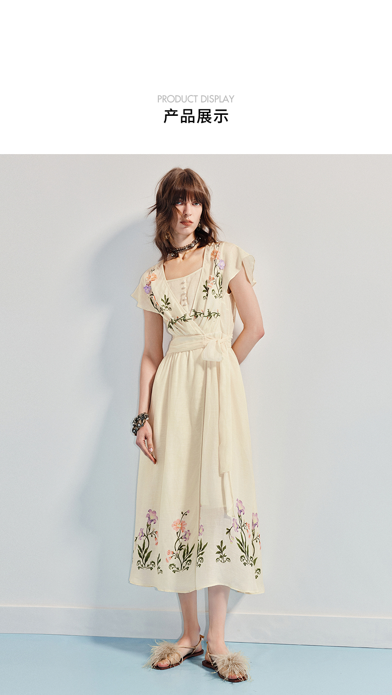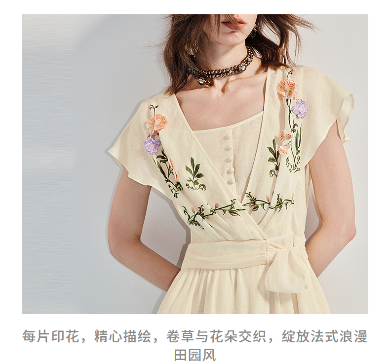 【杨超越同款】MAXRIENY优雅度假风连衣裙25夏款法式田园系带长裙(货号:MC86DR058)