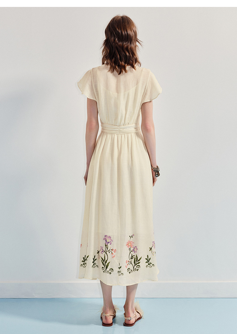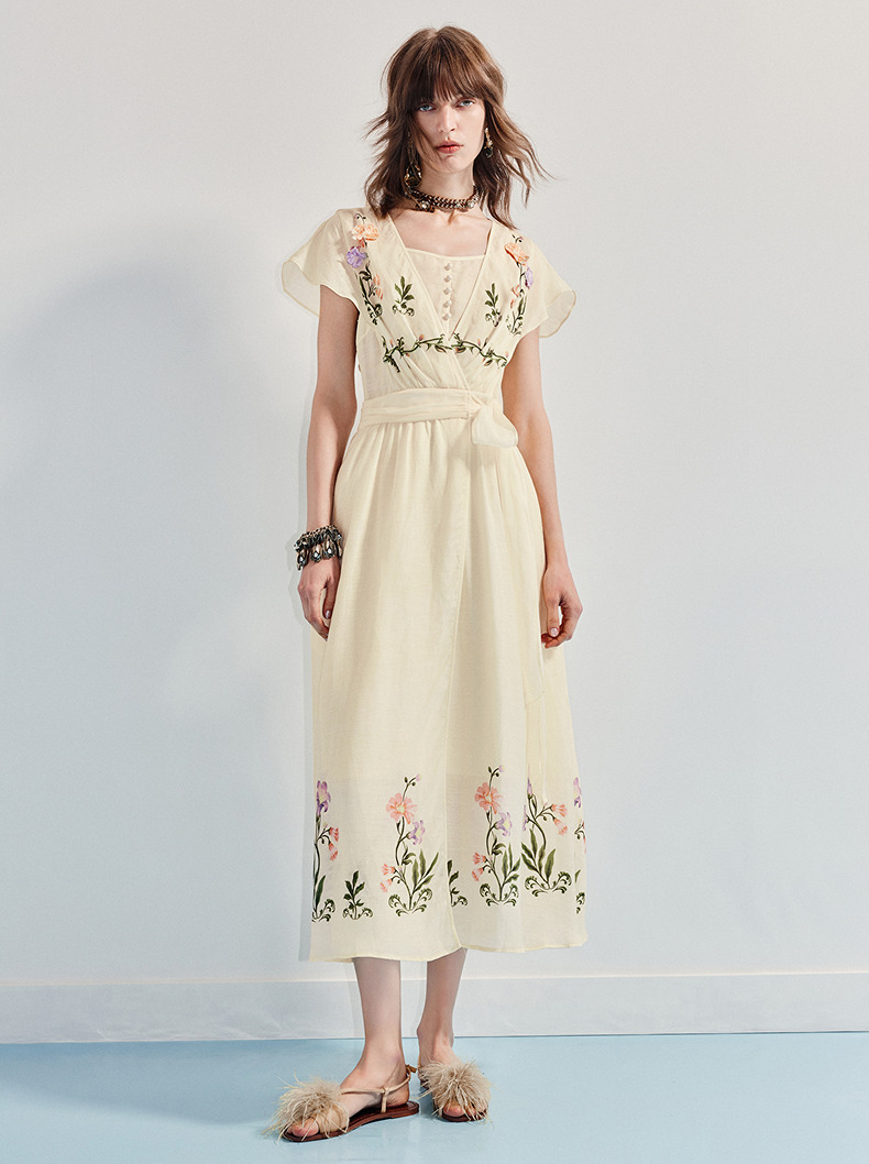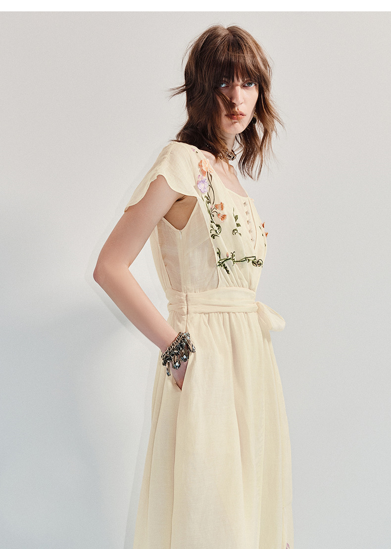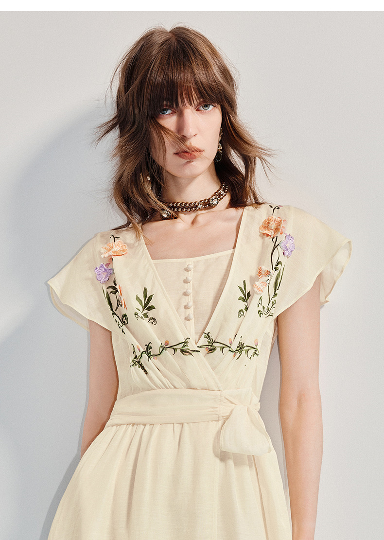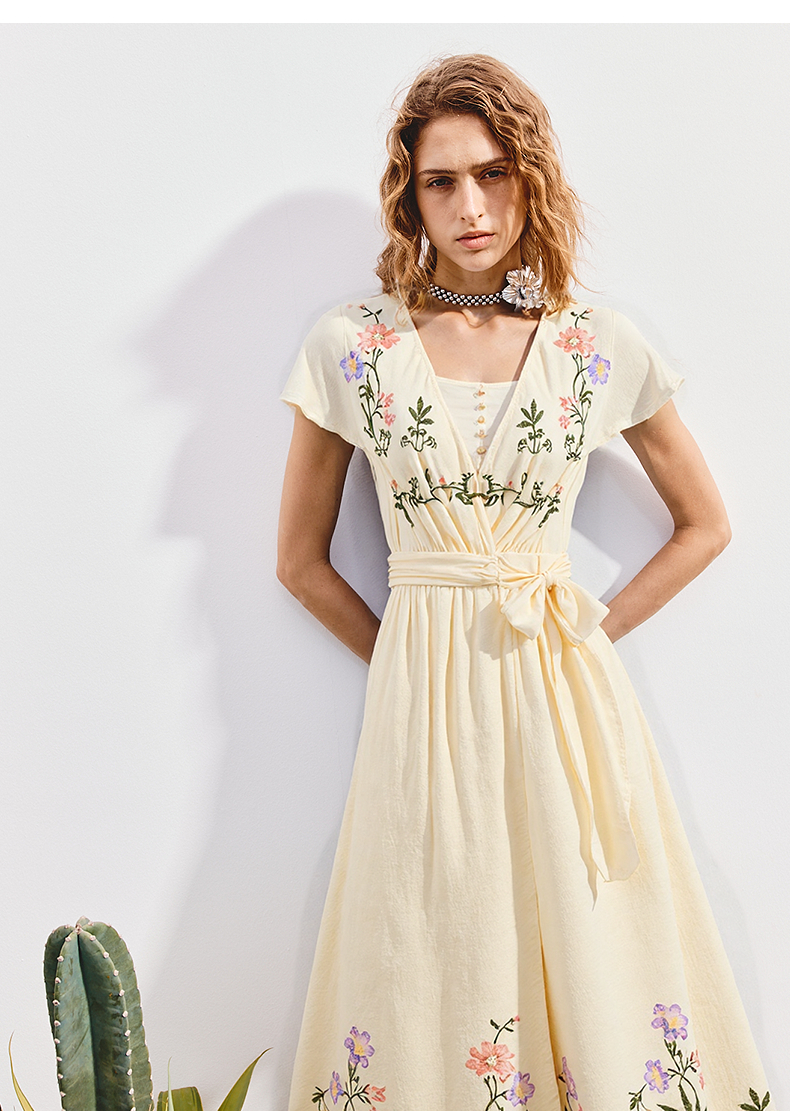 【杨超越同款】MAXRIENY优雅度假风连衣裙25夏款法式田园系带长裙(货号:MC86DR058)