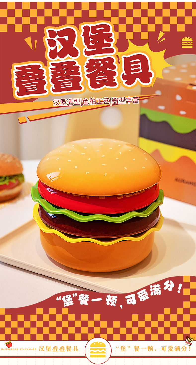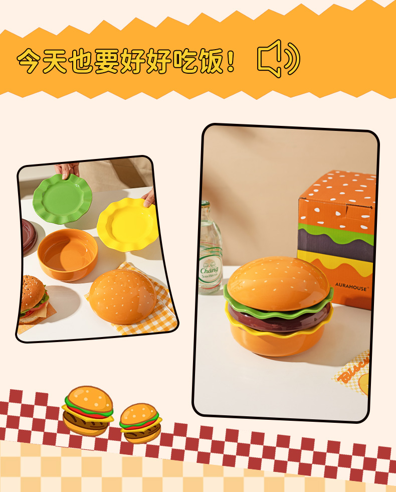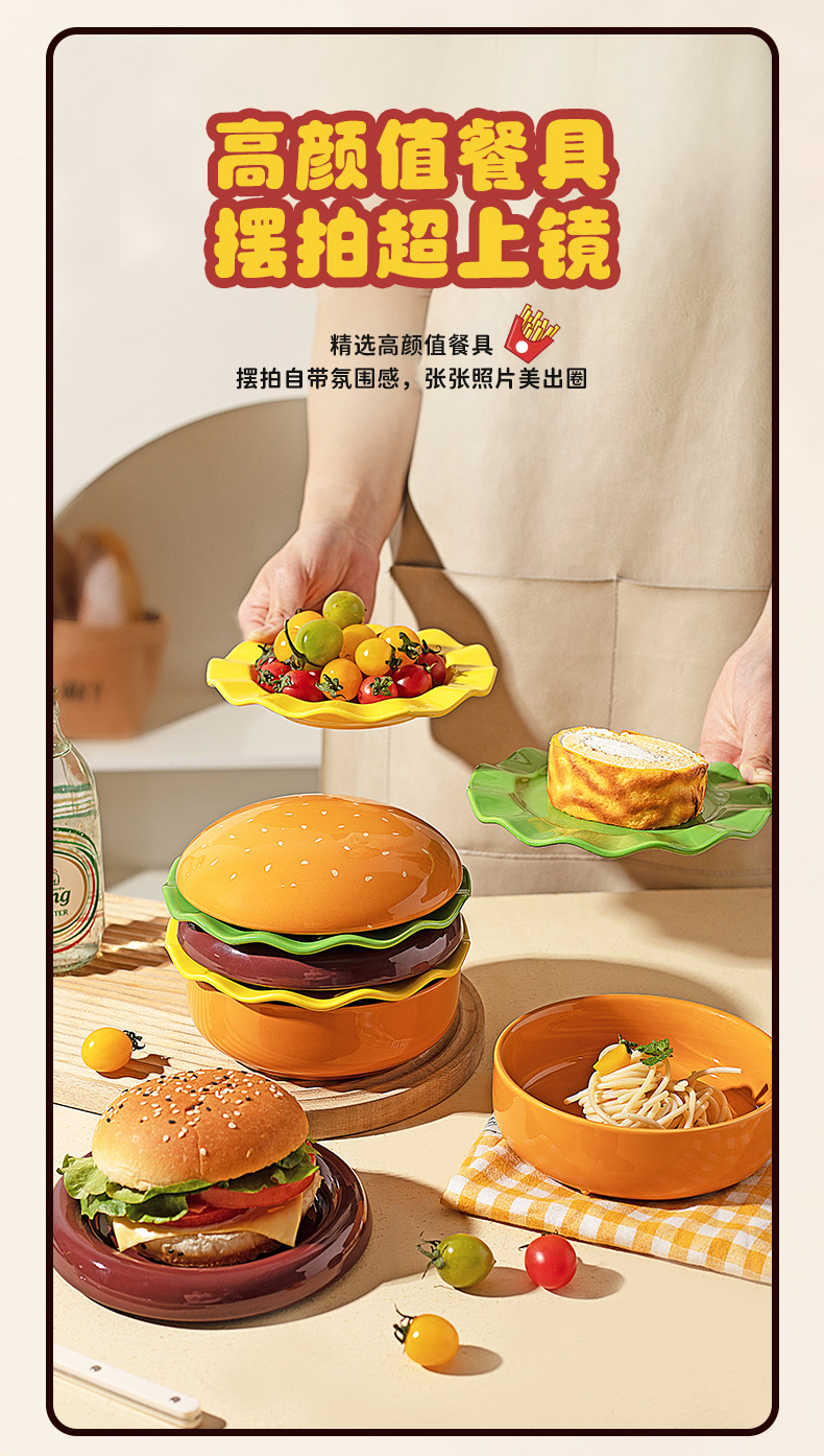 摩登主妇汉堡包餐具套装碗碟家用漂亮的餐盘可爱碗具组合生日礼物