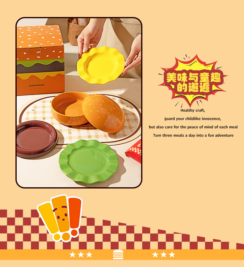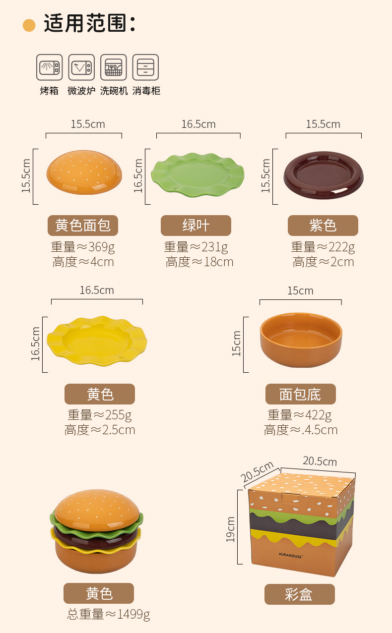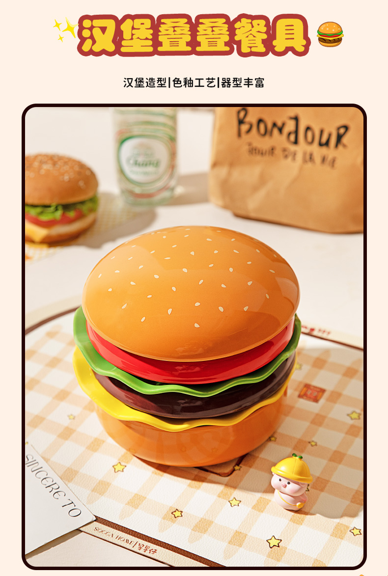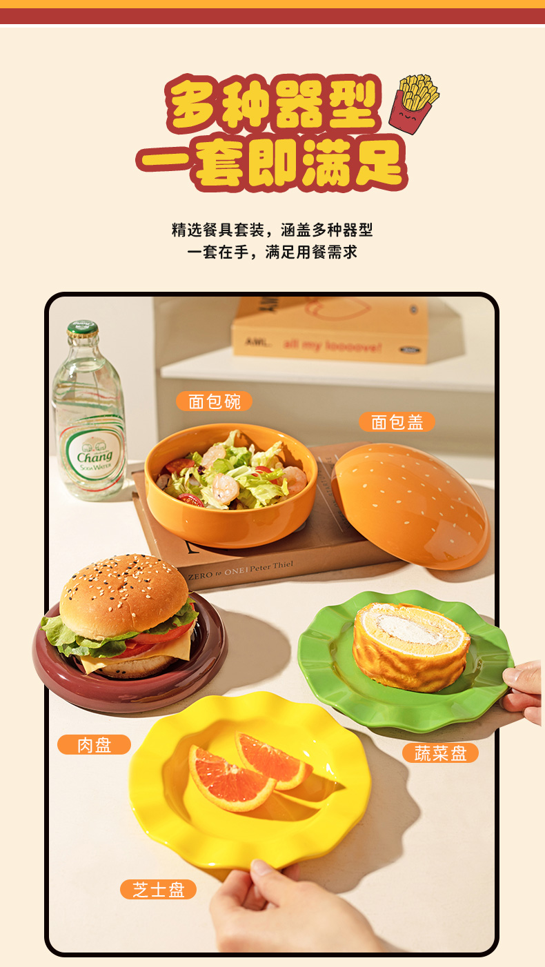 摩登主妇汉堡包餐具套装碗碟家用漂亮的餐盘可爱碗具组合生日礼物