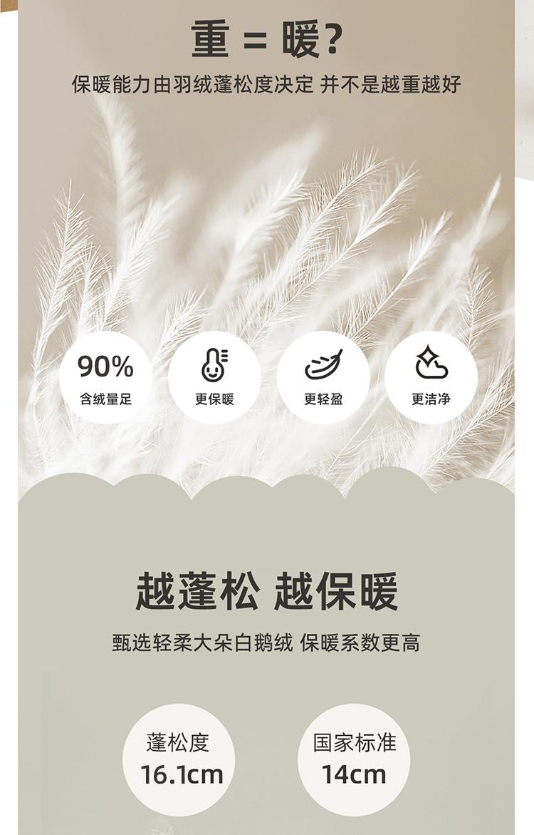 1、90白鸭绒,双倍充绒,不跑绒,中长款更保暖;