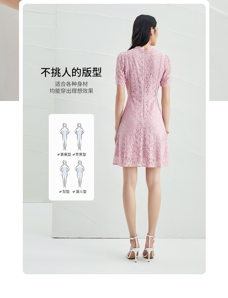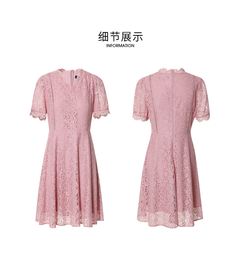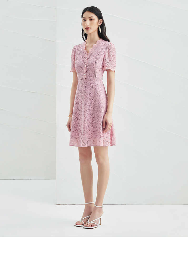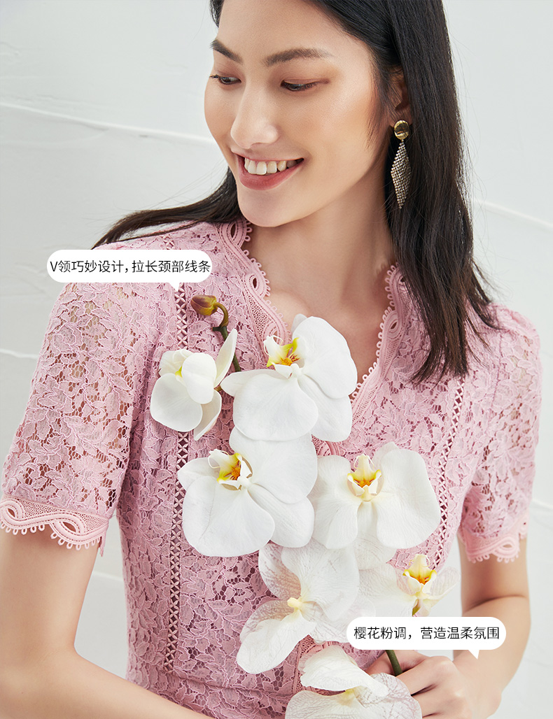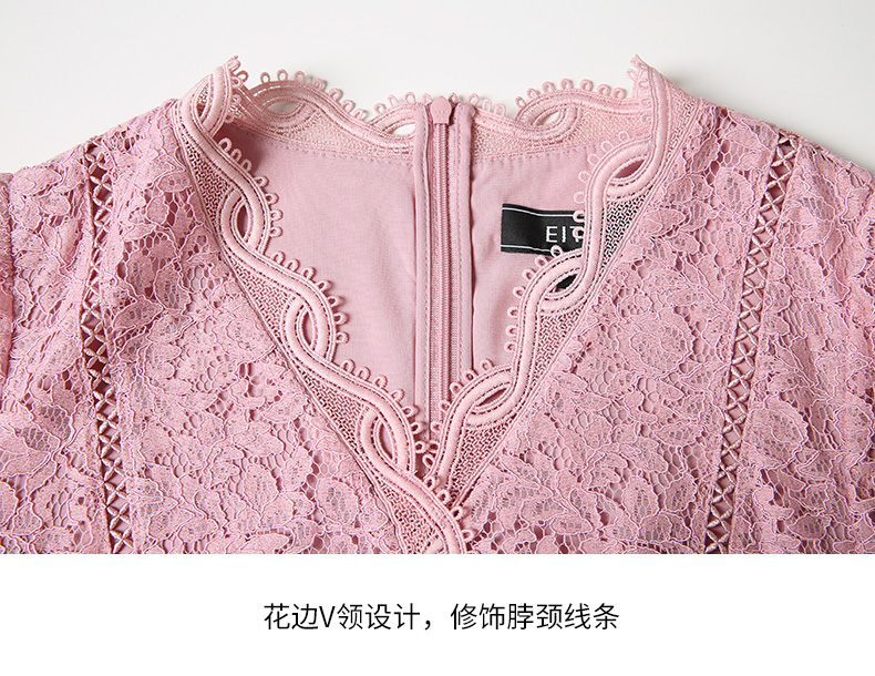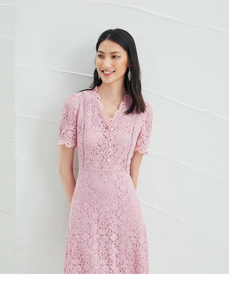 EITIE爱特爱夏季新款时尚气质优雅通勤v领收腰a字蕾丝连衣裙B2207952