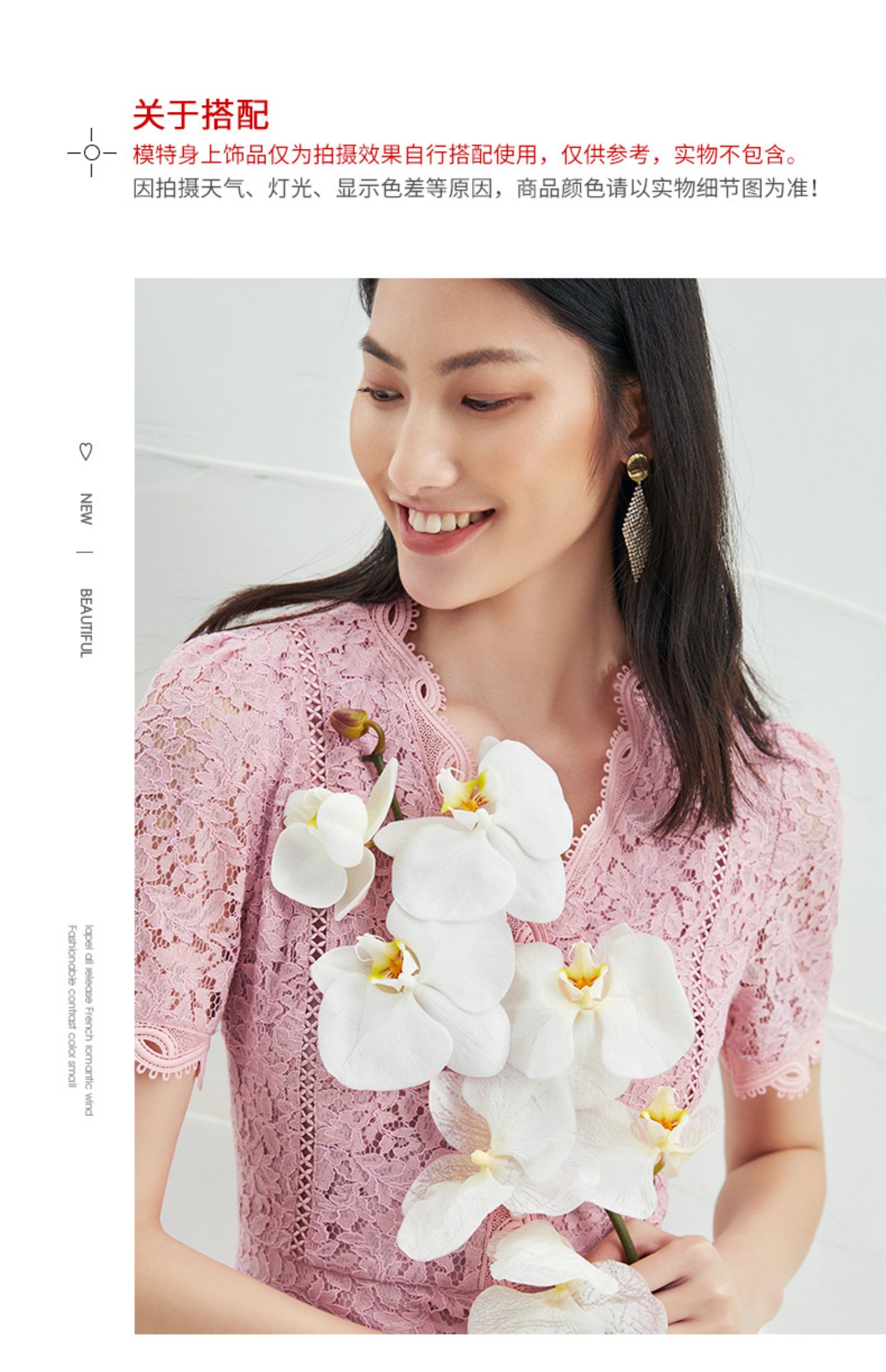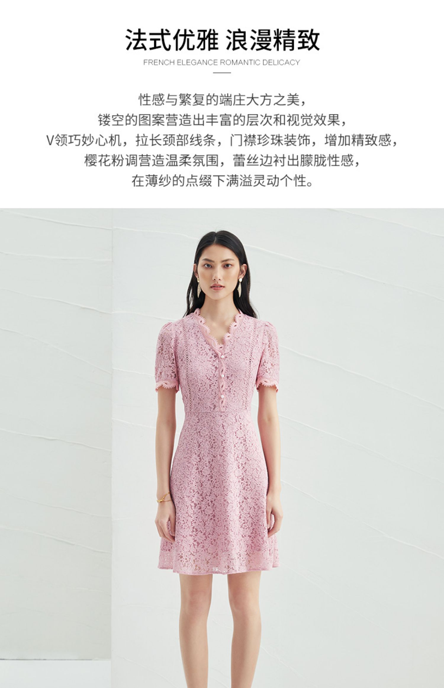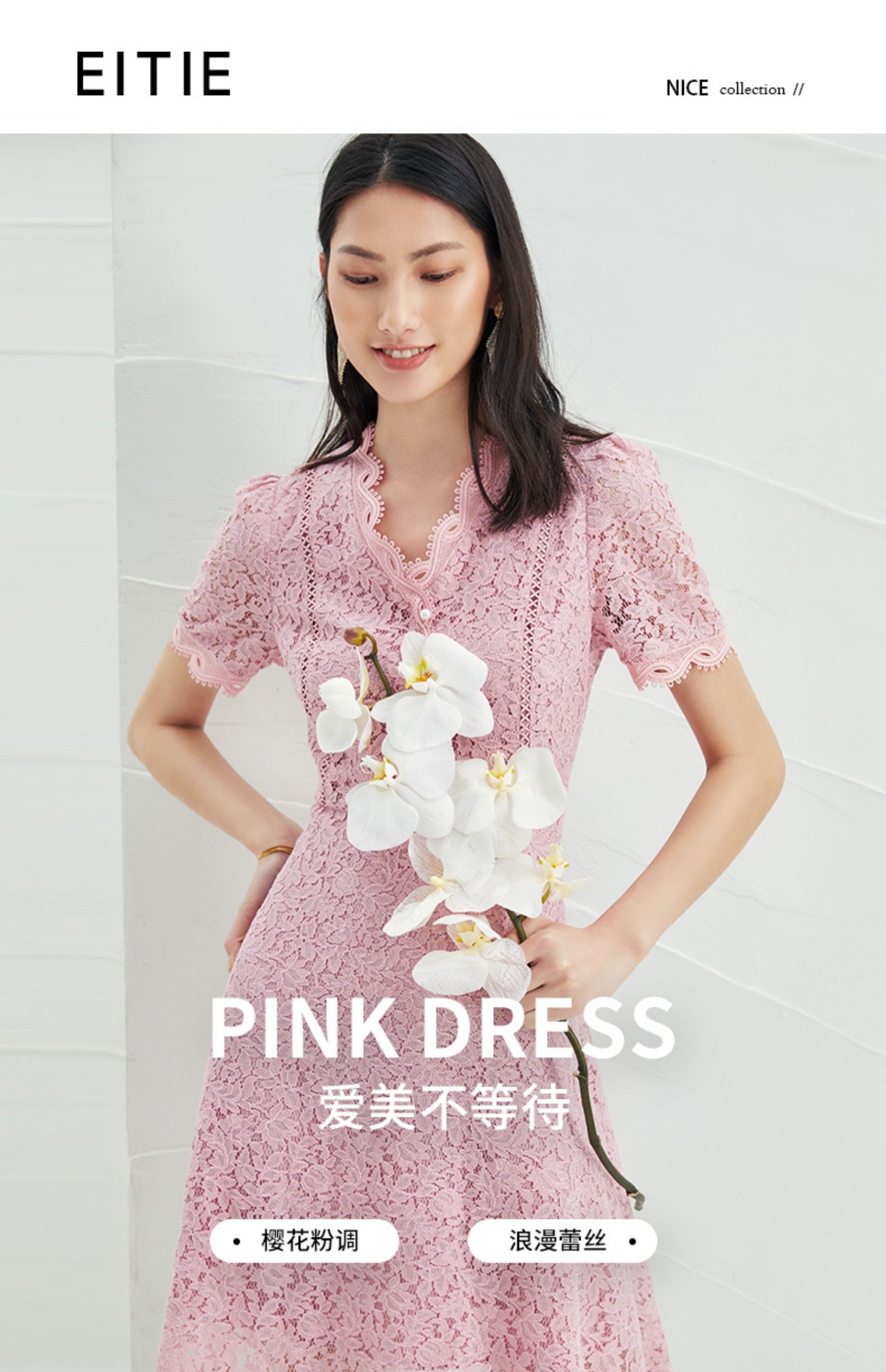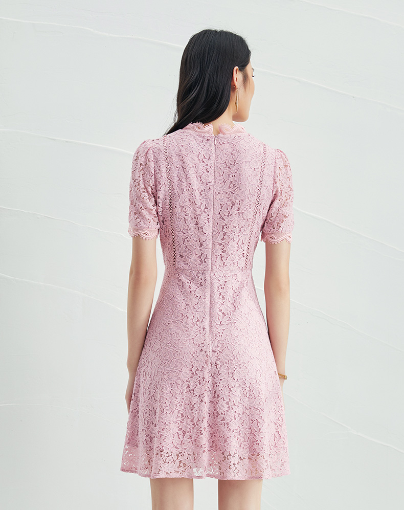 EITIE爱特爱夏季新款时尚气质优雅通勤v领收腰a字蕾丝连衣裙B2207952