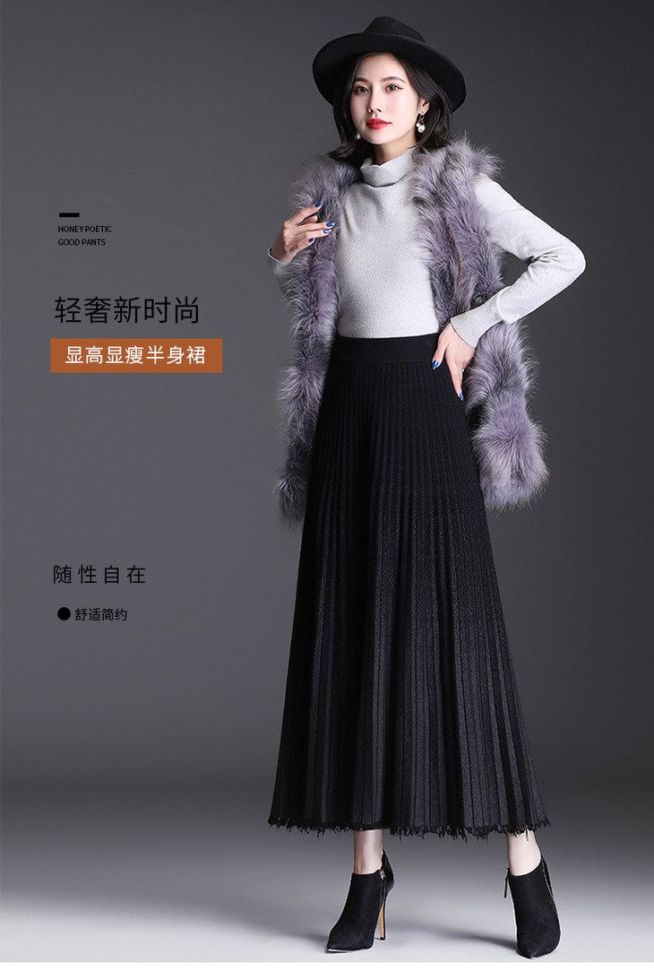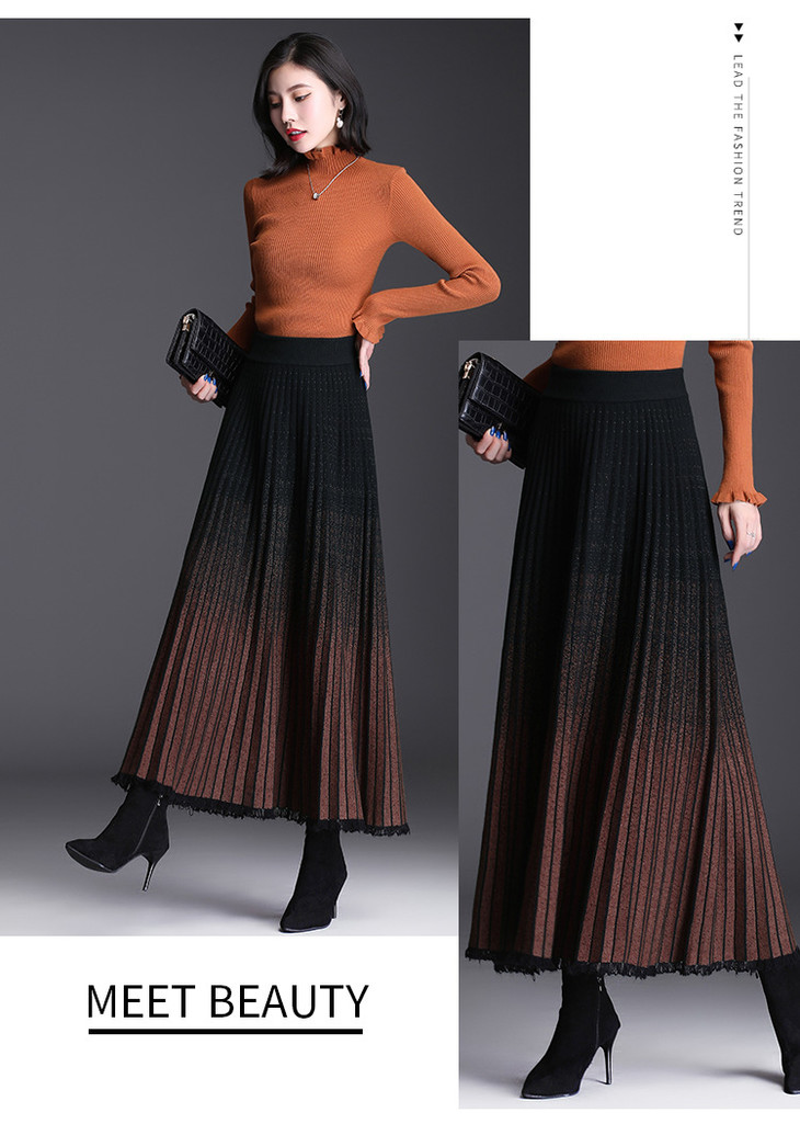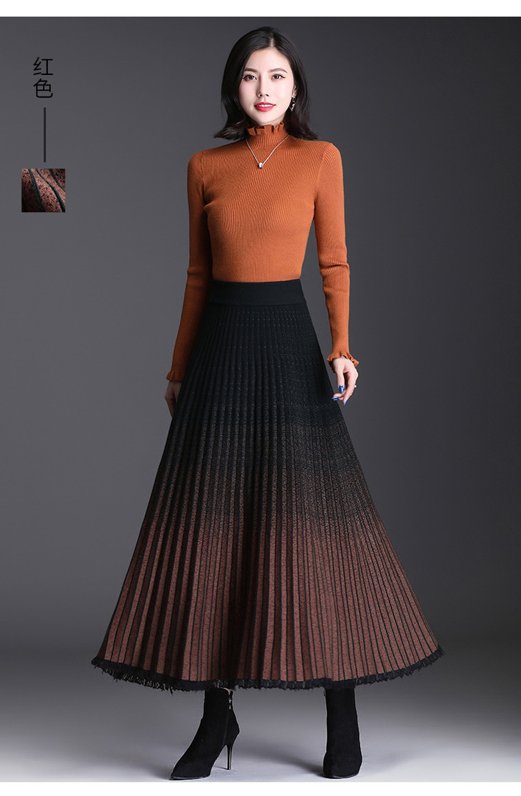 AL2296气质羊毛混纺渐变色A字半身裙