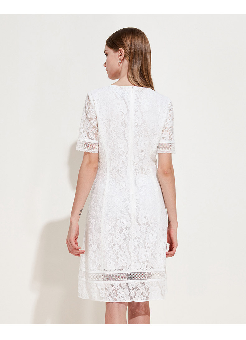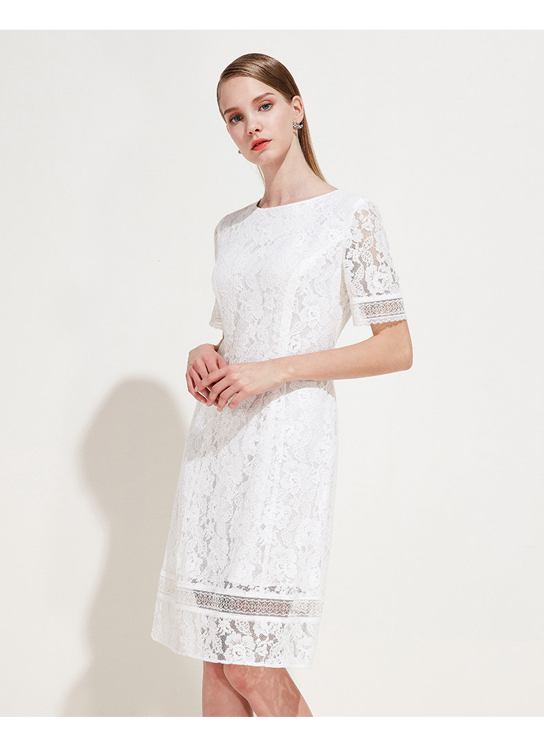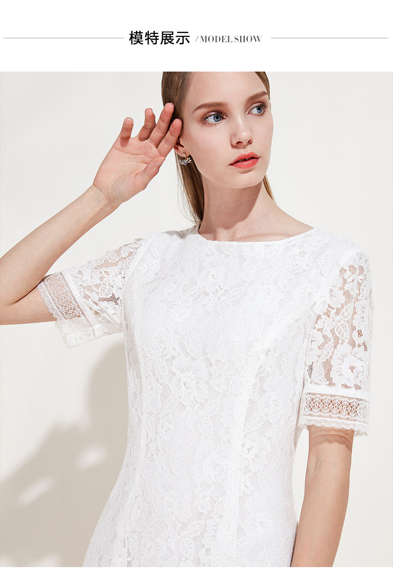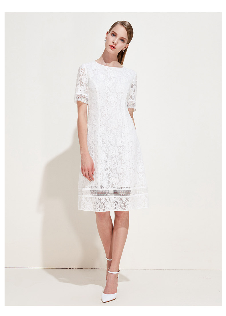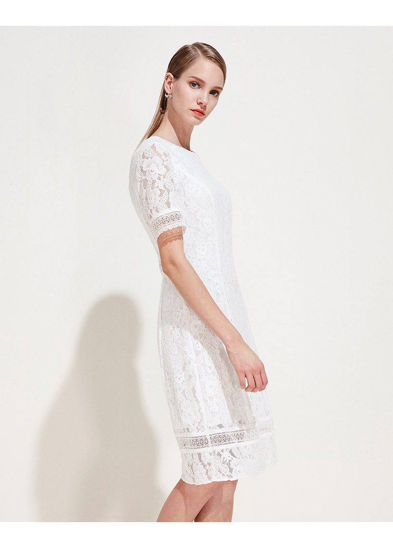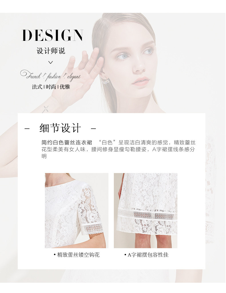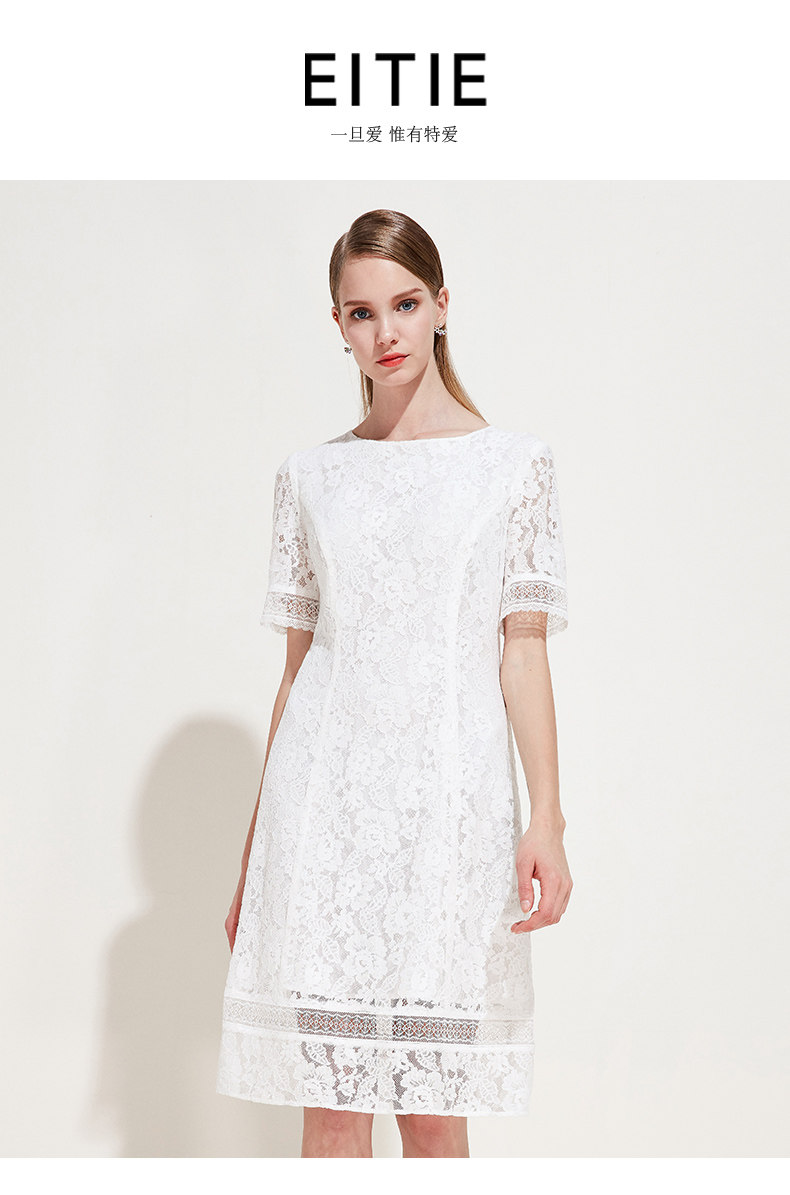 EITIE爱特爱女装新夏季仙女超仙短袖气质简约白色蕾丝连衣裙B1907250