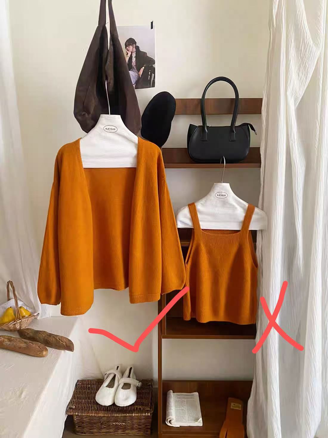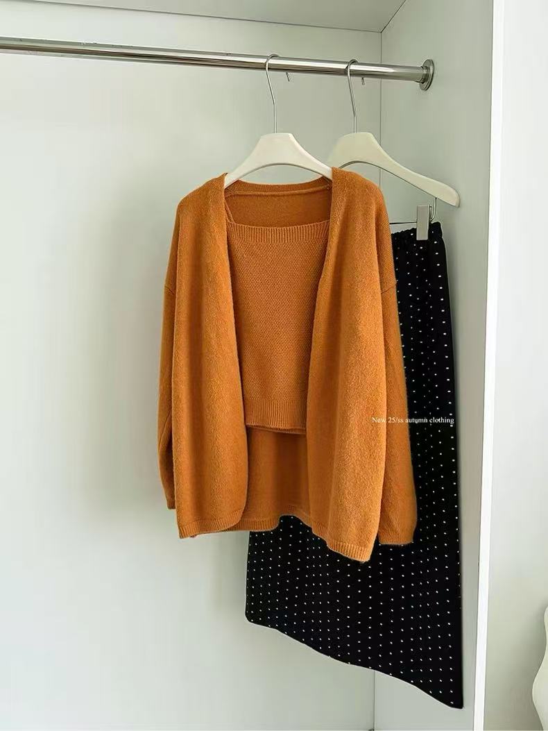 【韩系毛衣】单件休闲南瓜色针织开衫外搭针织毛衣-喜出