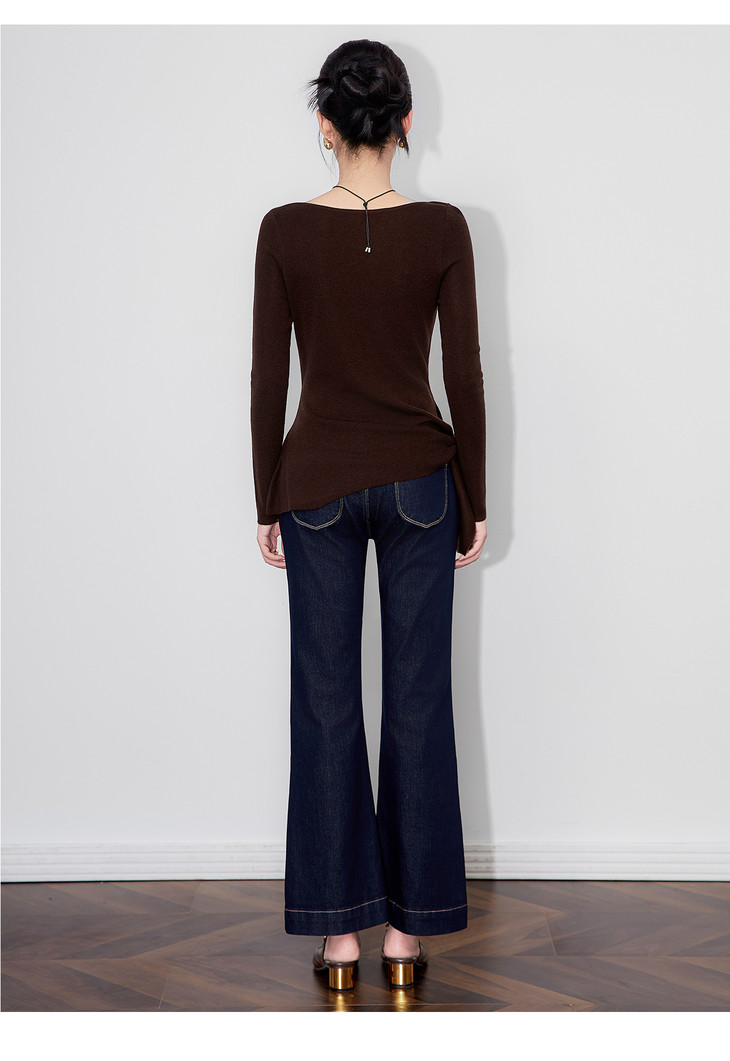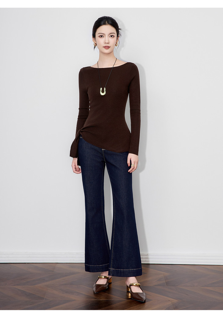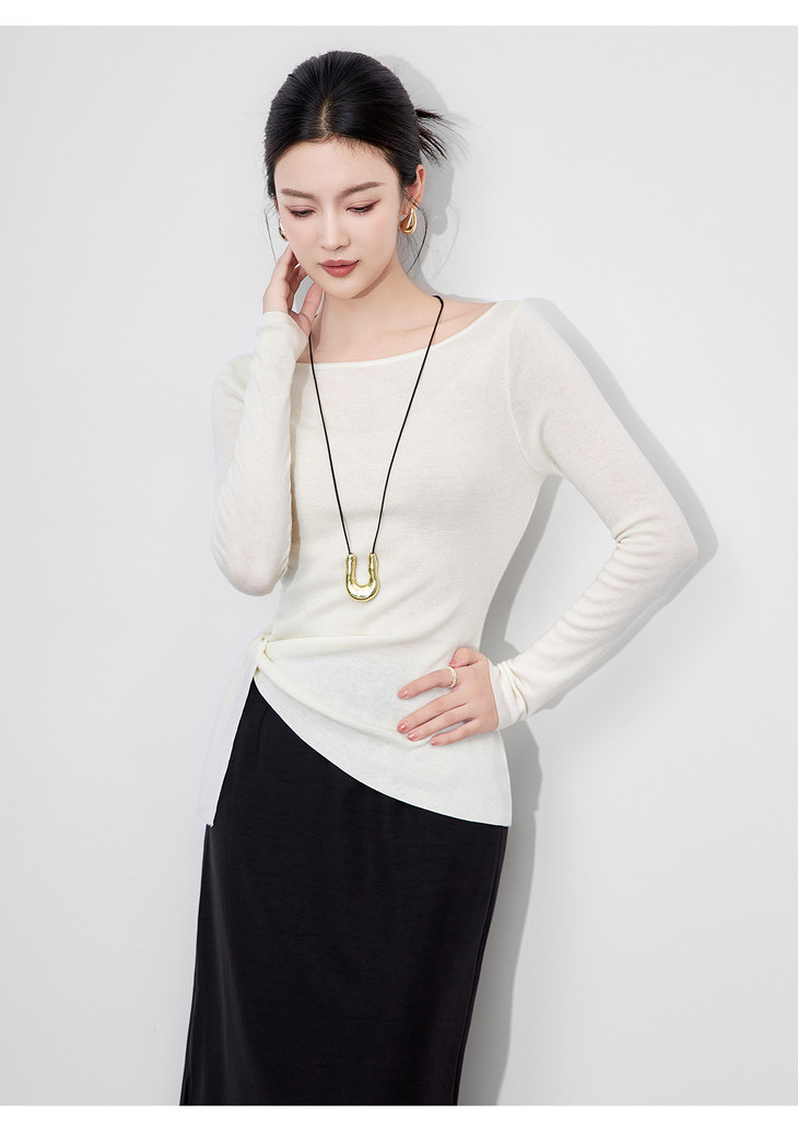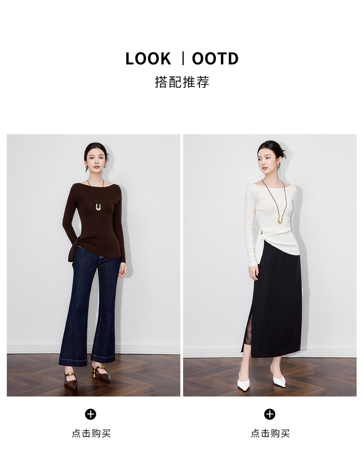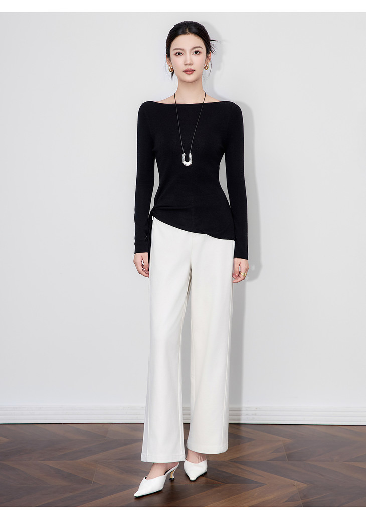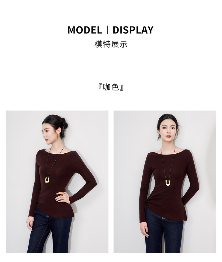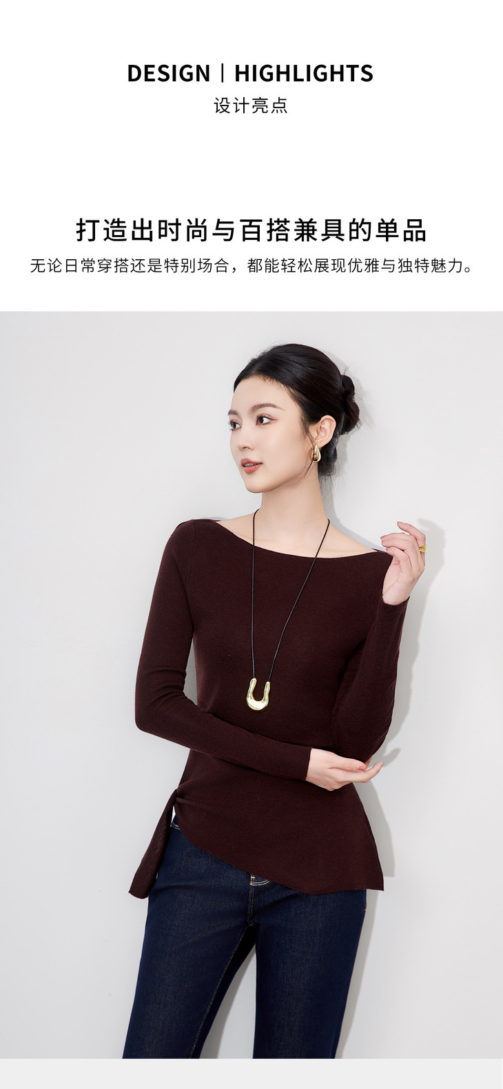设计感一字领绑带羊毛针织衫,极简风收腰长袖上衣WLZD-2511101