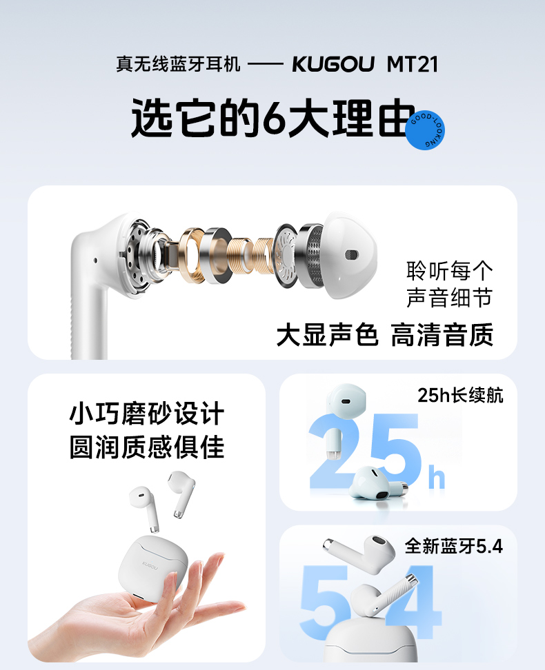 酷狗真无线蓝牙耳机 高解析音质运动长续航便携小巧