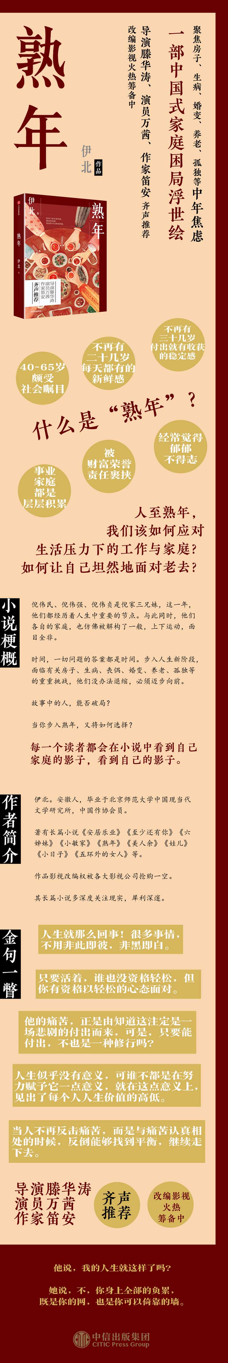 4. 改编影视火热筹备中,导演滕华涛、演员万茜、作家笛安 齐声推荐。作者著作丰厚,其长篇小说多深度关注现实,犀利深邃。本书《熟年》,以及其所著的《安居乐业》《至少还有你》《六姊妹》《小敏家》《熟年》《美人余》《娃儿》的影视版权均被抢购一空。等剧太漫长?不如来看原著!