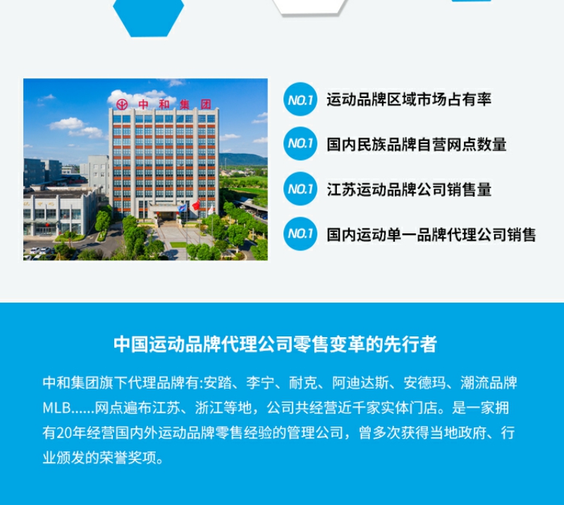 - 中和集团旗下代理安踏、李宁、耐克、安德玛、耐克、中国李宁、MIB等运动时尚品牌,网点遍布江苏、浙江、湖北等身份