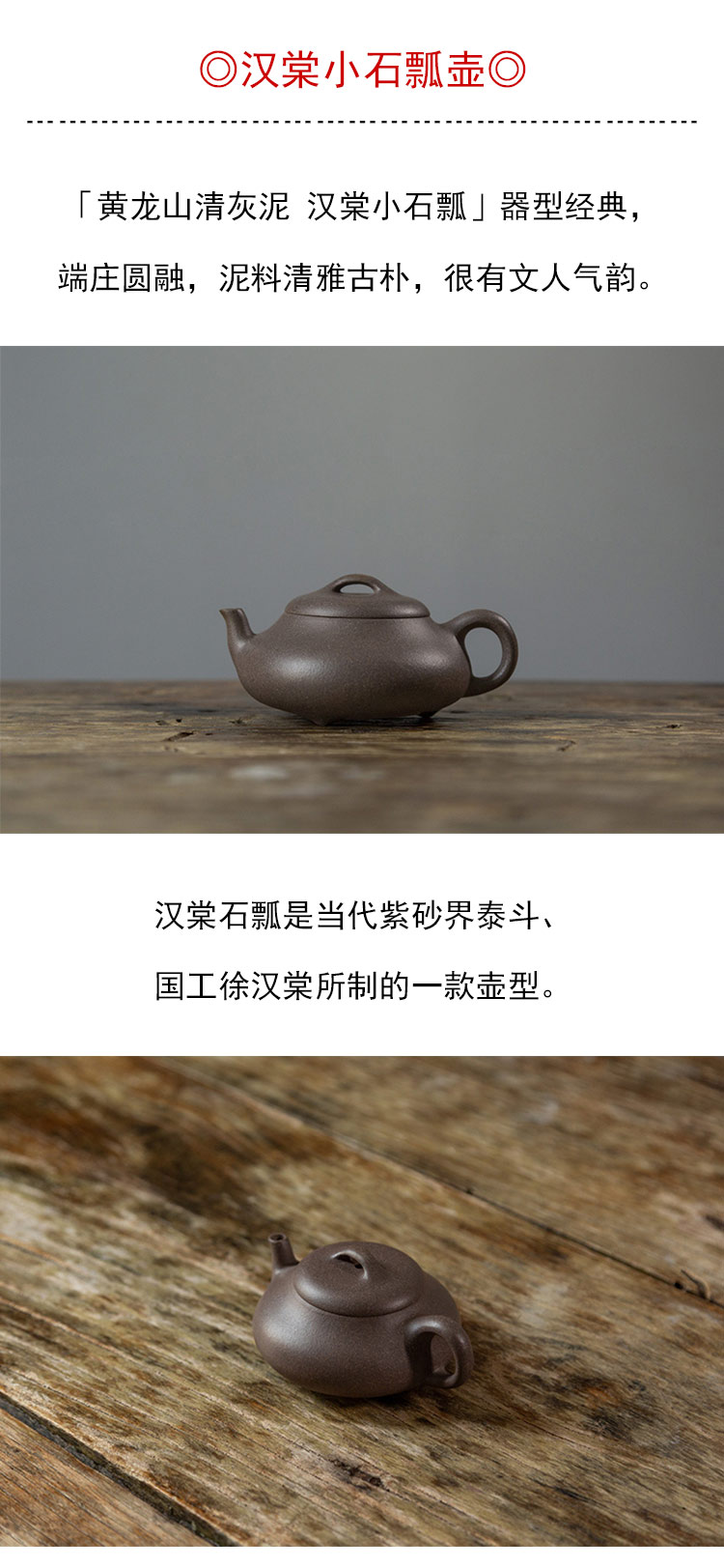 茶香记 黄龙山清灰泥 汉棠小石瓢 紫砂壶 清雅古朴 端庄沉稳 茶壶