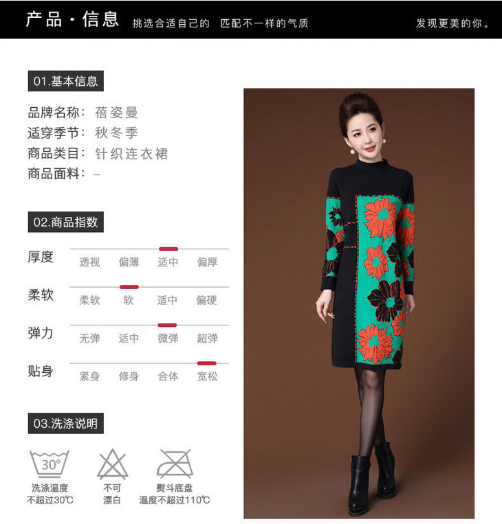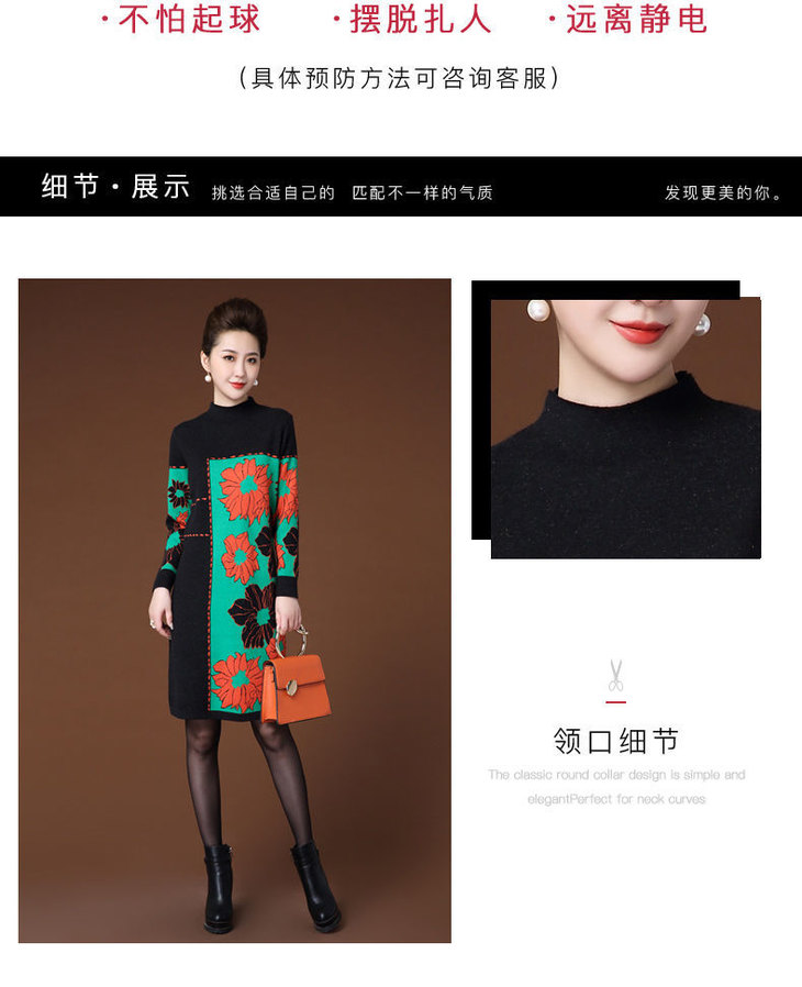 YQ-HP5657宽松直筒毛衣裙中长款长袖针织打底配大衣连衣裙