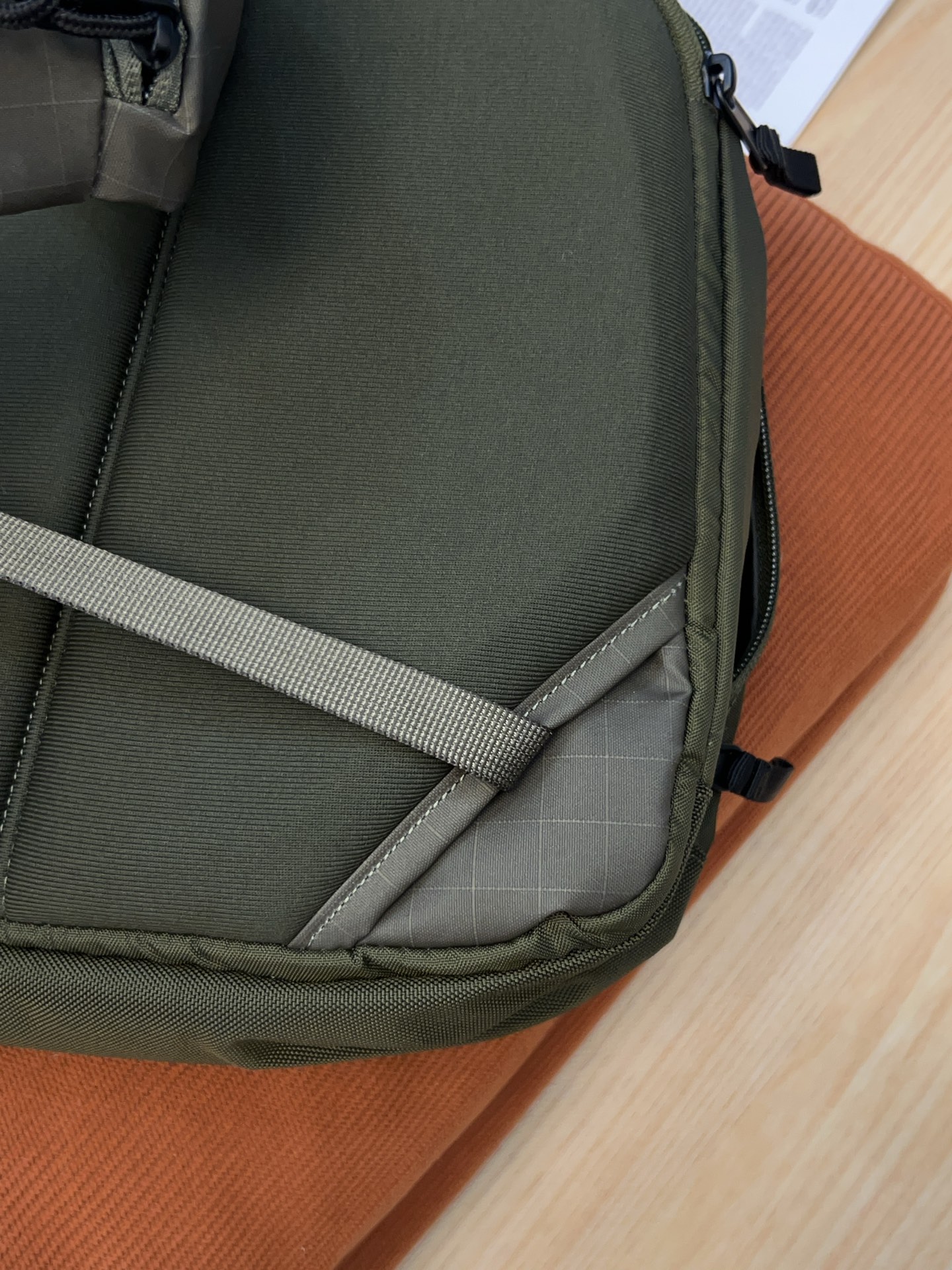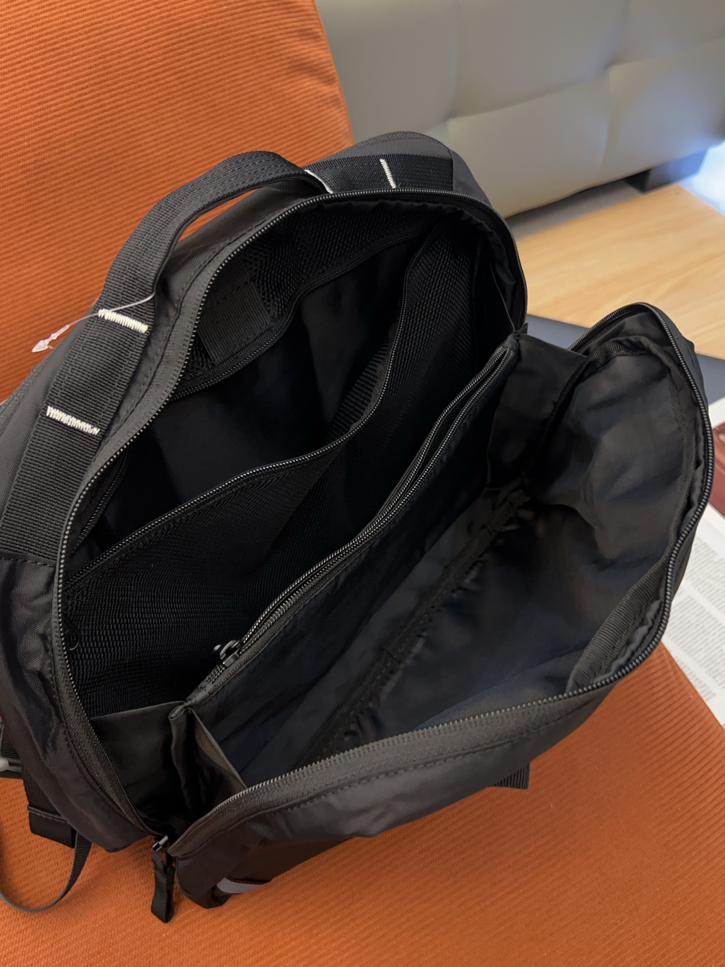 二个大夹层、六个分区仓位、不同物品用途方便归类放置、带平板电脑专用收纳仓,可调节舒适肩带,背板带加厚泡棉。外置拉链袋和胸前束带设计,实用性强。