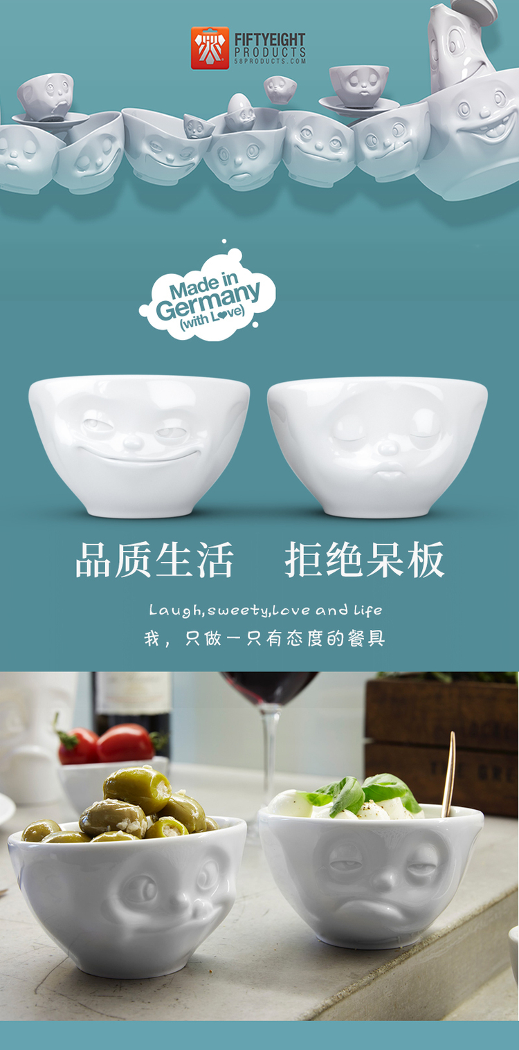 【Fiftyeight 】德国原产陶瓷碗表情碗2件套200ml 亲亲与微笑