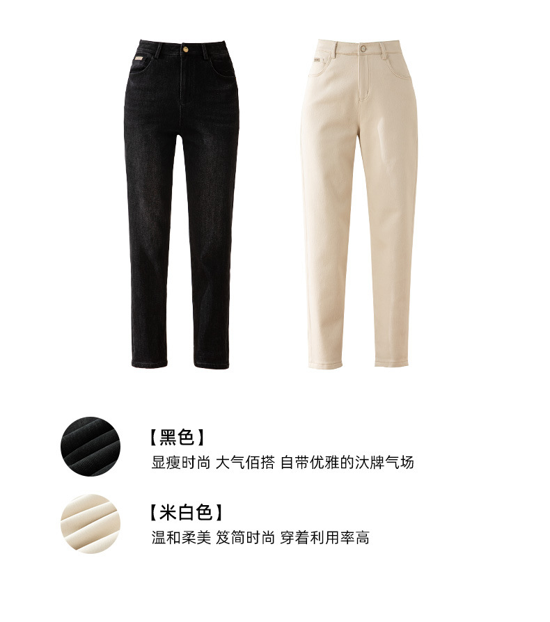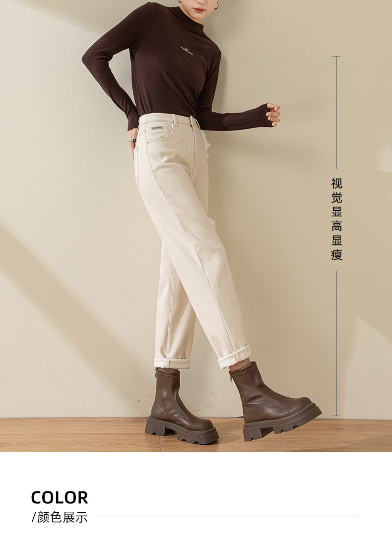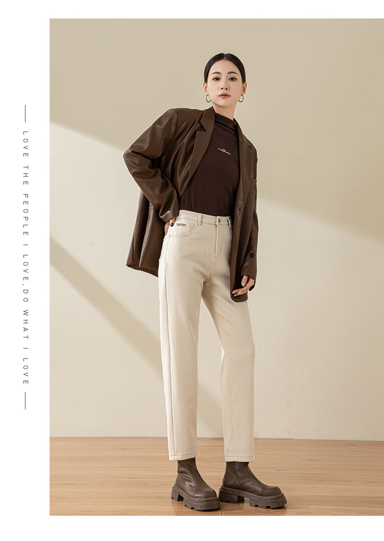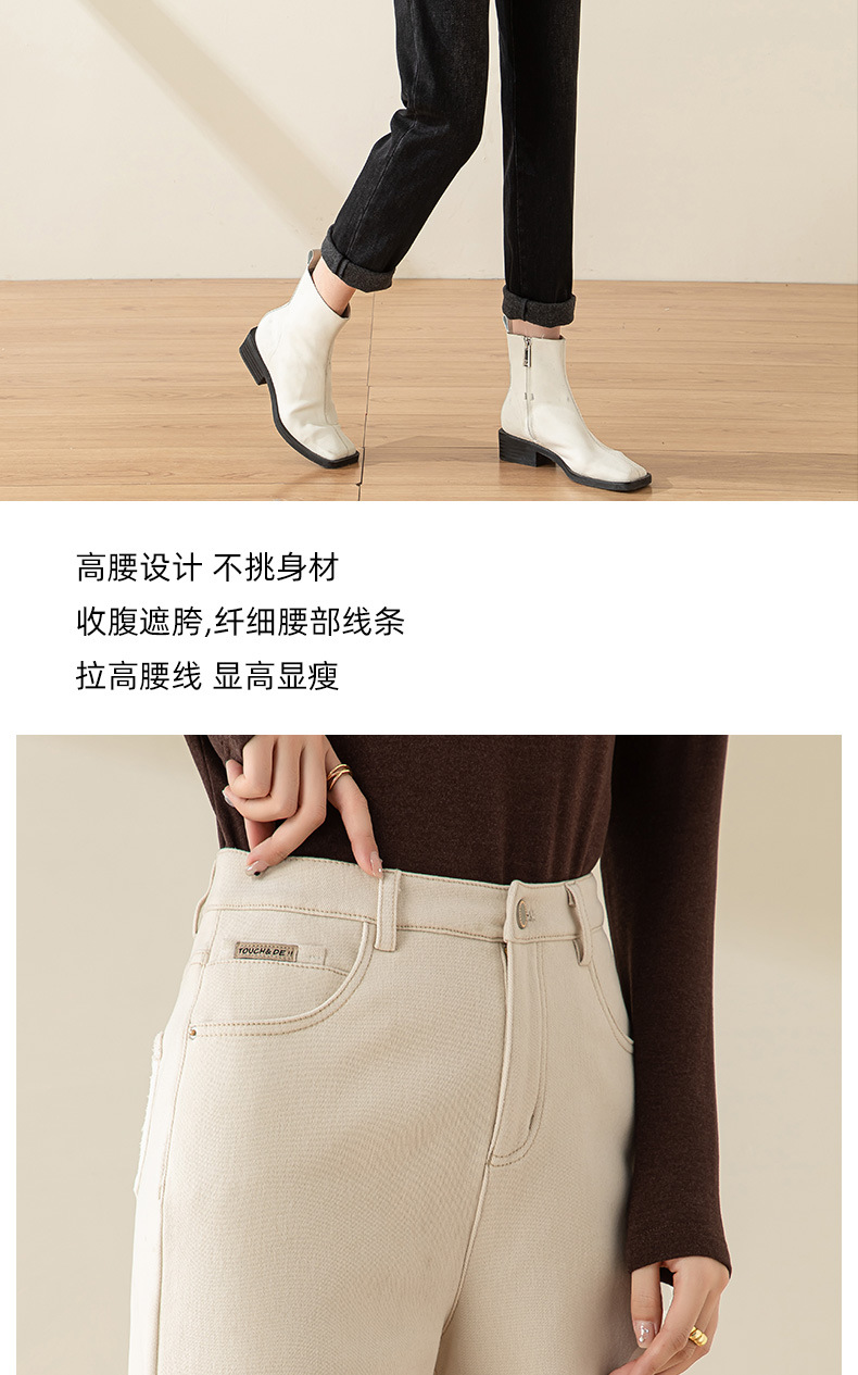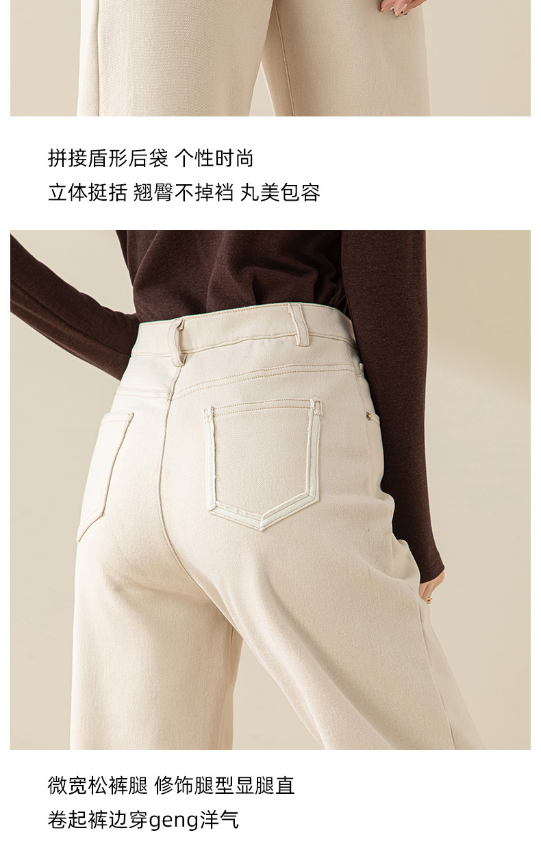 【龙贝莱精选】加绒高腰米白色牛仔裤显瘦休闲老爹裤H234060558预售款