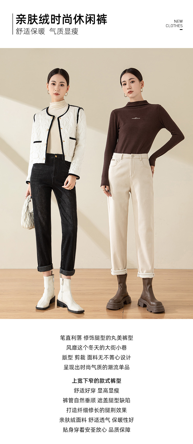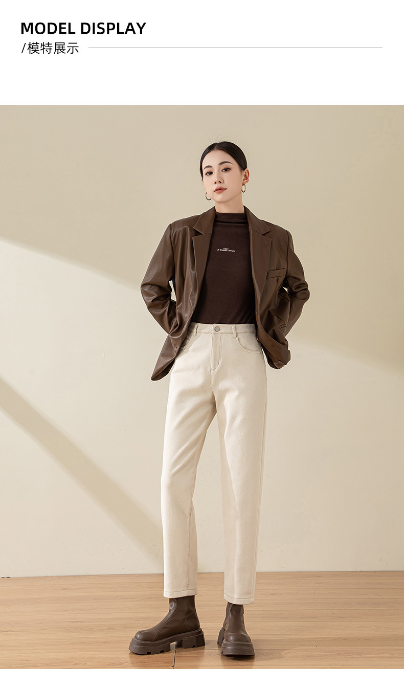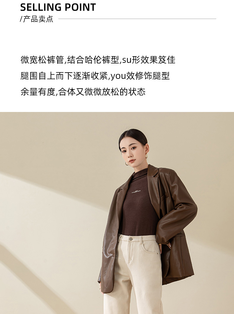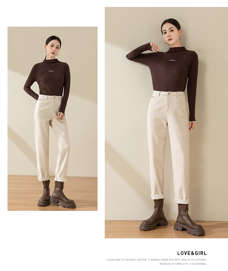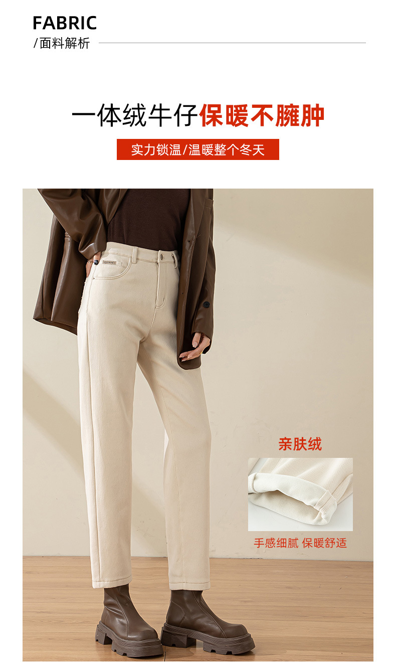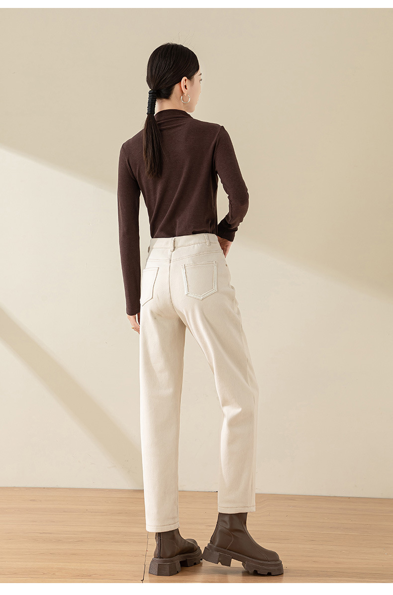 【龙贝莱精选】加绒高腰米白色牛仔裤显瘦休闲老爹裤H234060558预售款
