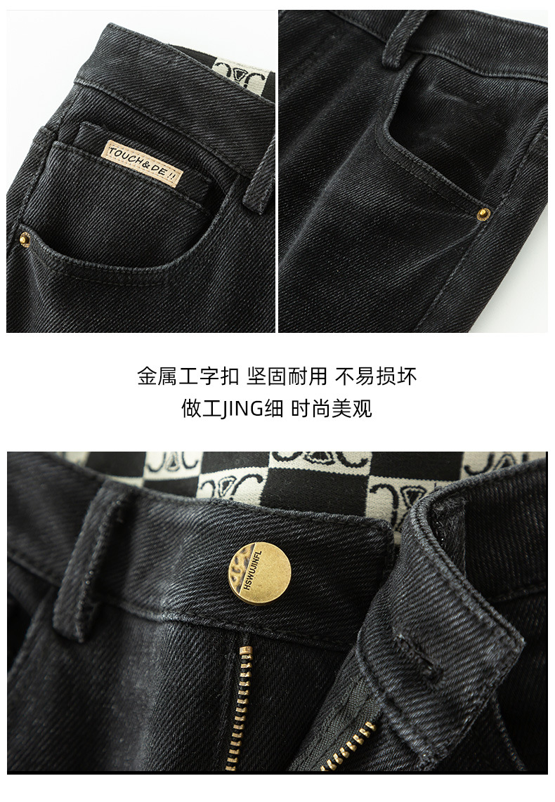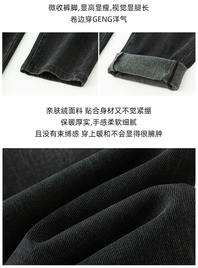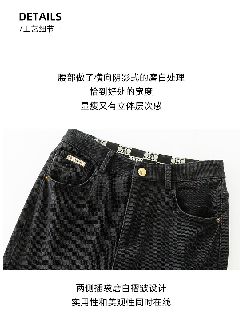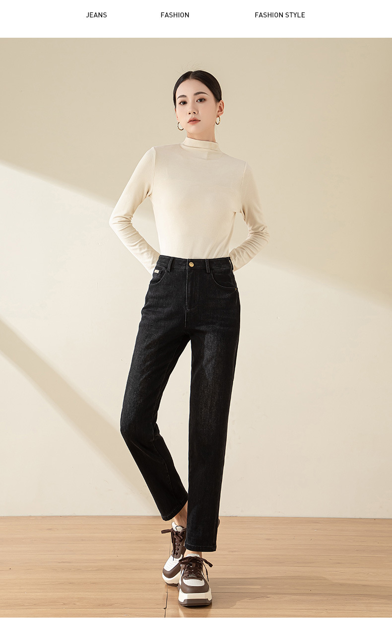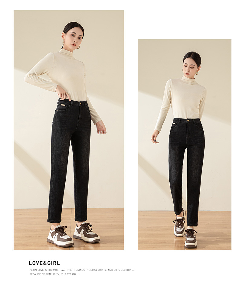 【龙贝莱精选】加绒高腰米白色牛仔裤显瘦休闲老爹裤H234060558预售款