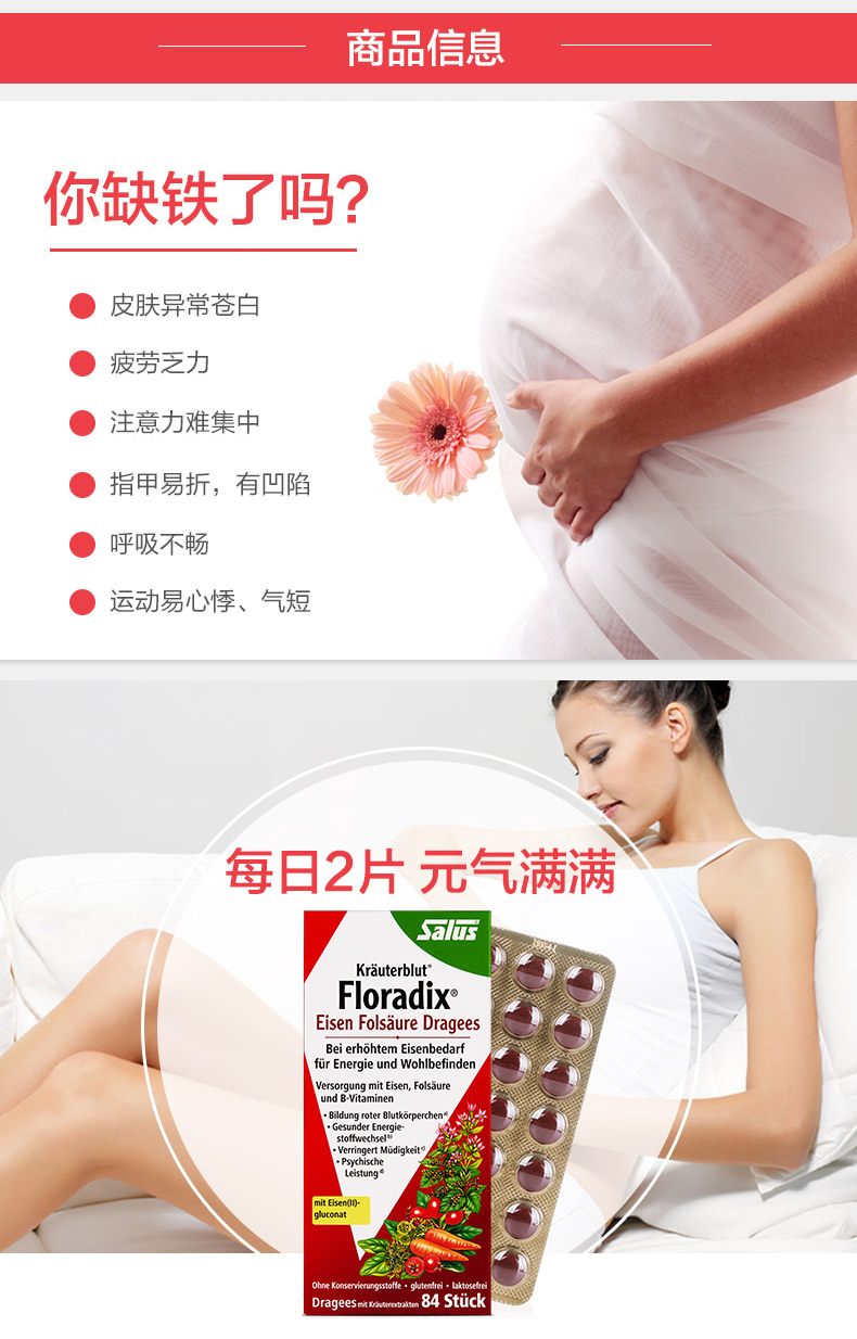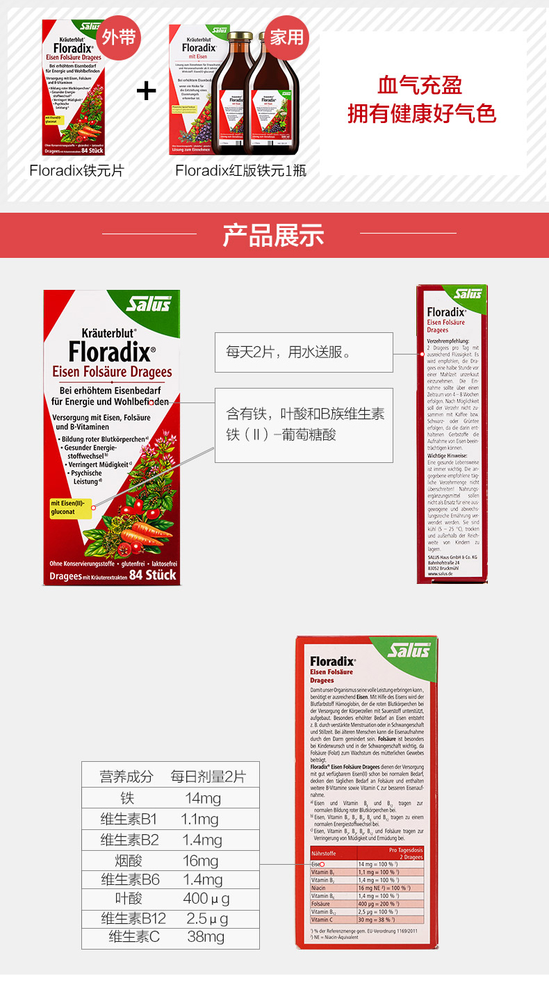 现货 德国红铁元片剂原装Salus Floradix有机铁片剂84片补铁片孕妇成人