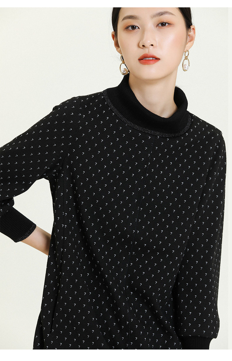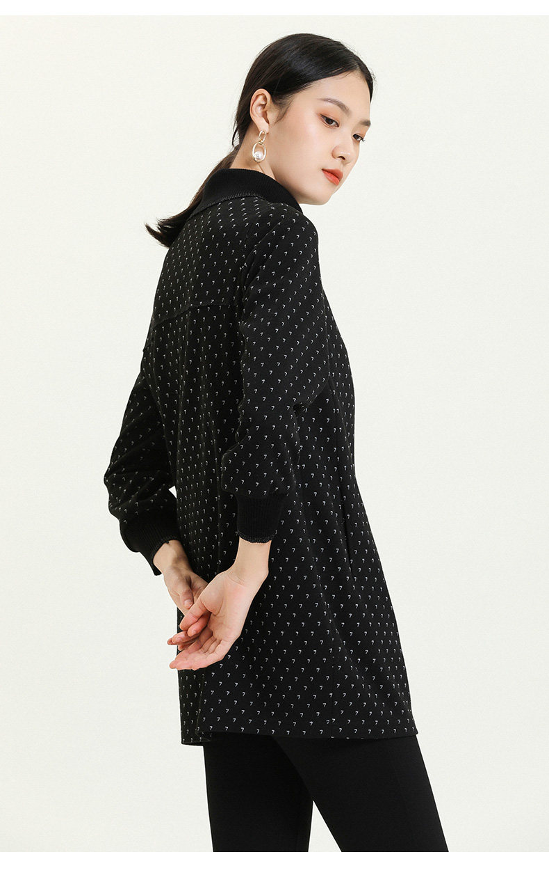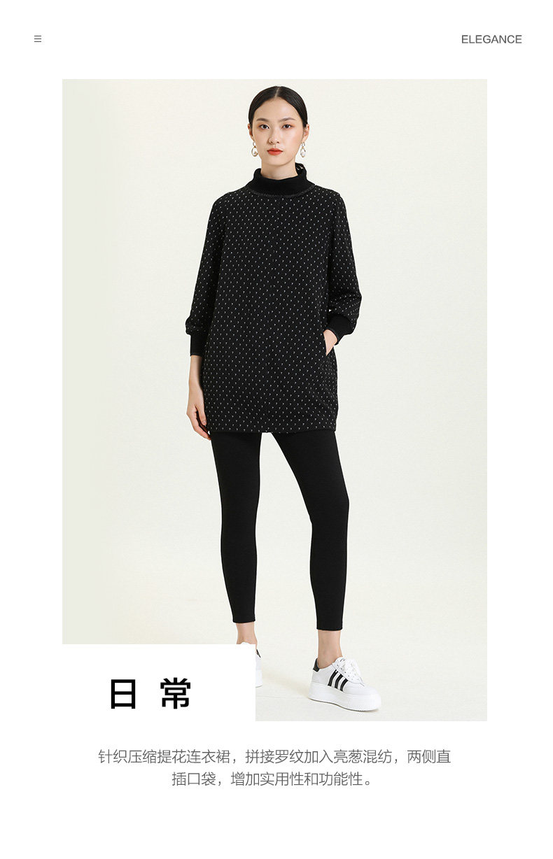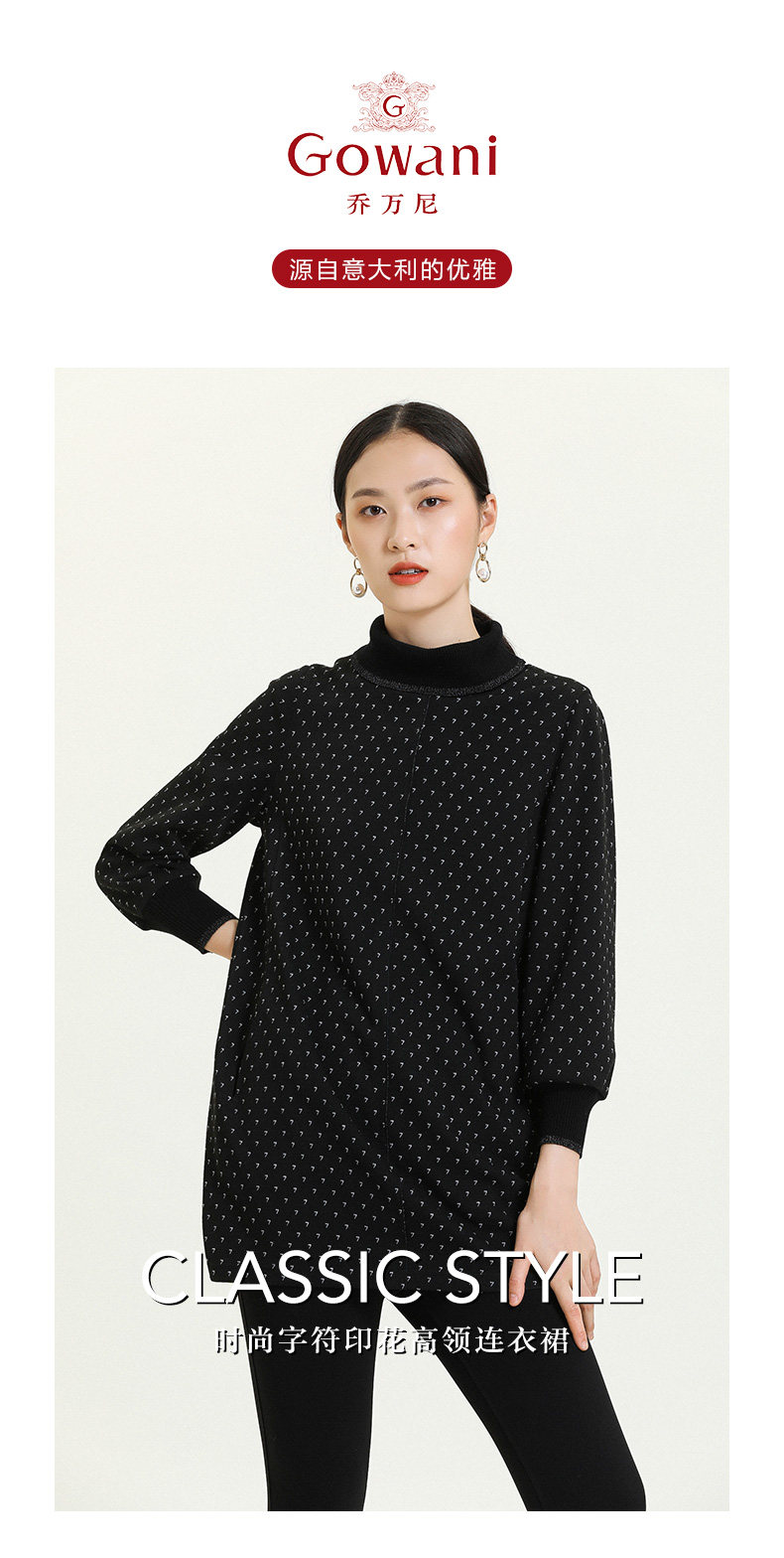 乔万尼早秋提花O型黑色显瘦百搭印花中领连衣裙ES3E545