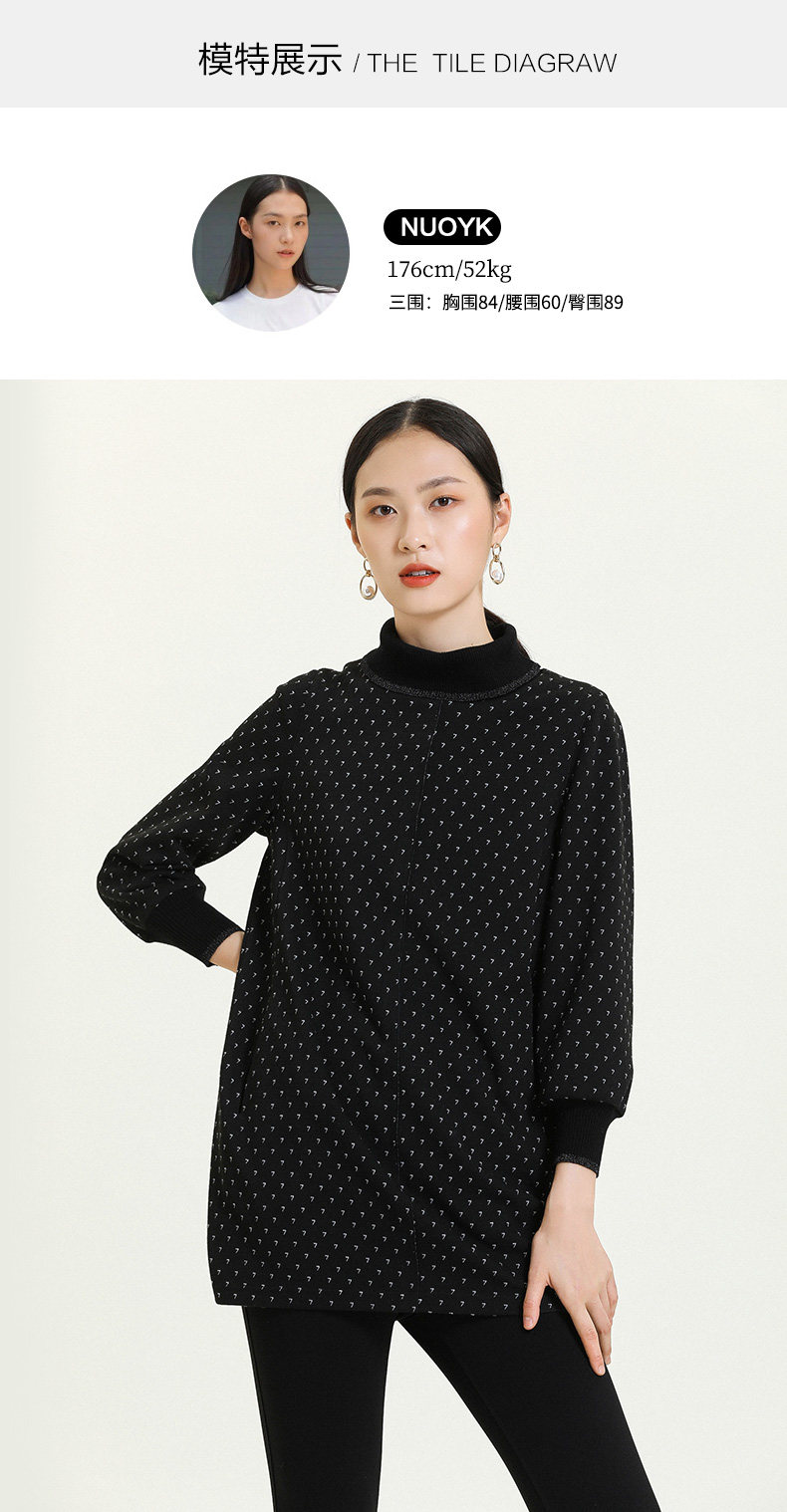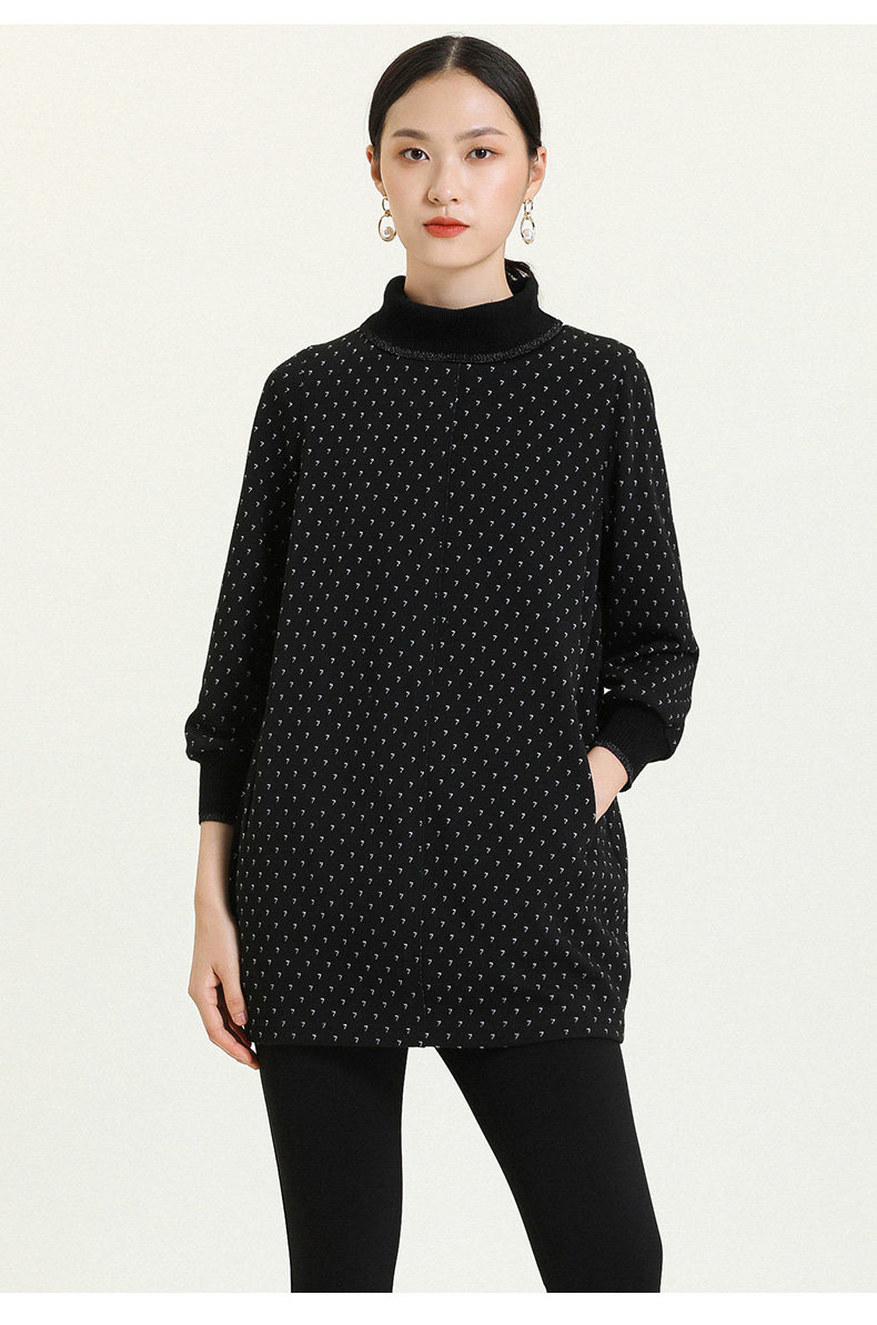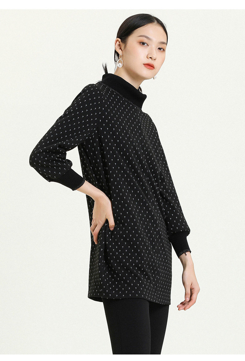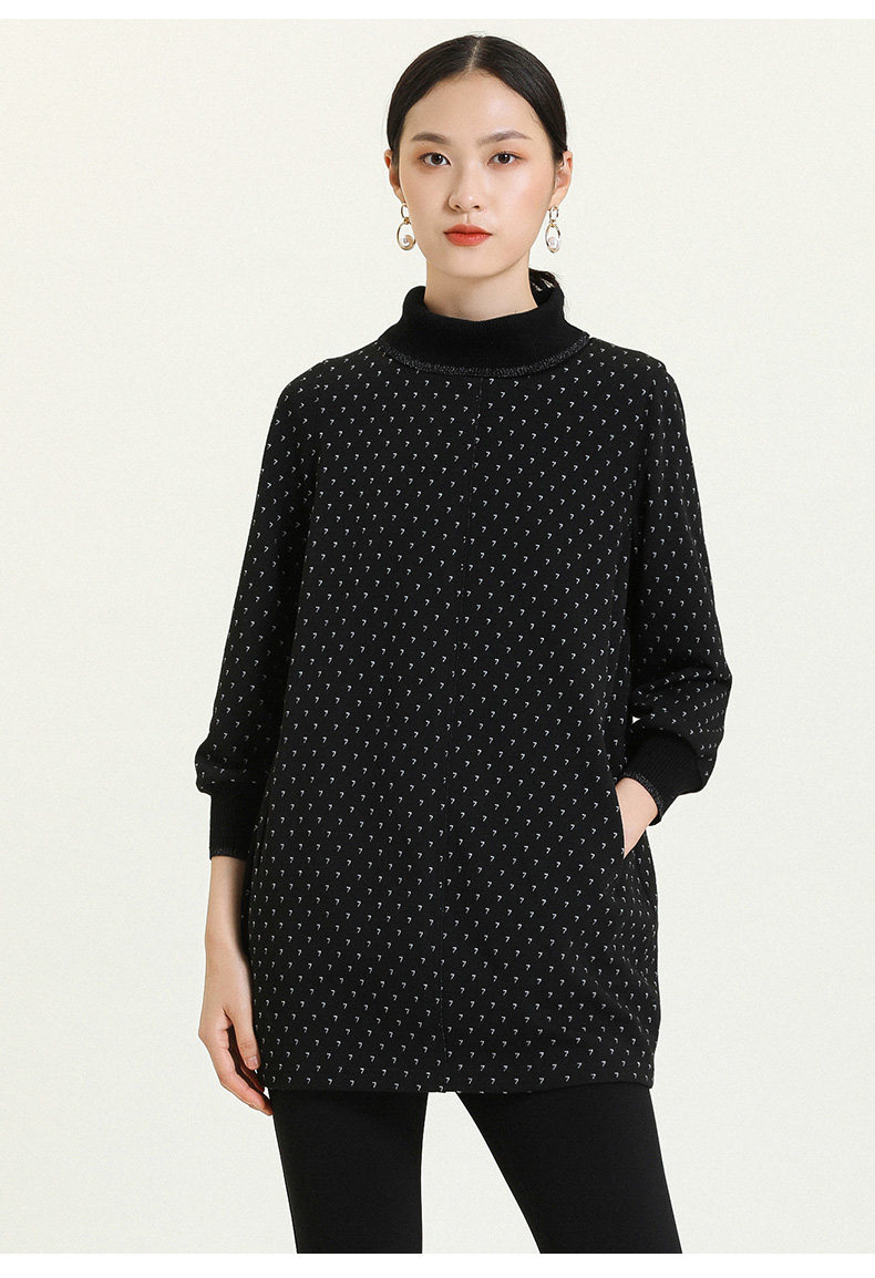 乔万尼早秋提花O型黑色显瘦百搭印花中领连衣裙ES3E545
