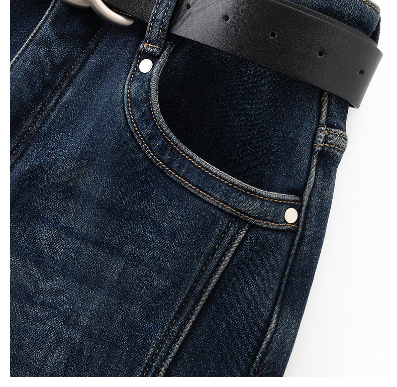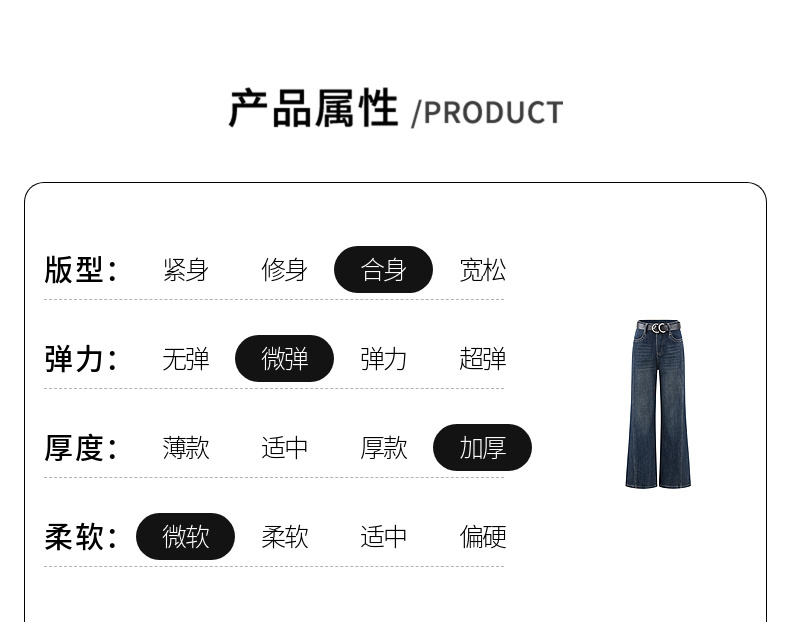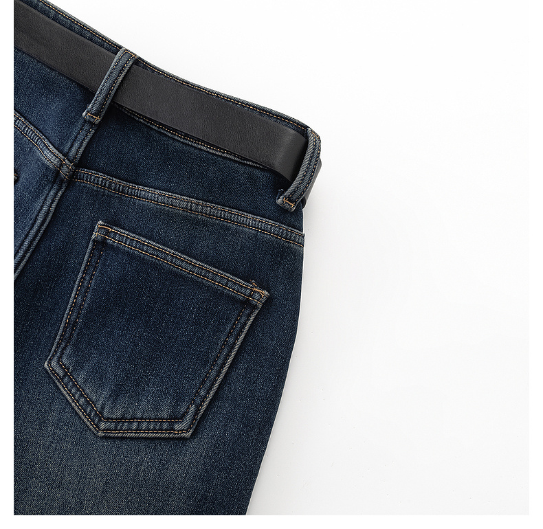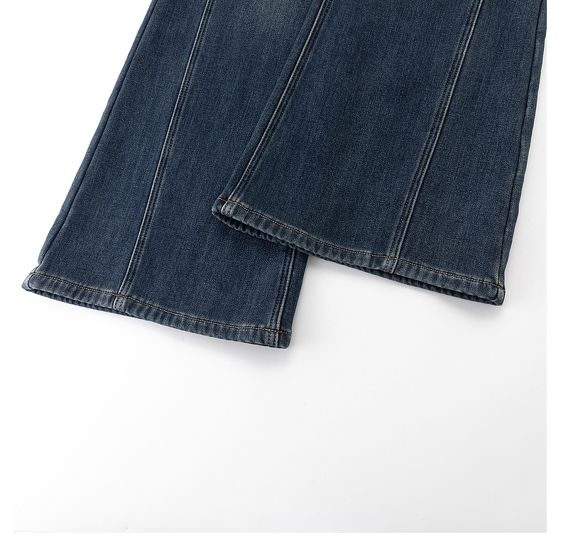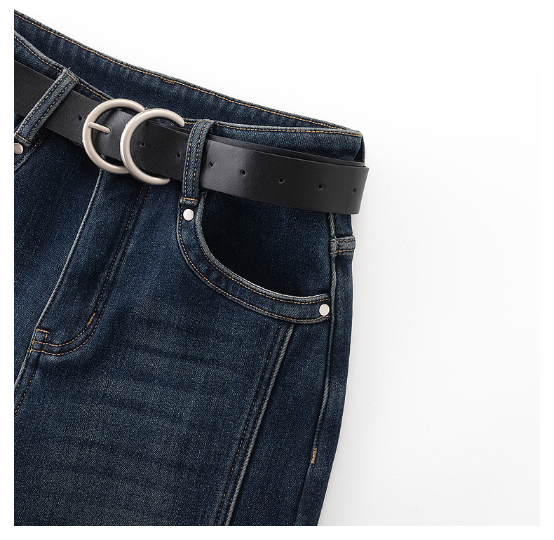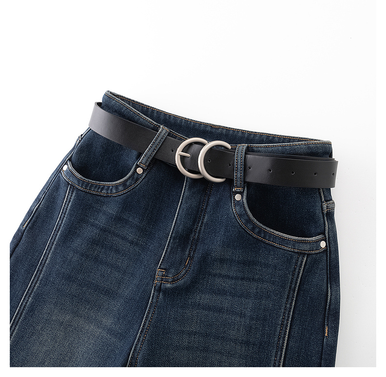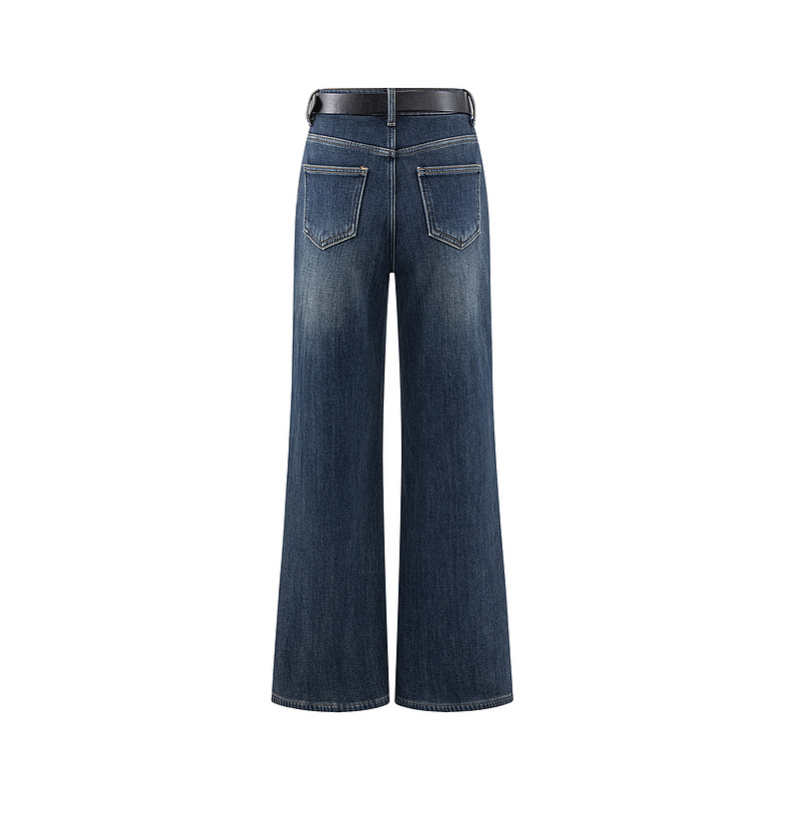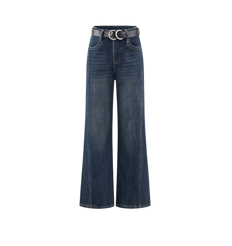 天猫同步【附赠腰带/加绒牛仔】拉夏贝尔/La Chapelle法式复古时髦显瘦小个子通勤微喇阔腿牛仔裤