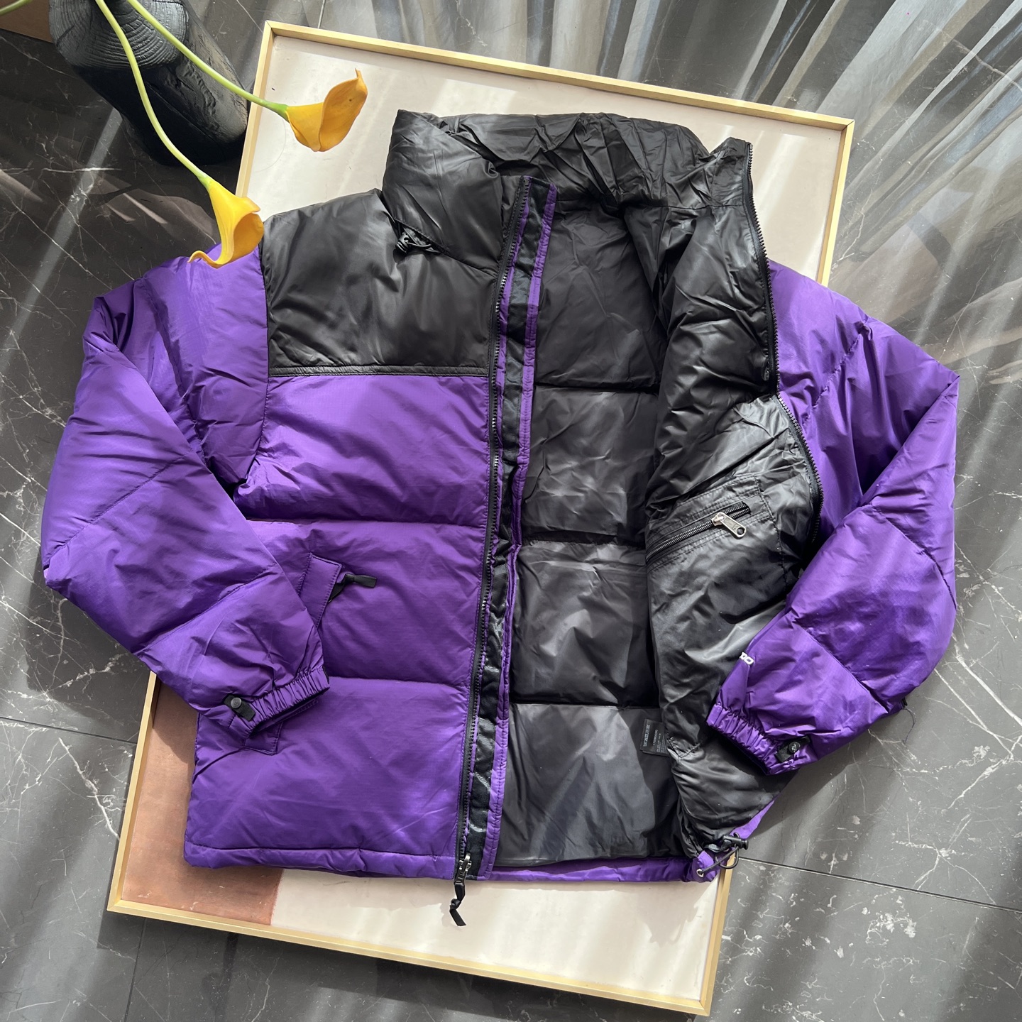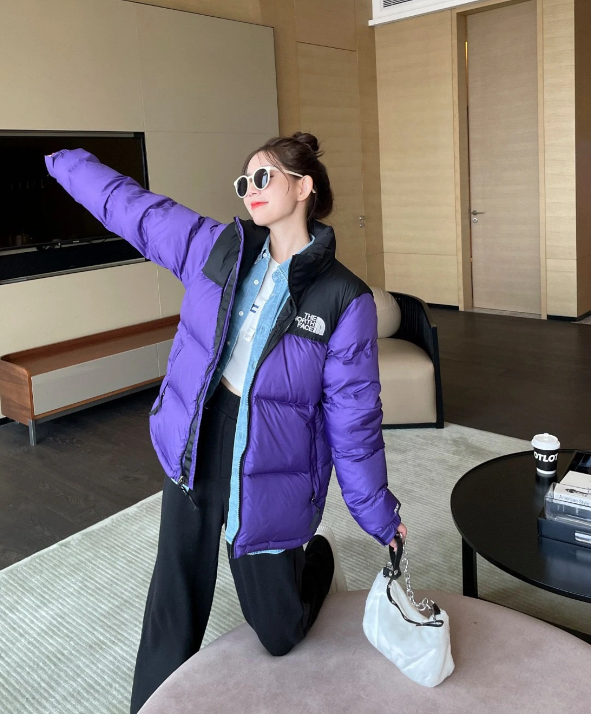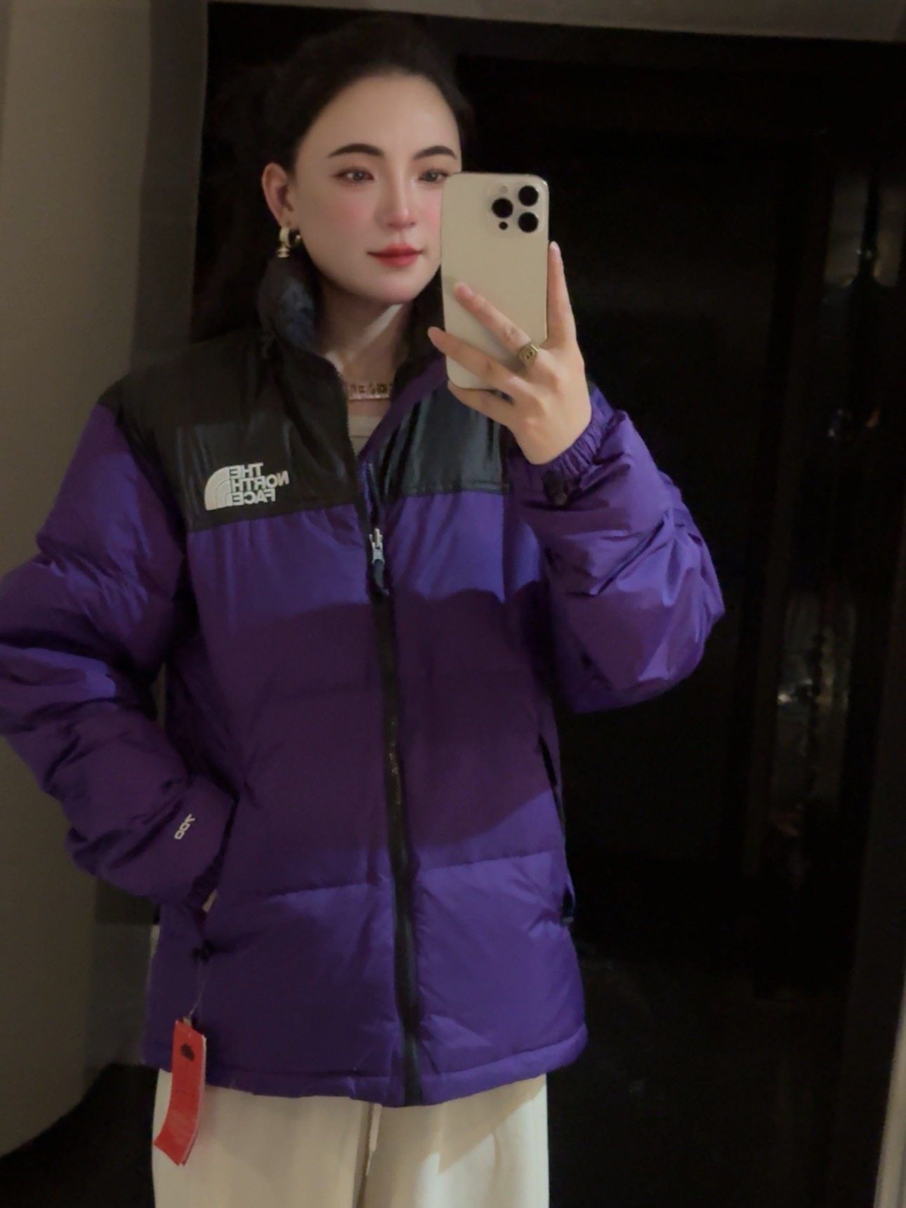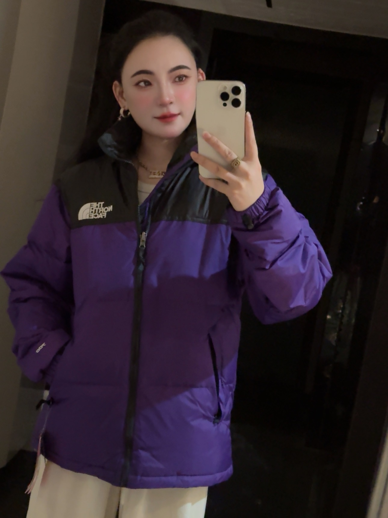 拼手速‼️🉐北家THE NORTH FACE 1996系列 Nuptse 拼色保暖700蓬羽绒含羽绒冬季立领棉服!85白鸭绒!宝子们!北面这款面包服的隐藏款们,每一件都是冬日氛围感杀器✨ 先焊死这件经典黑款|像是把“低调的贵气”穿在身上 立领刚好卡在下颌线,风再大也钻不进脖颈里,菱格充绒鼓得像软fufu的云朵团,但上身居然是利落的窄肩轮廓——显瘦这点真的戳中我!胸口的白标是“轻量存在感”,远看是干净的黑,近看才露出品牌质感;拉链是那种“丝滑到没声音”的细腻,两侧口袋深到能揣下手机+钥匙+暖手宝,揣着走街都不用背包~再扒这件蓝色|是“冷调里的温柔”没错了 藏蓝像把深海揉进布料里,阴天是沉静的哑光感,晴天会泛着软绵的光泽,比纯黑多了层呼吸感;领口内侧贴的绒布软得像猫肚皮,贴肤那一刻直接暖到心尖,袖口的收紧罗纹刚好卡在手腕,连手套都能无缝衔接~穿它去美术馆看展,冷调蓝和艺术展的白墙巨出片;配针织又高级,自带滤镜的氛围感谁穿谁懂📸最后锁死紫色|黄皮天菜的“小众惊艳款”