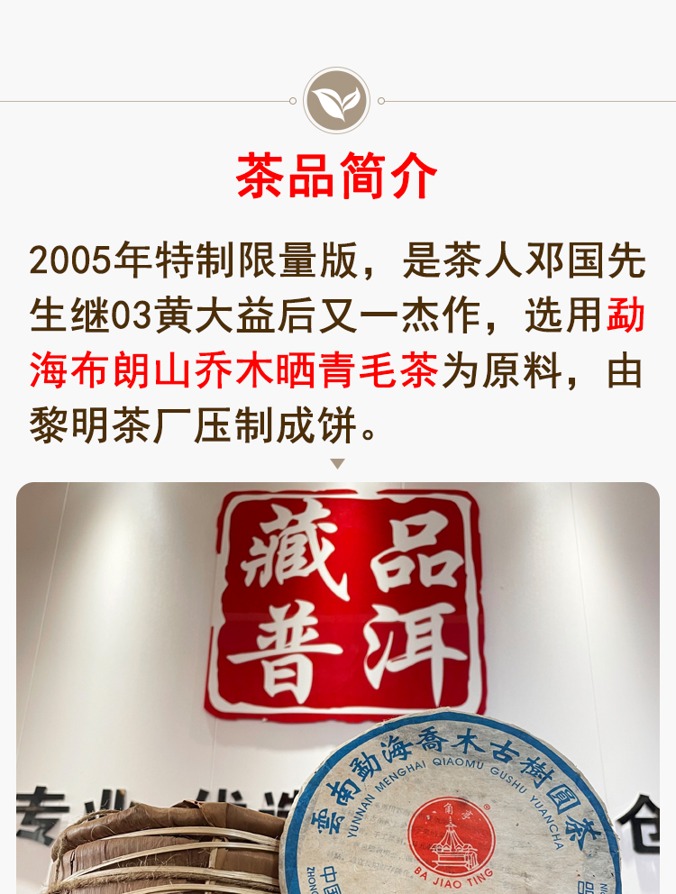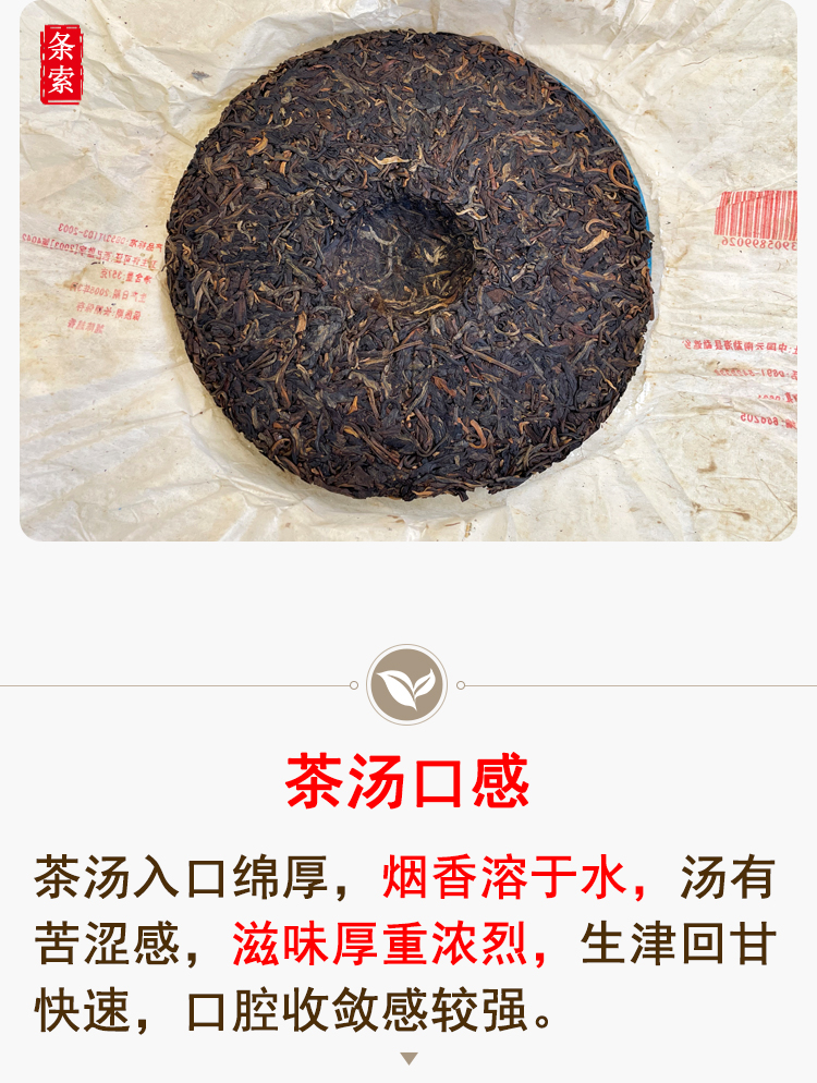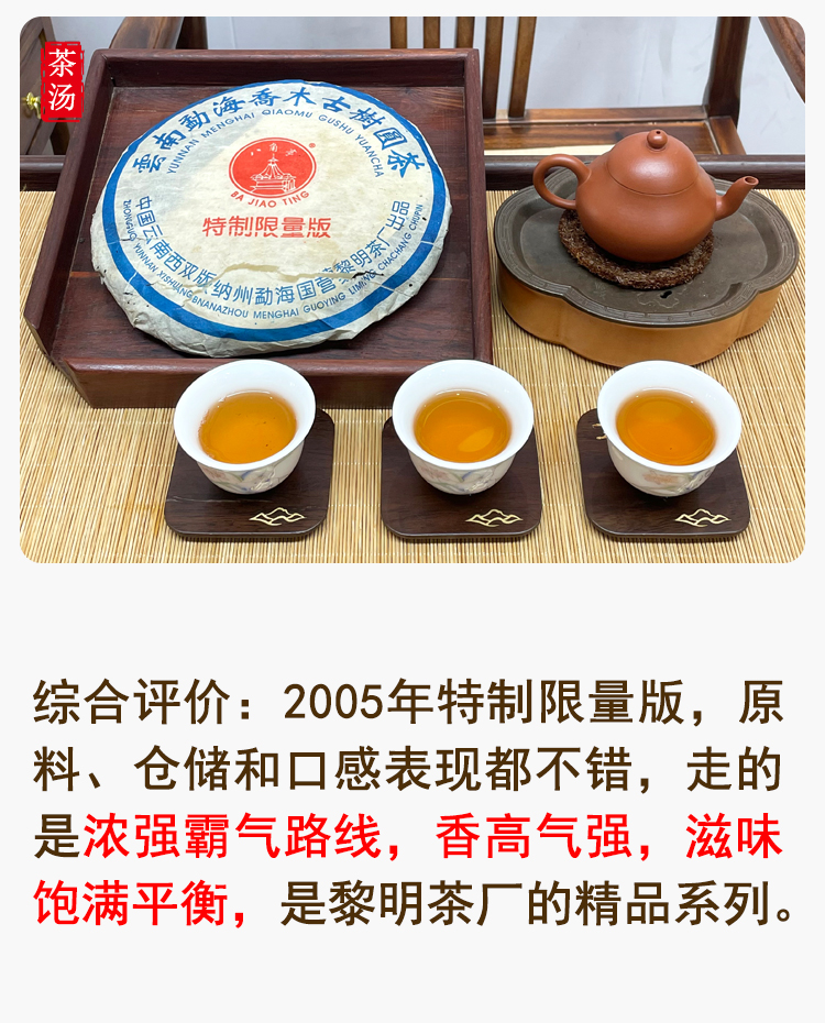 2005年黎明茶厂特制限量版 邓国定制 烟香入水干仓真品 茶汤细腻有品质 单片标价