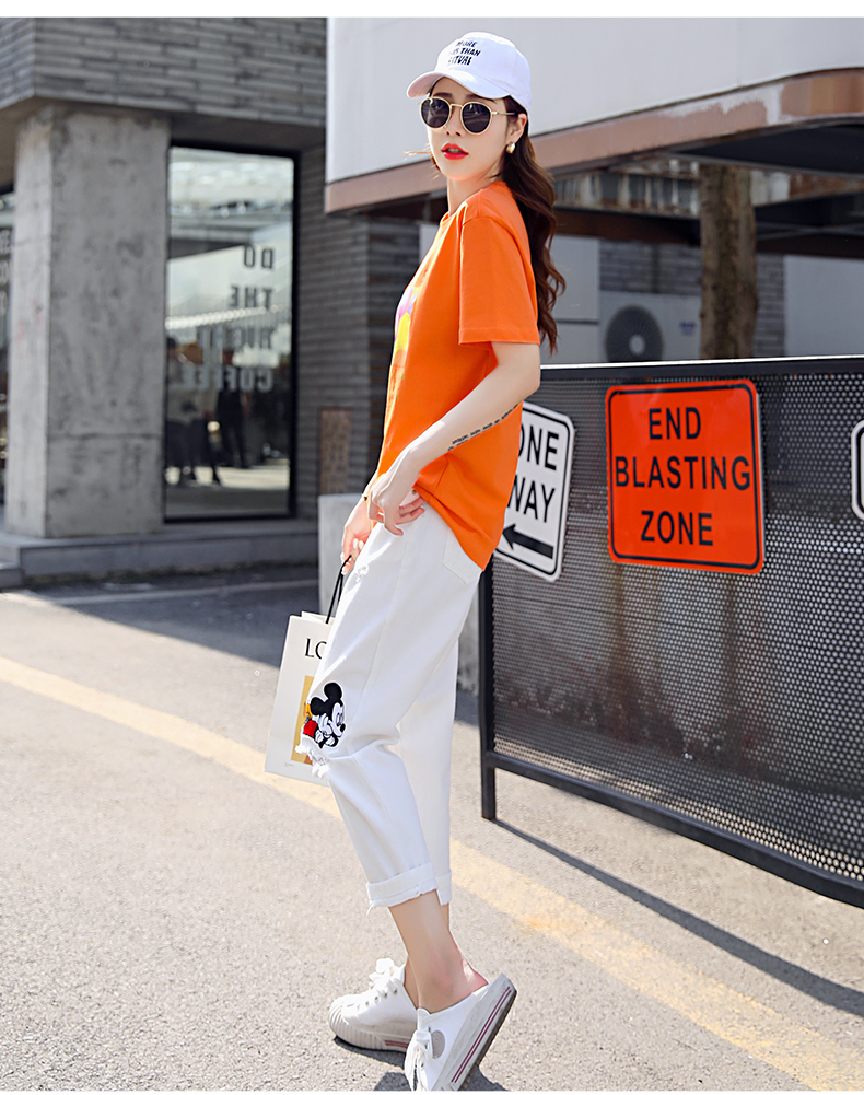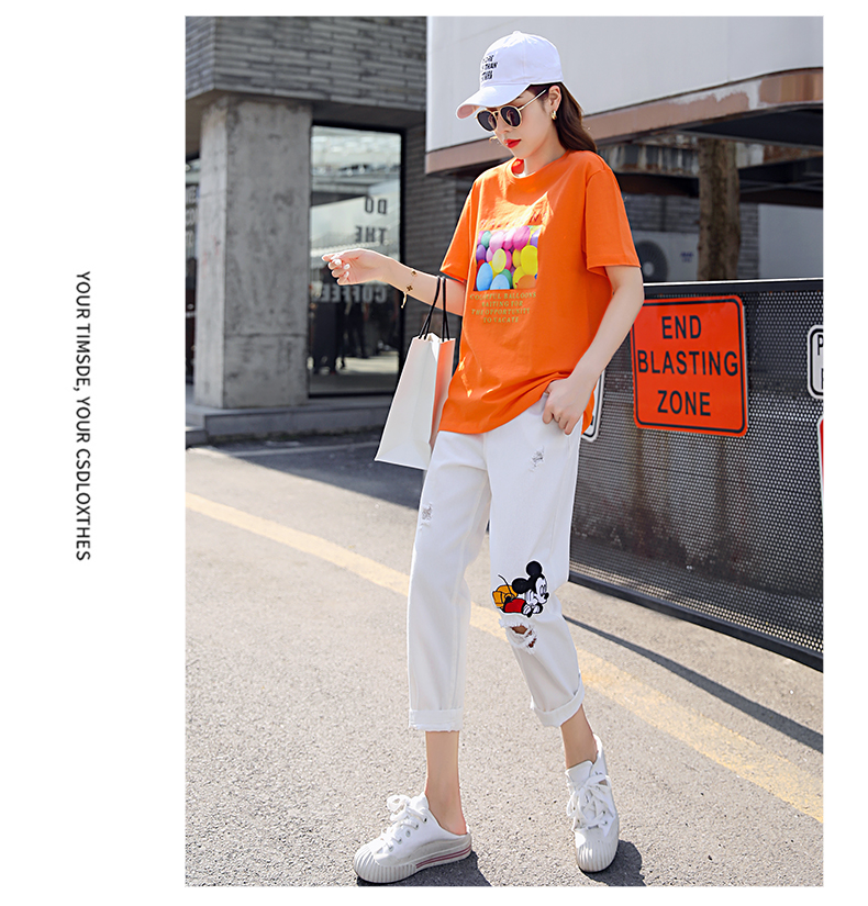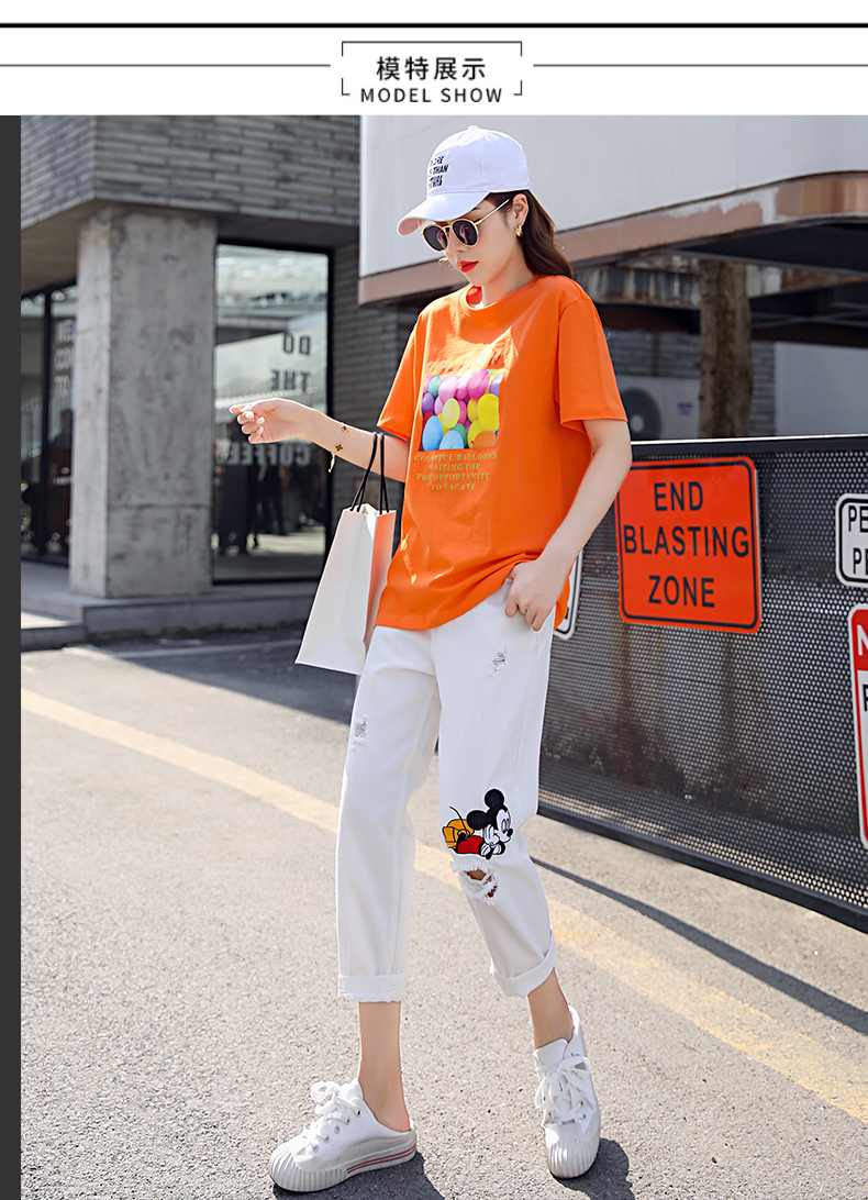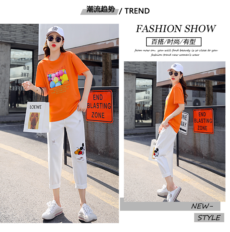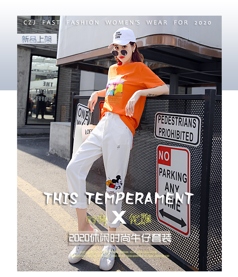 WZNH-CZJ3323夏季时尚休闲女印花牛仔套装