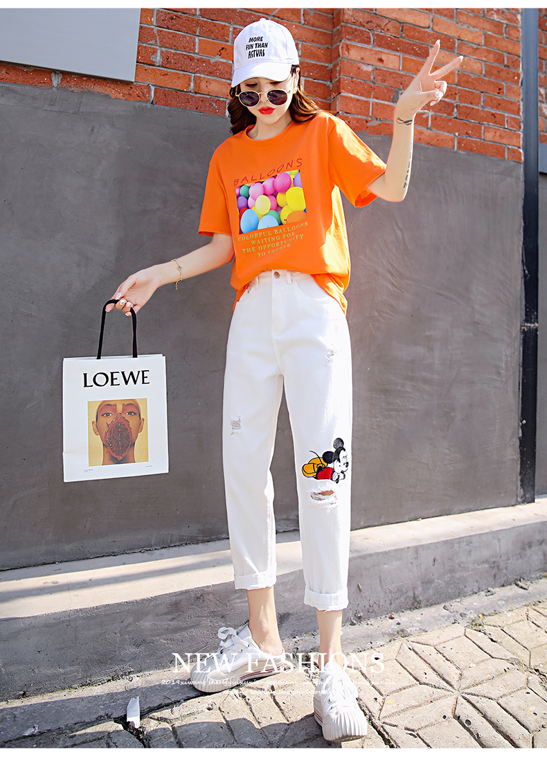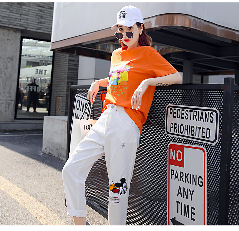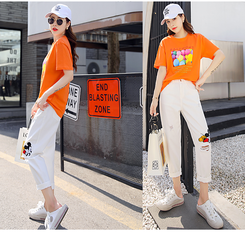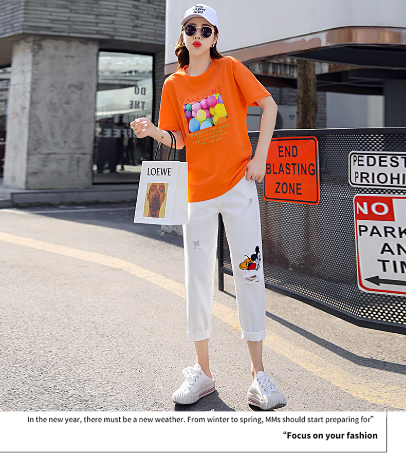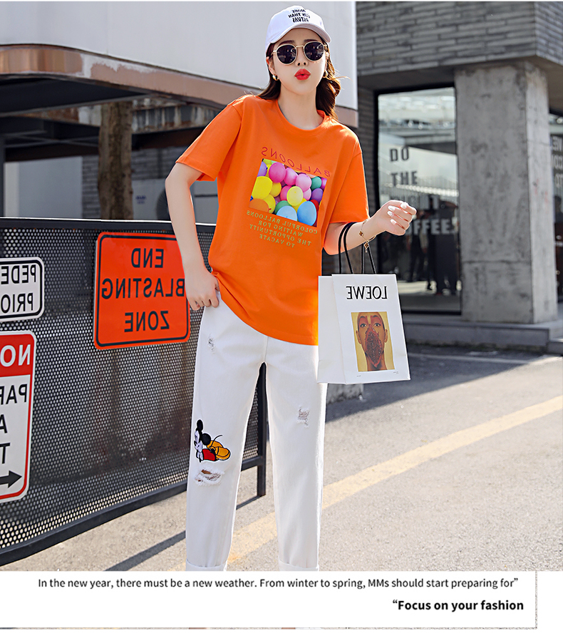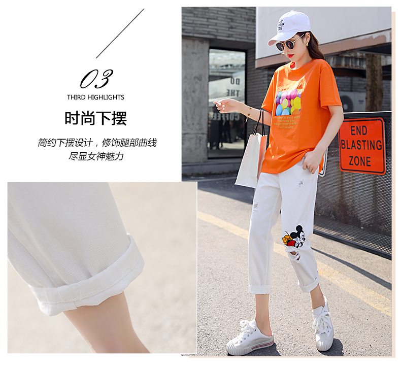WZNH-CZJ3323夏季时尚休闲女印花牛仔套装