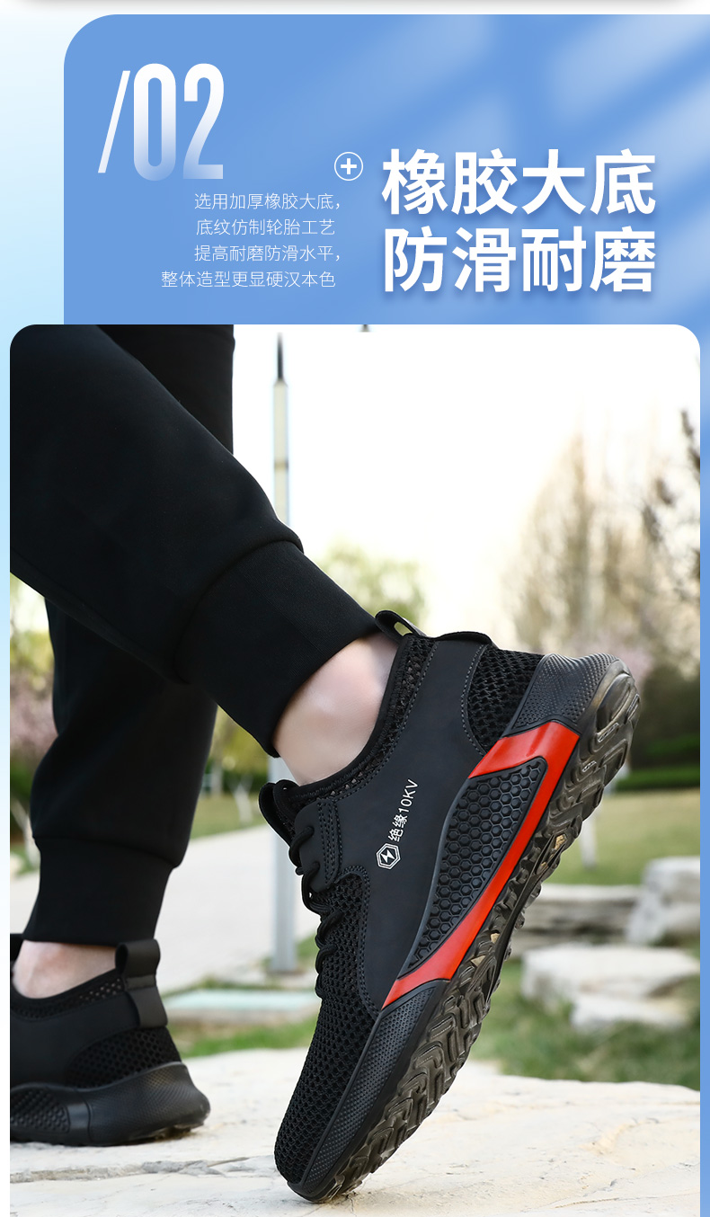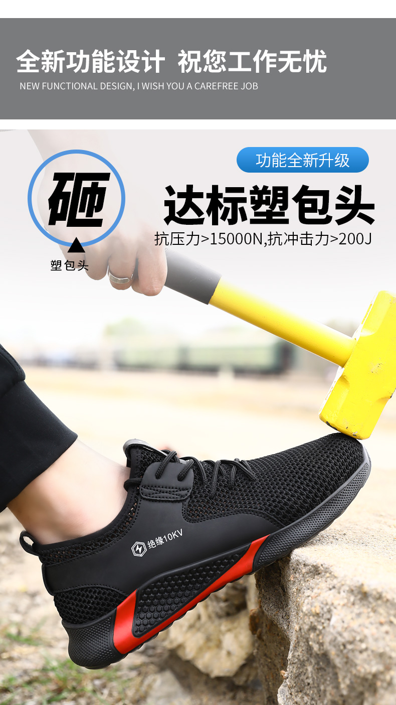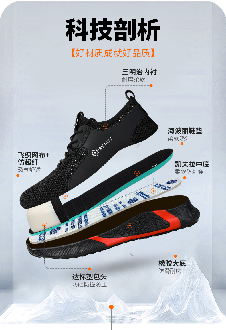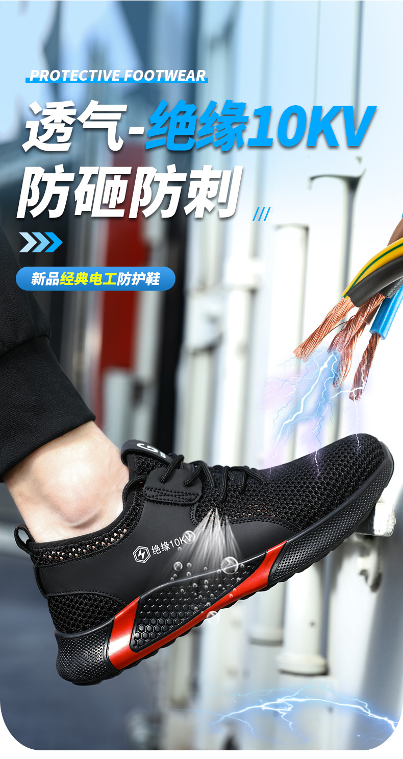 夏季大网孔劳保绝缘鞋防砸防刺飞织网面防护鞋