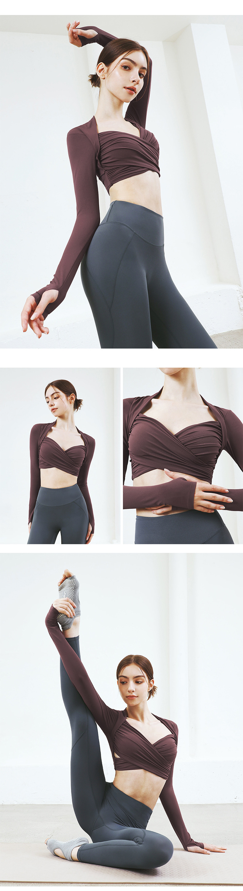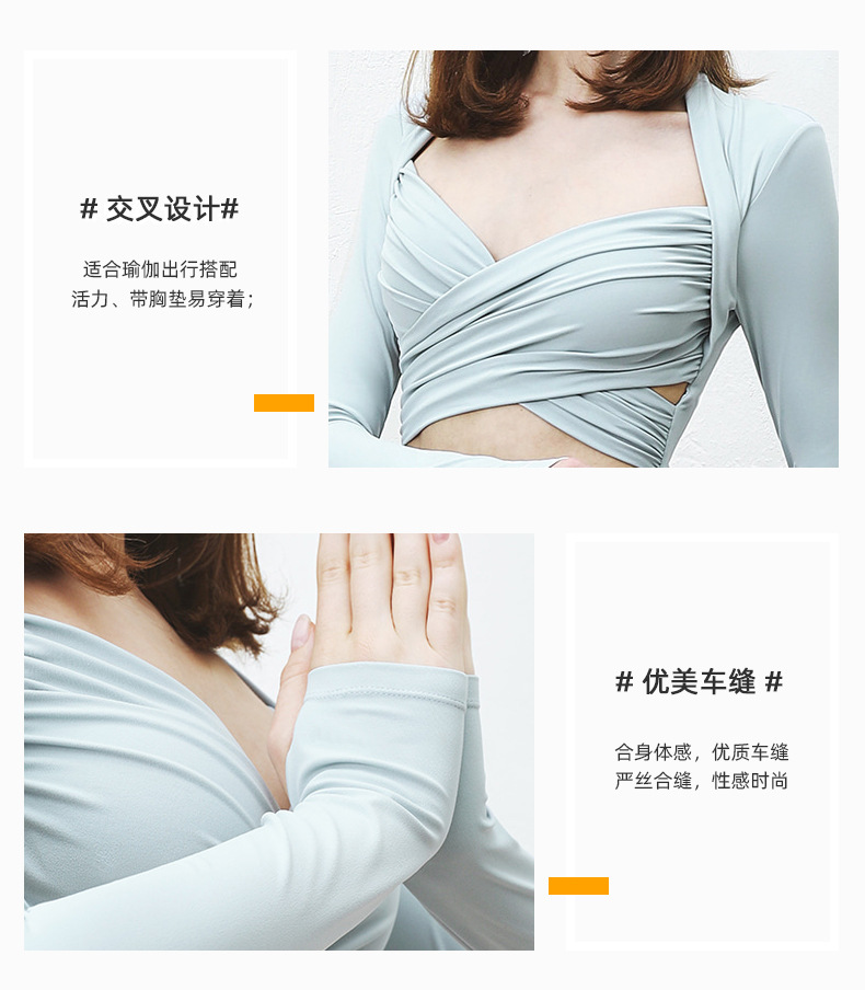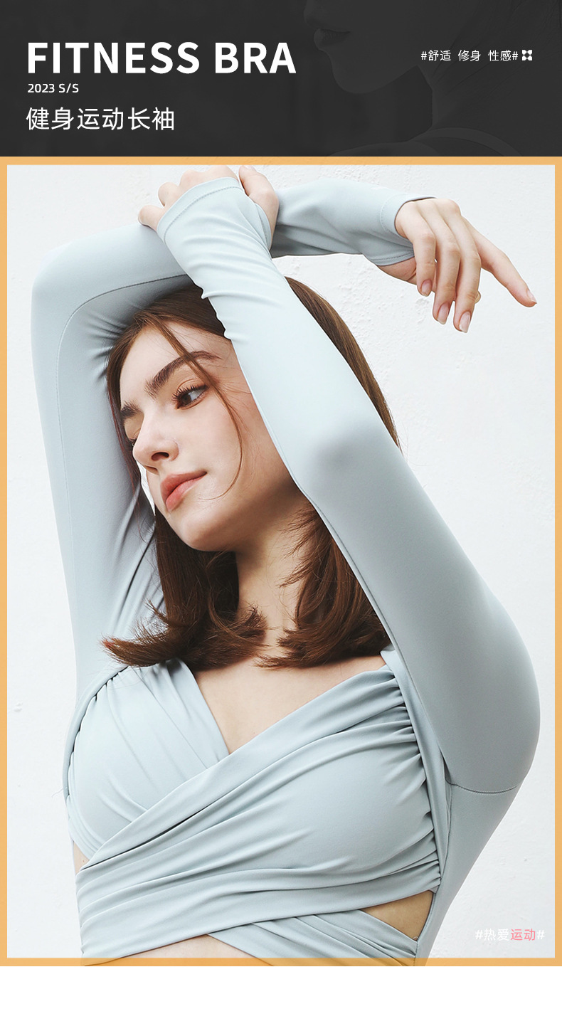 跃牌【洛水之神系列】性感交叉紧身长袖气质纯欲运动健身衣上衣 HN184