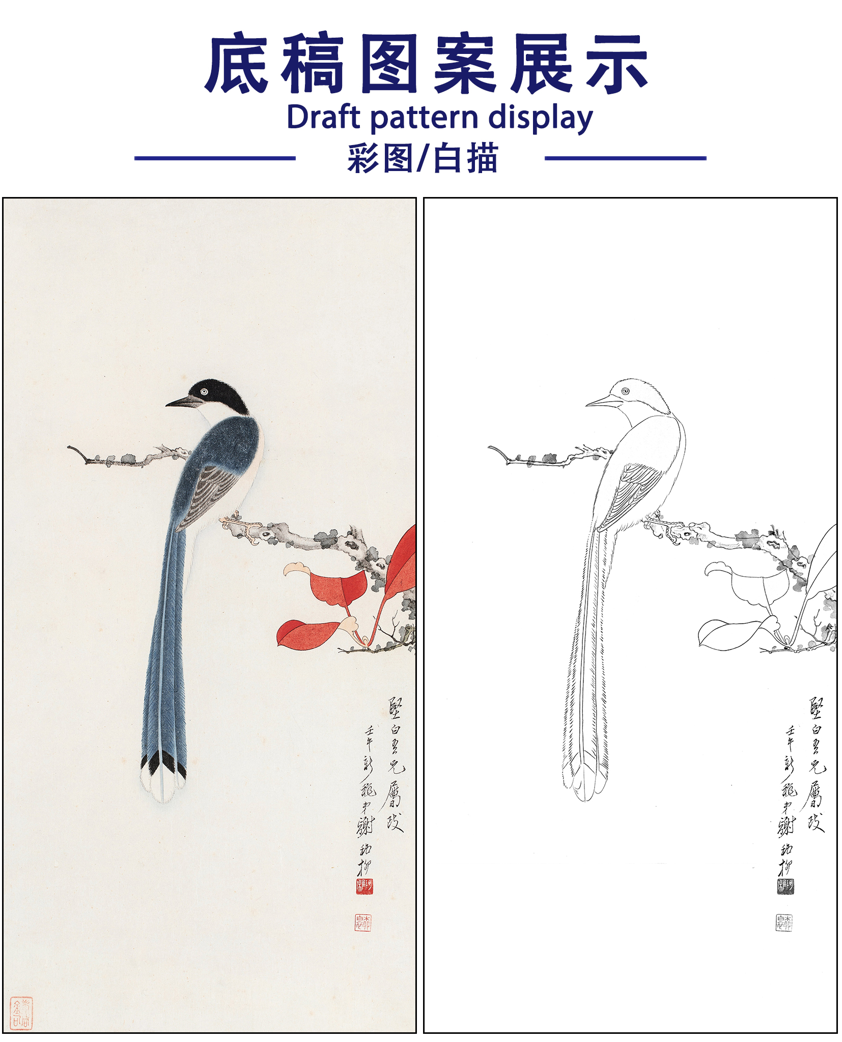 谢稚柳花鸟工笔画白描底稿《仿老莲笔意》临摹勾线高清打印稿XZ57