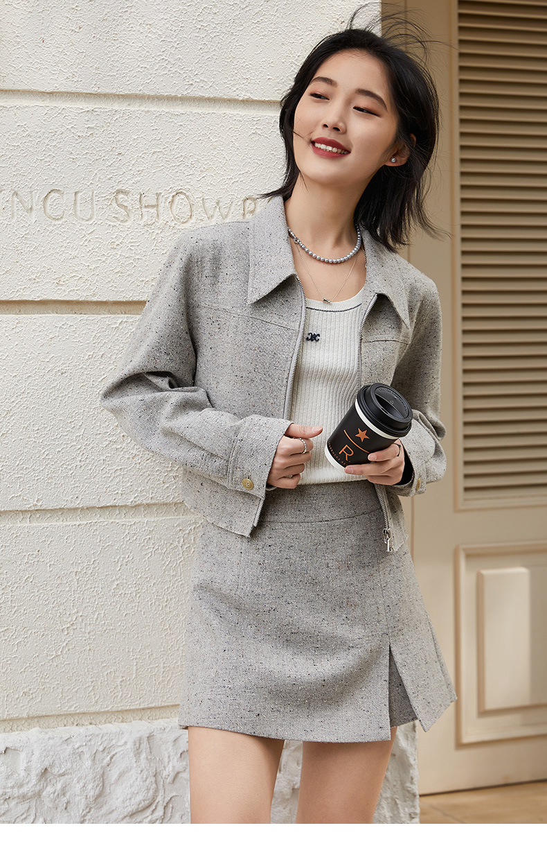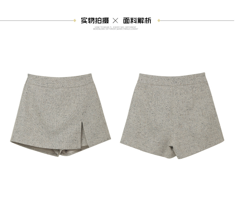 小香风毛呢裙裤女秋冬高腰显瘦 A 字阔腿短裤 设计感开叉假两件裙裤