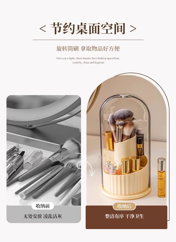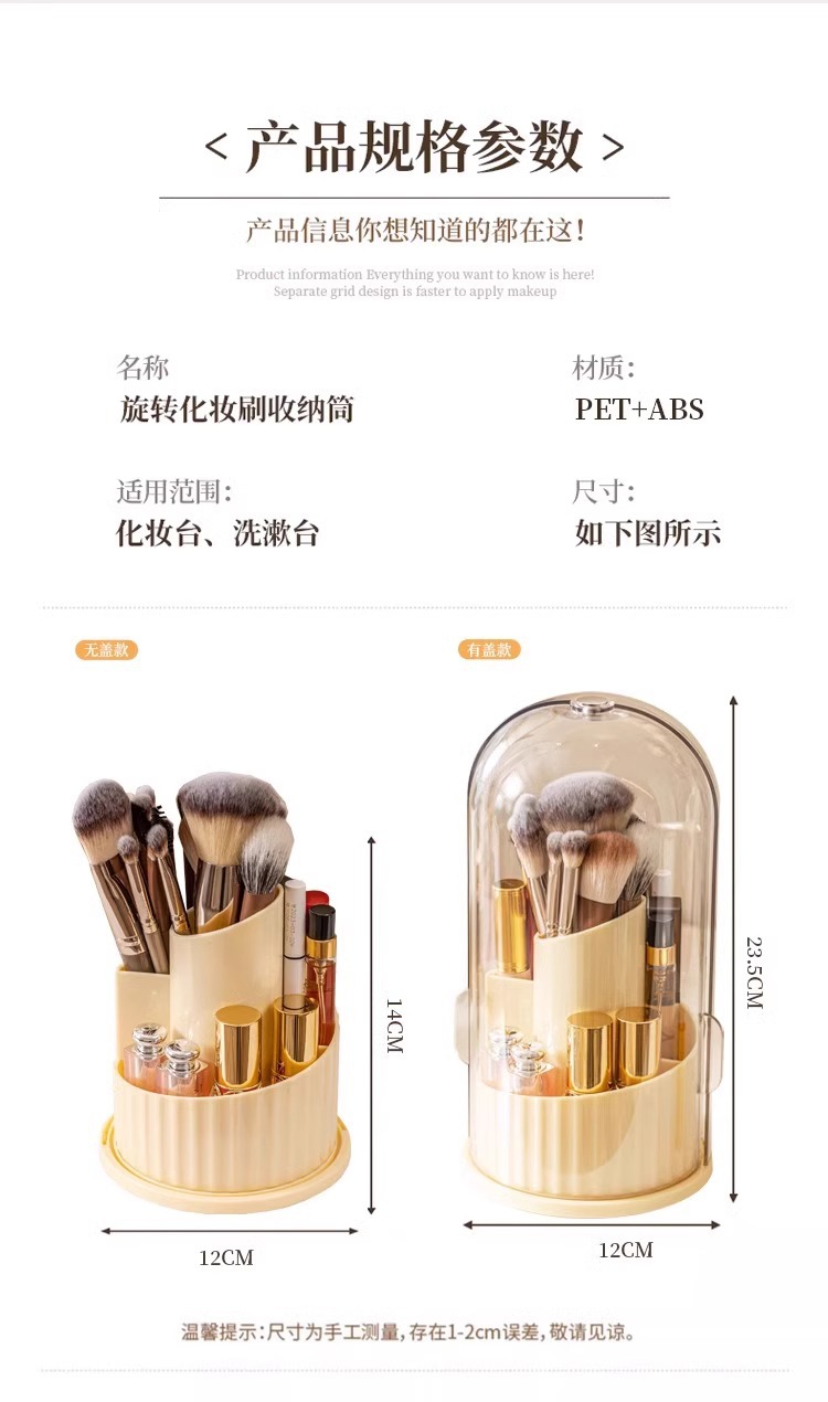 【防水防尘❗️旋转筒刷】化妆刷收纳筒口红眼影置物架桌面笔筒旋转防尘梳妆台化妆品收纳盒。ya