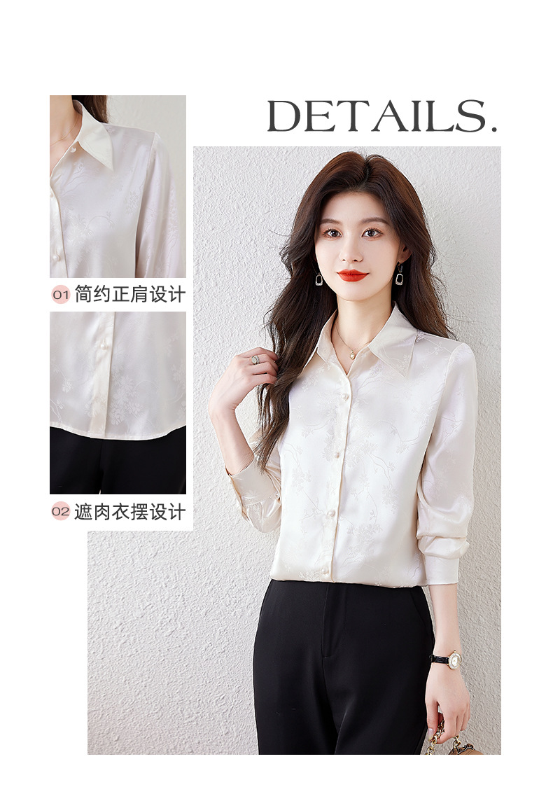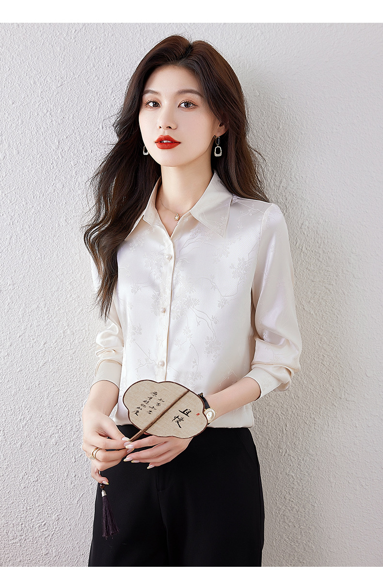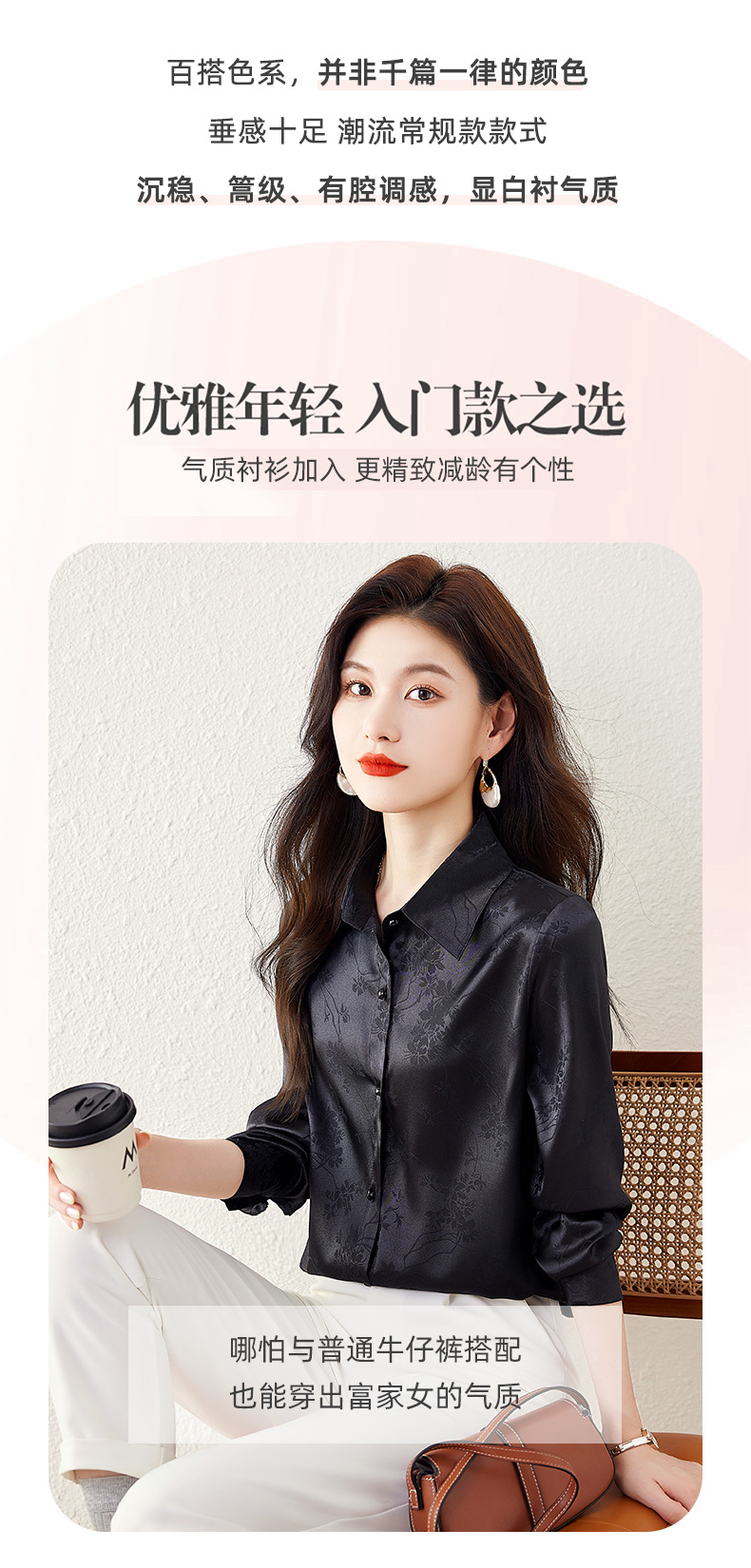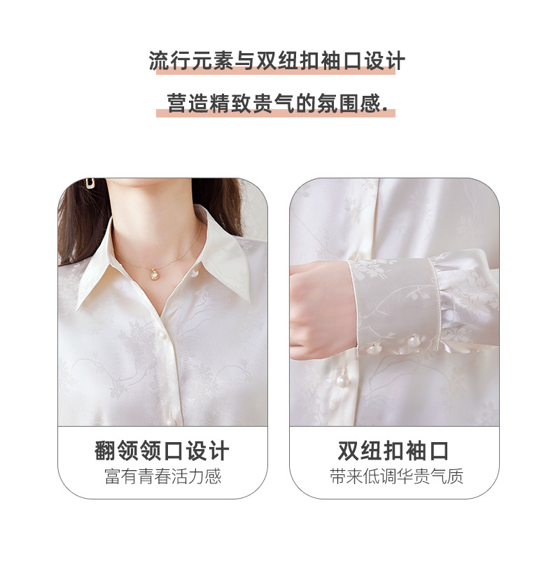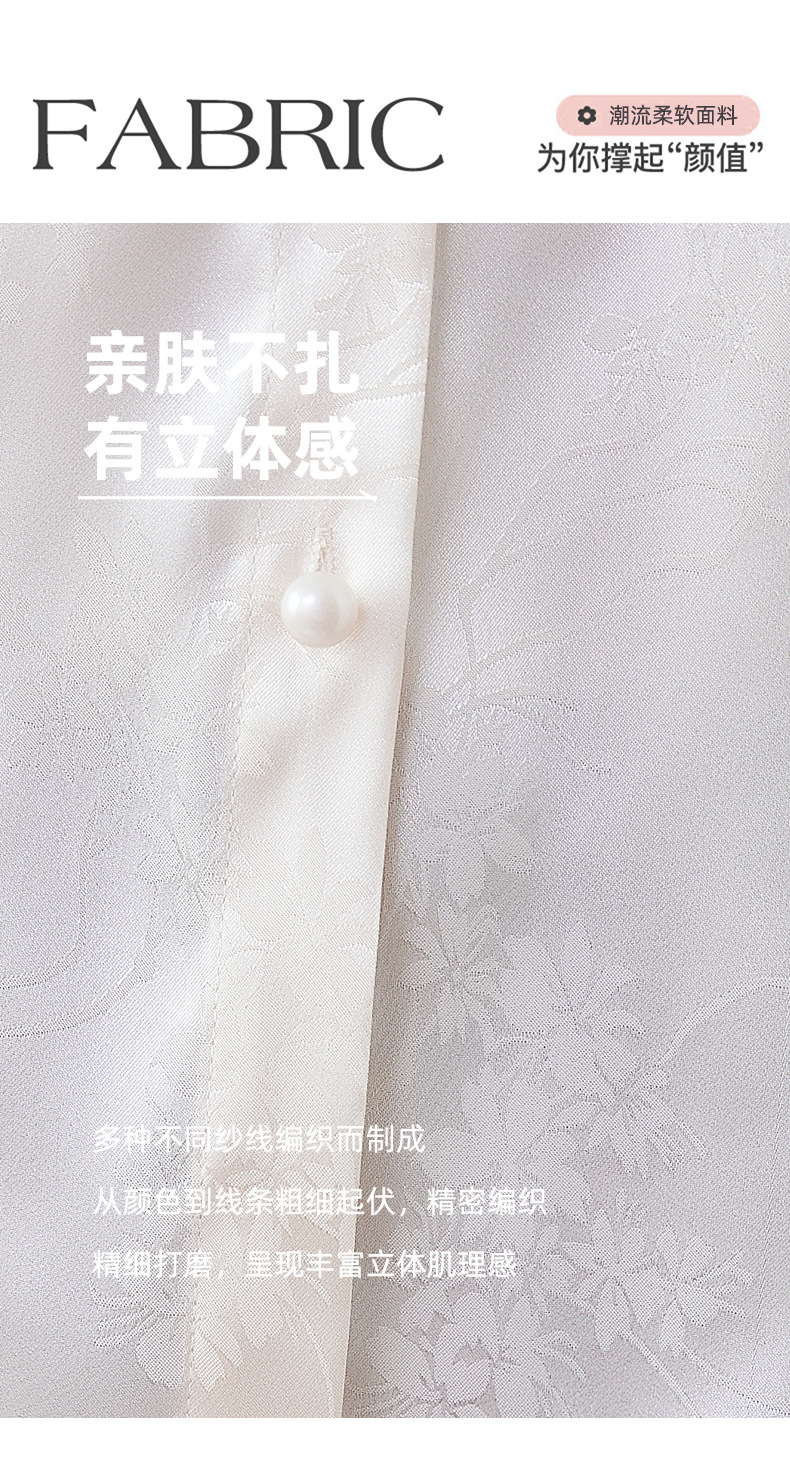 KQL-403H7780新款POLO领薄款衬衫女宽松提花气质国风复古衬衣开衫