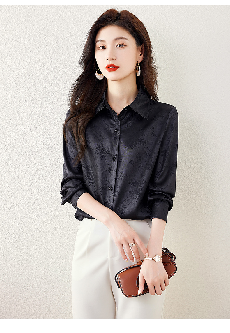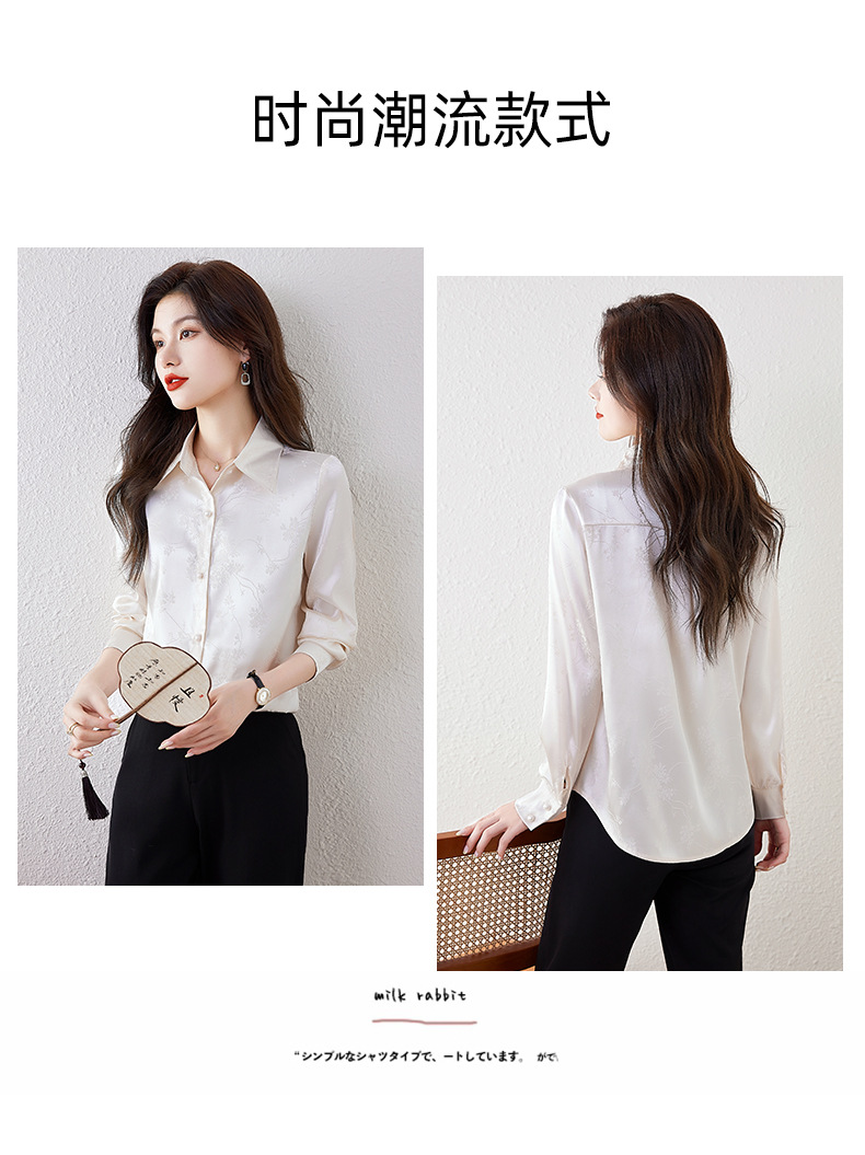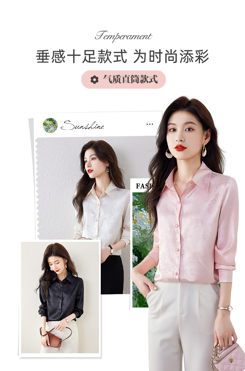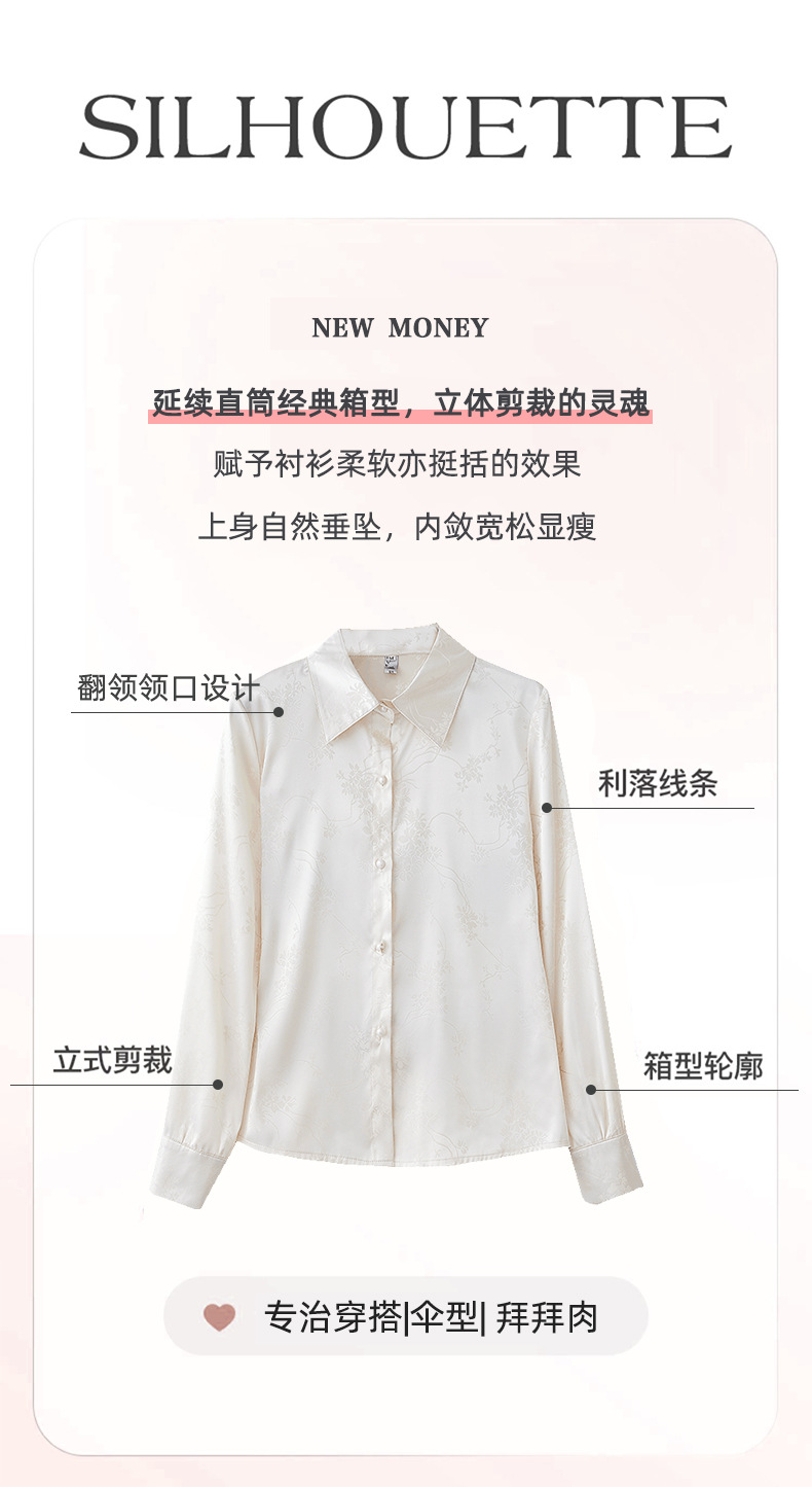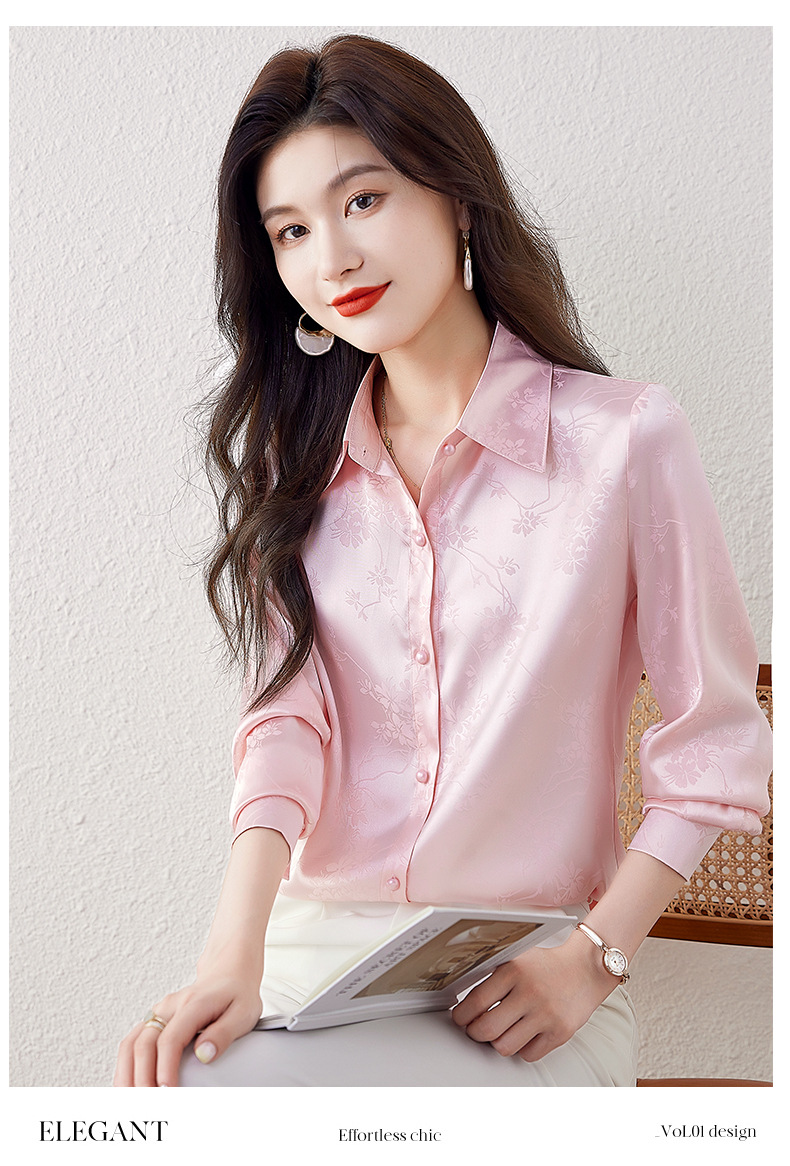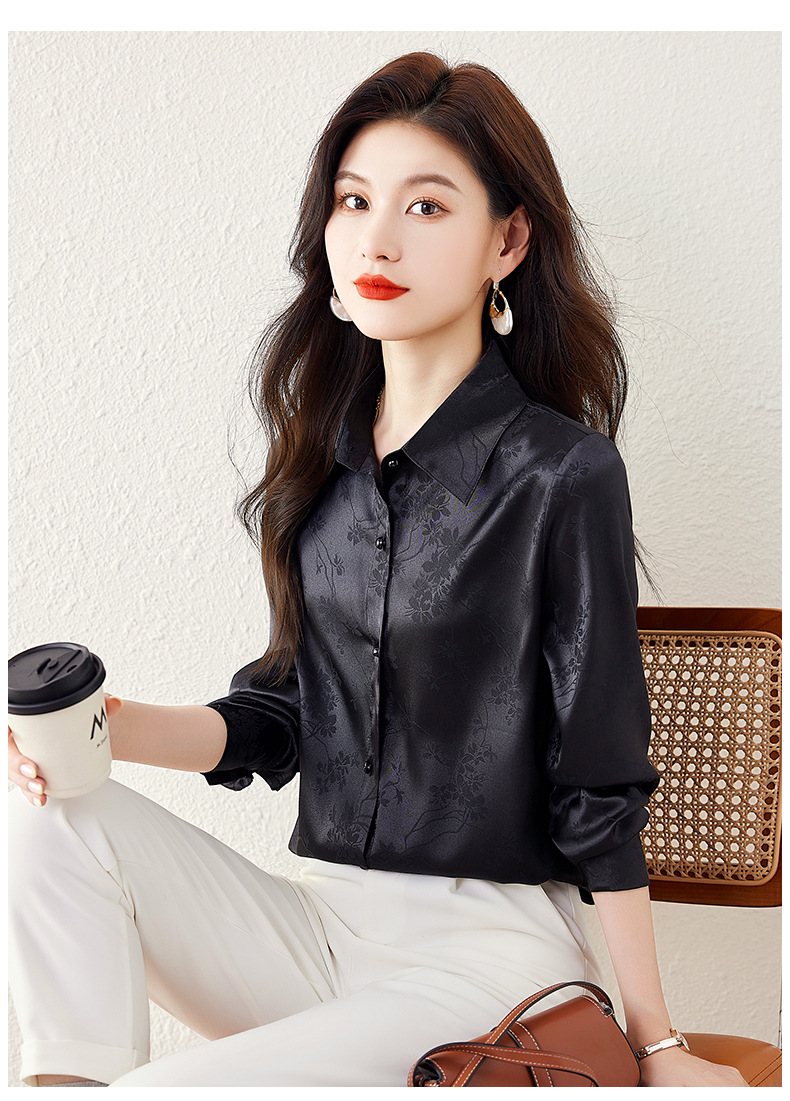 KQL-403H7780新款POLO领薄款衬衫女宽松提花气质国风复古衬衣开衫