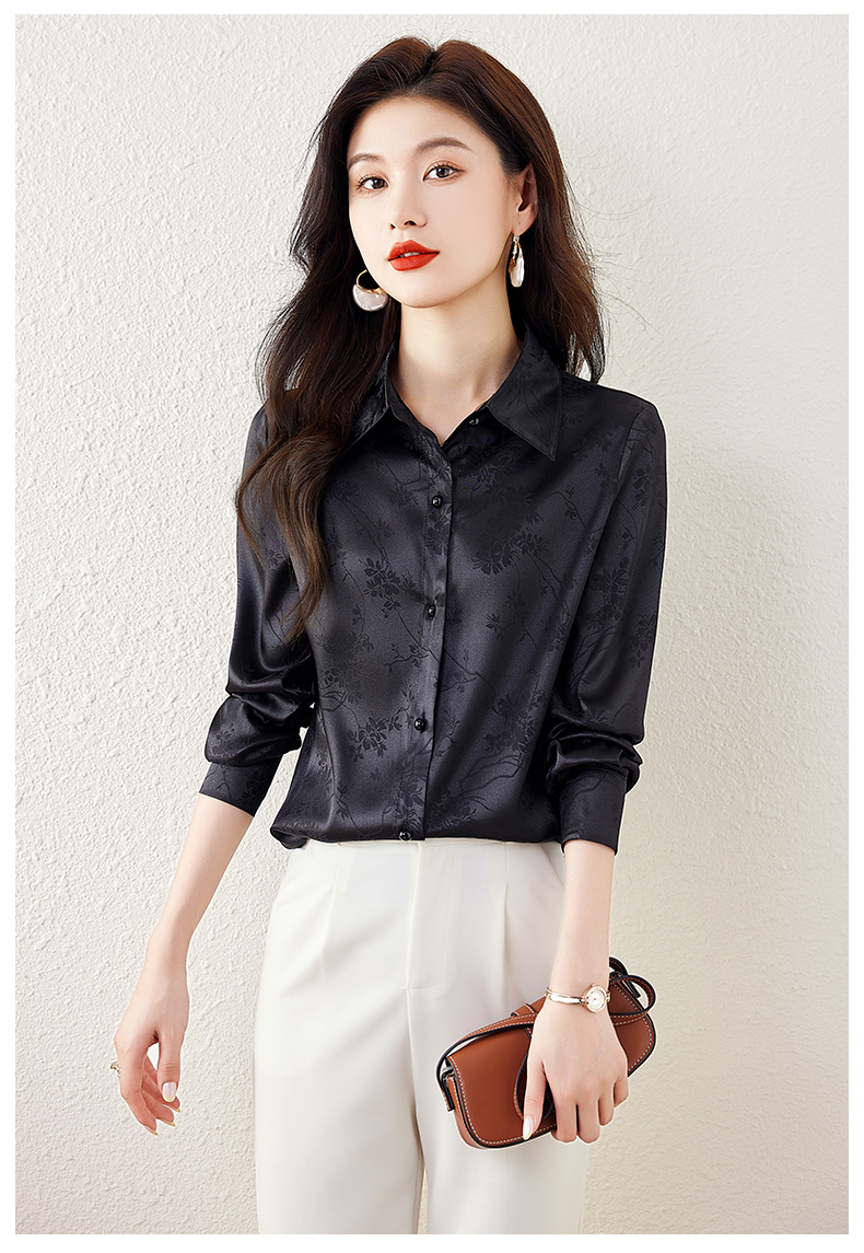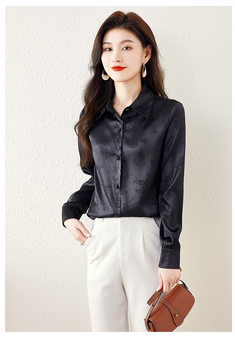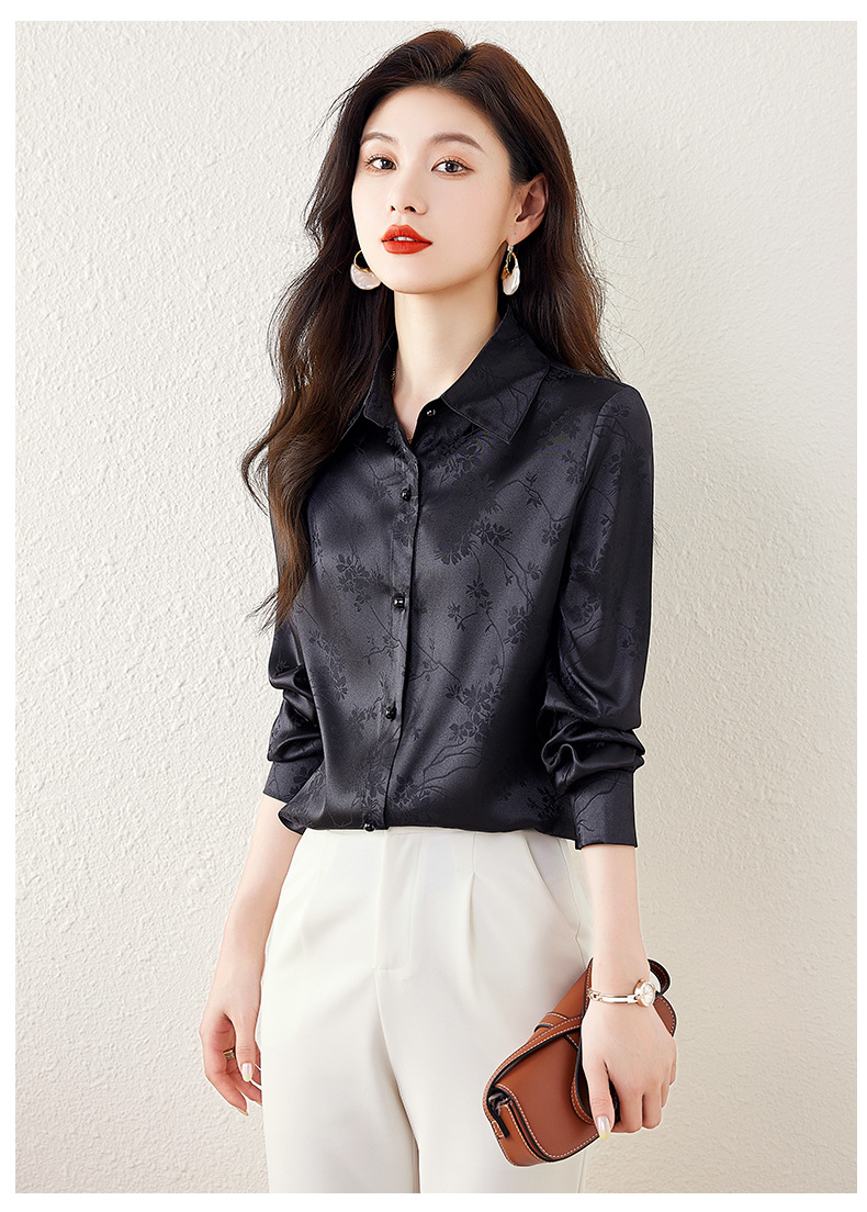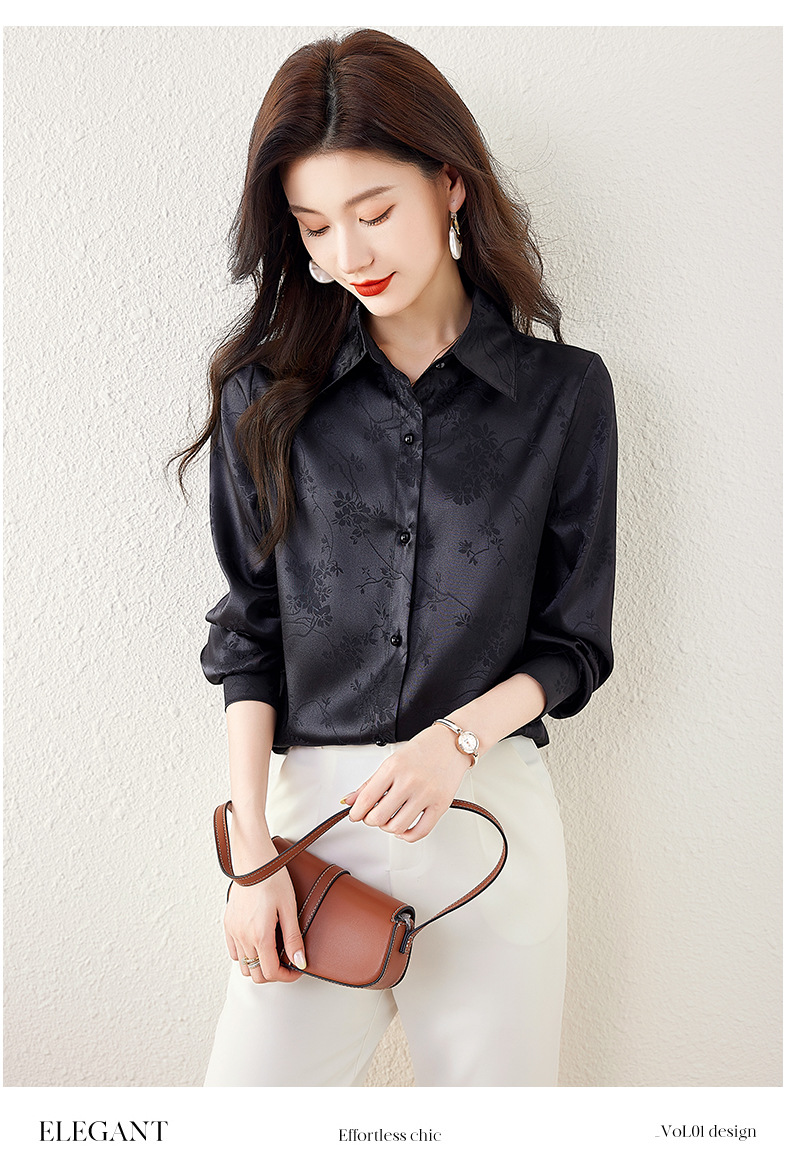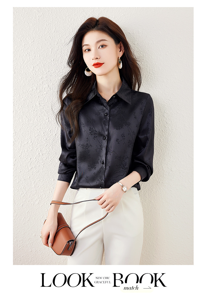 KQL-403H7780新款POLO领薄款衬衫女宽松提花气质国风复古衬衣开衫