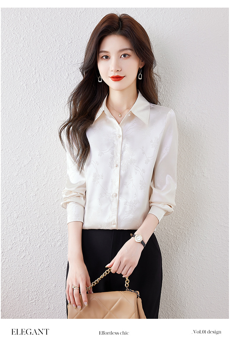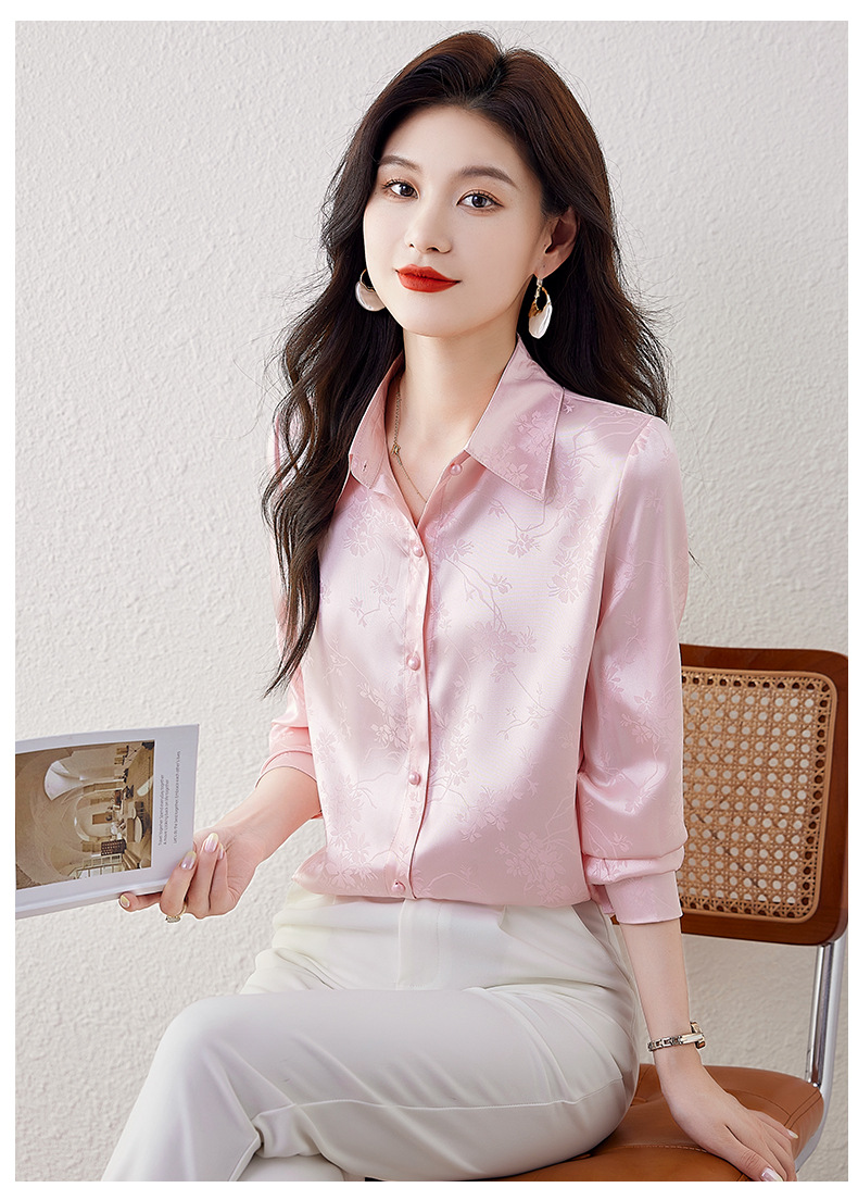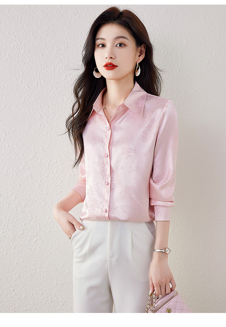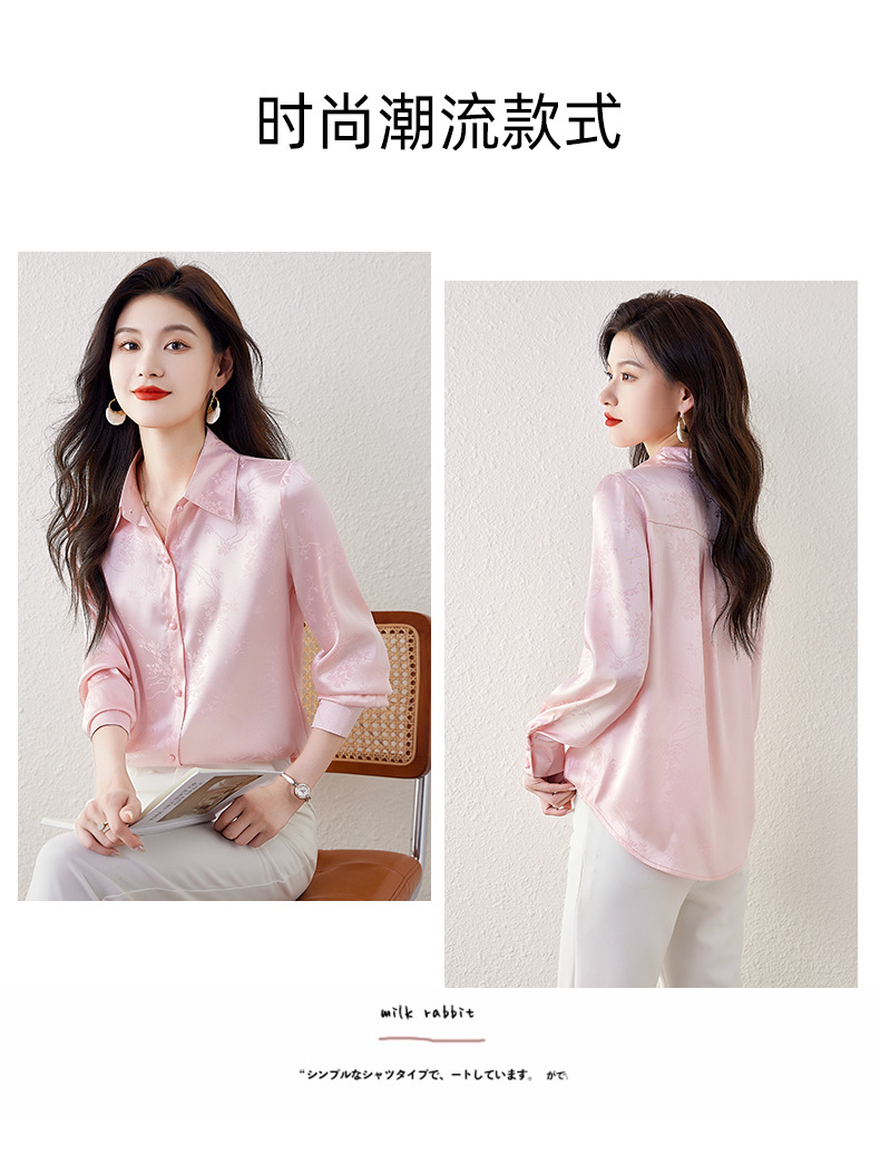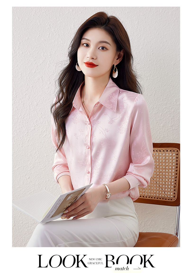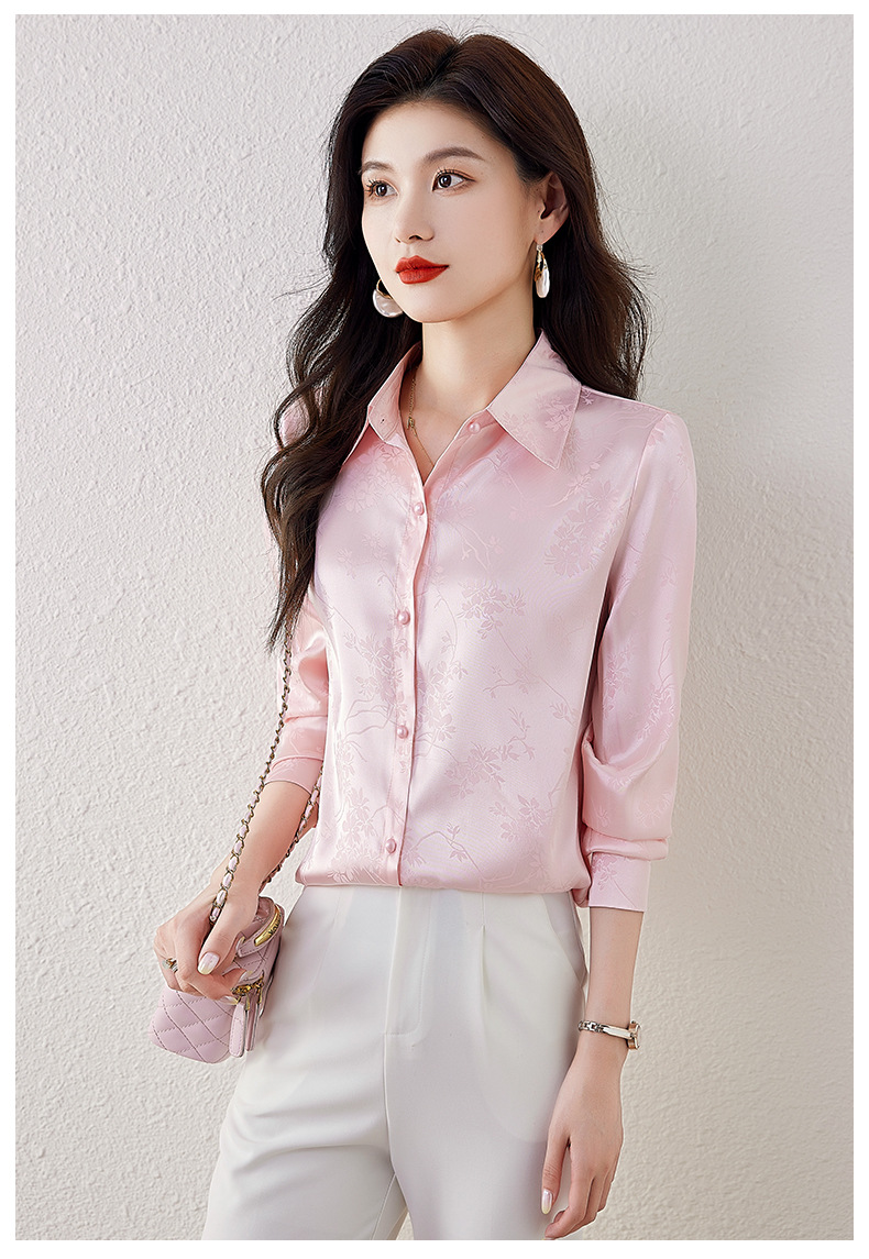 KQL-403H7780新款POLO领薄款衬衫女宽松提花气质国风复古衬衣开衫