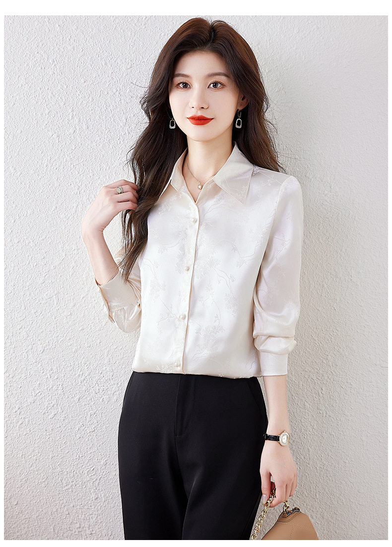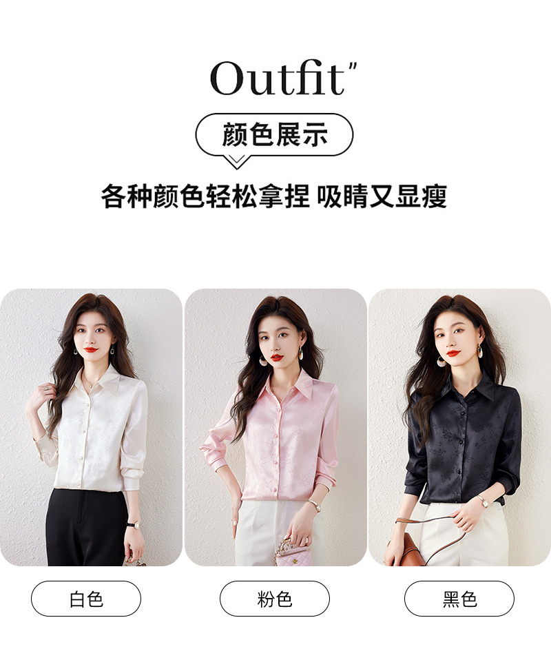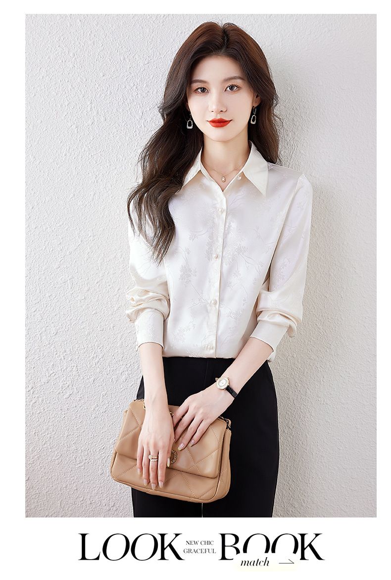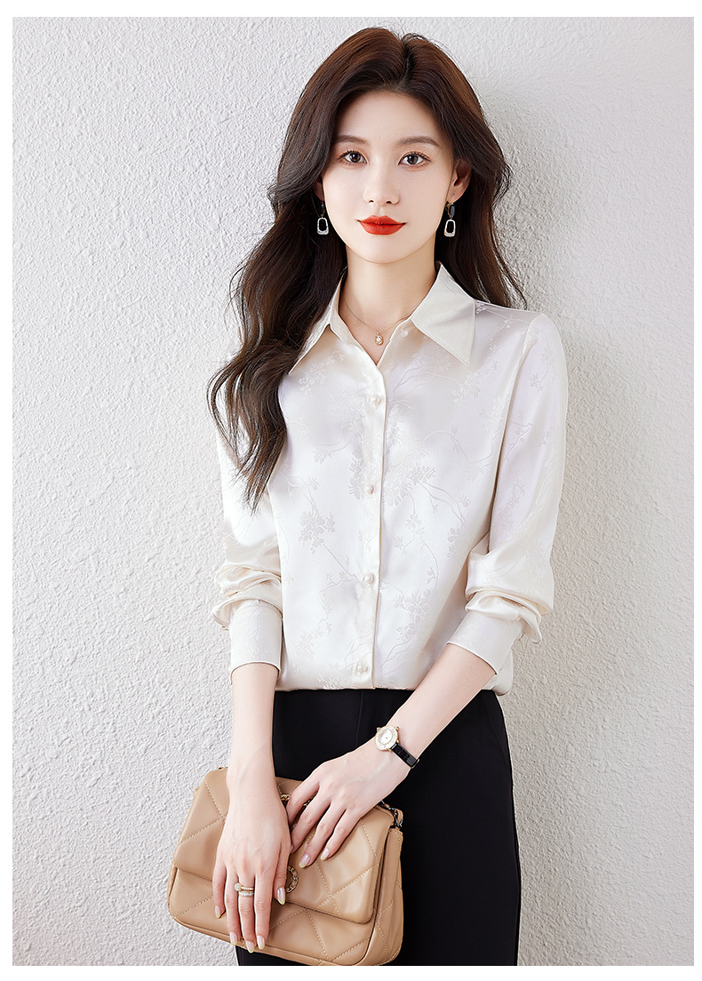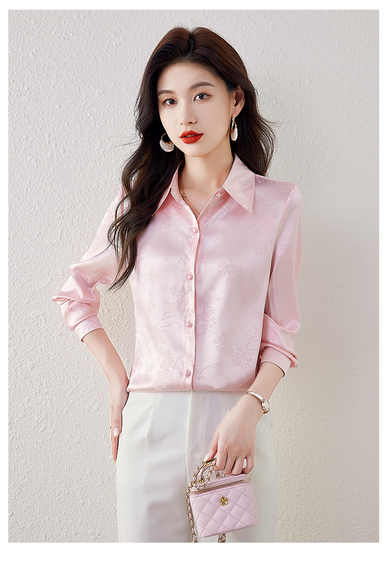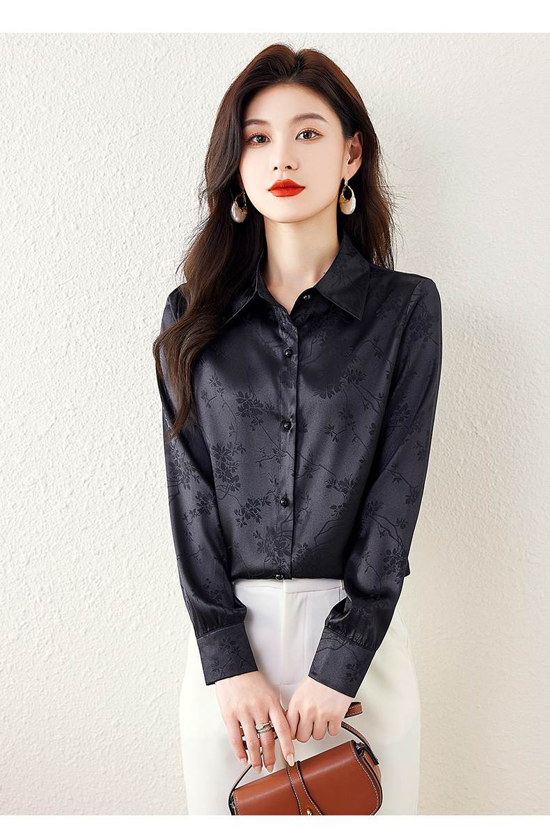 KQL-403H7780新款POLO领薄款衬衫女宽松提花气质国风复古衬衣开衫