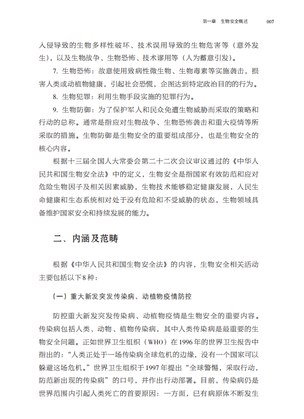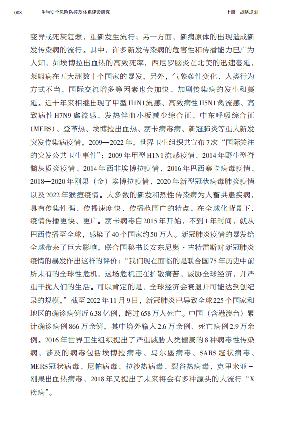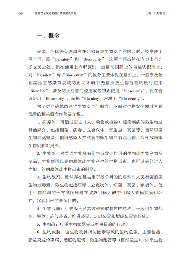 本书为军事科学院军事医学研究院陈薇院士领衔的科研团队最新研究成果。本项目立足国家生物安全保障重大需求,结合国内外理论研究成果,分析生物安全风险防控体系建设的内涵、目标和路径,论述国内外生物安全领域发展现状及生物安全的战略意义,并从战略管理、法律法规、协同创新、安全治理、能力建设等维度对生物安全领域展开系统研究,同时基于我国生物安全的发展现状和特点,提出风险防控的对策建议,对于防范生物风险、促进生物技术发展、构建国家生物安全体系等方面具有十分重要的理论和现实意义。