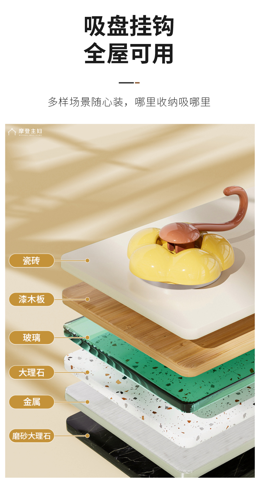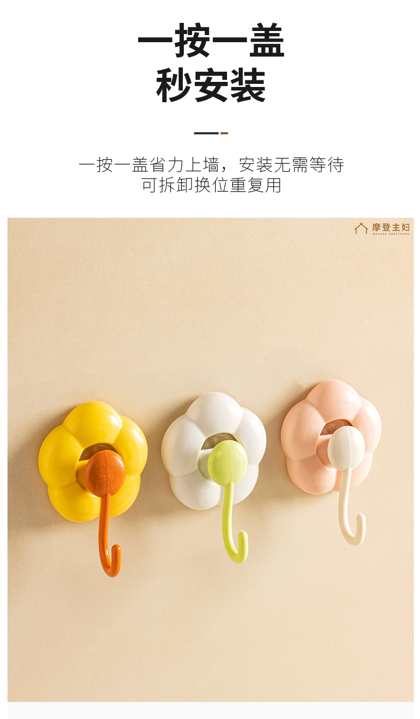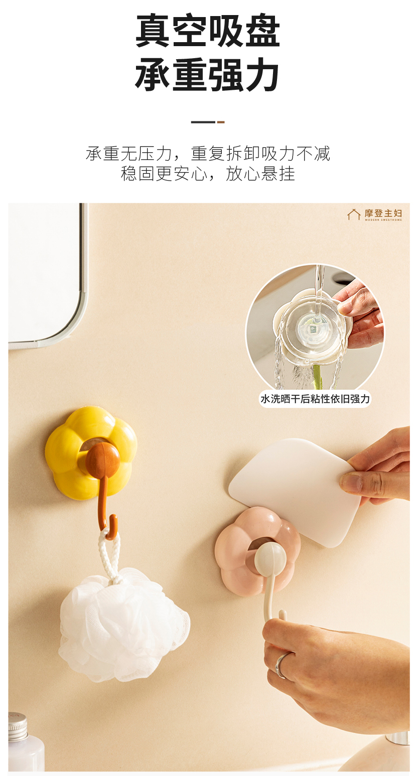 摩登主妇吸盘挂钩免打孔强力承重厨房卫生间门后壁挂真空无痕粘钩