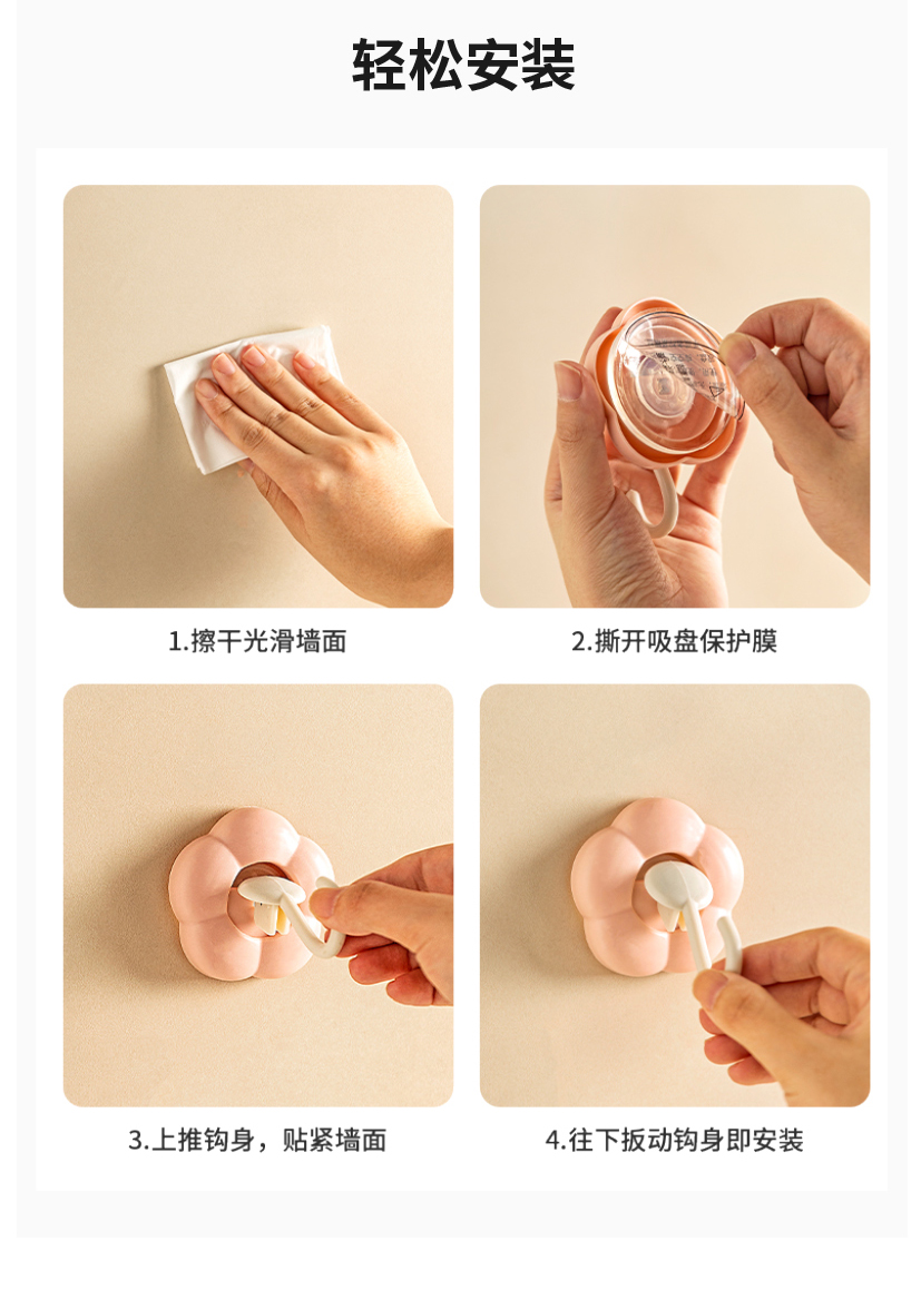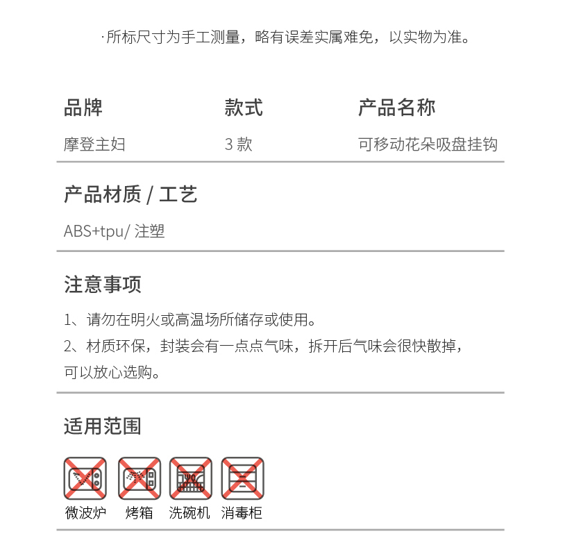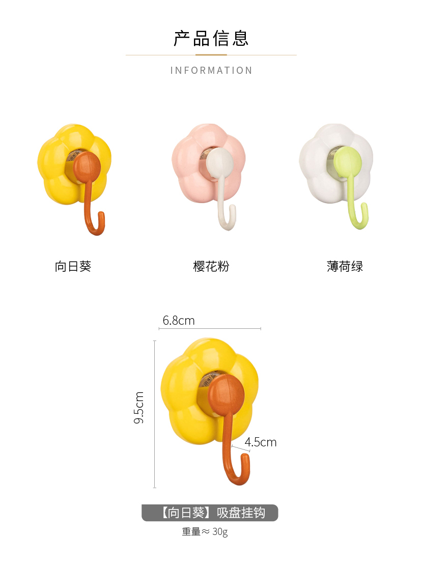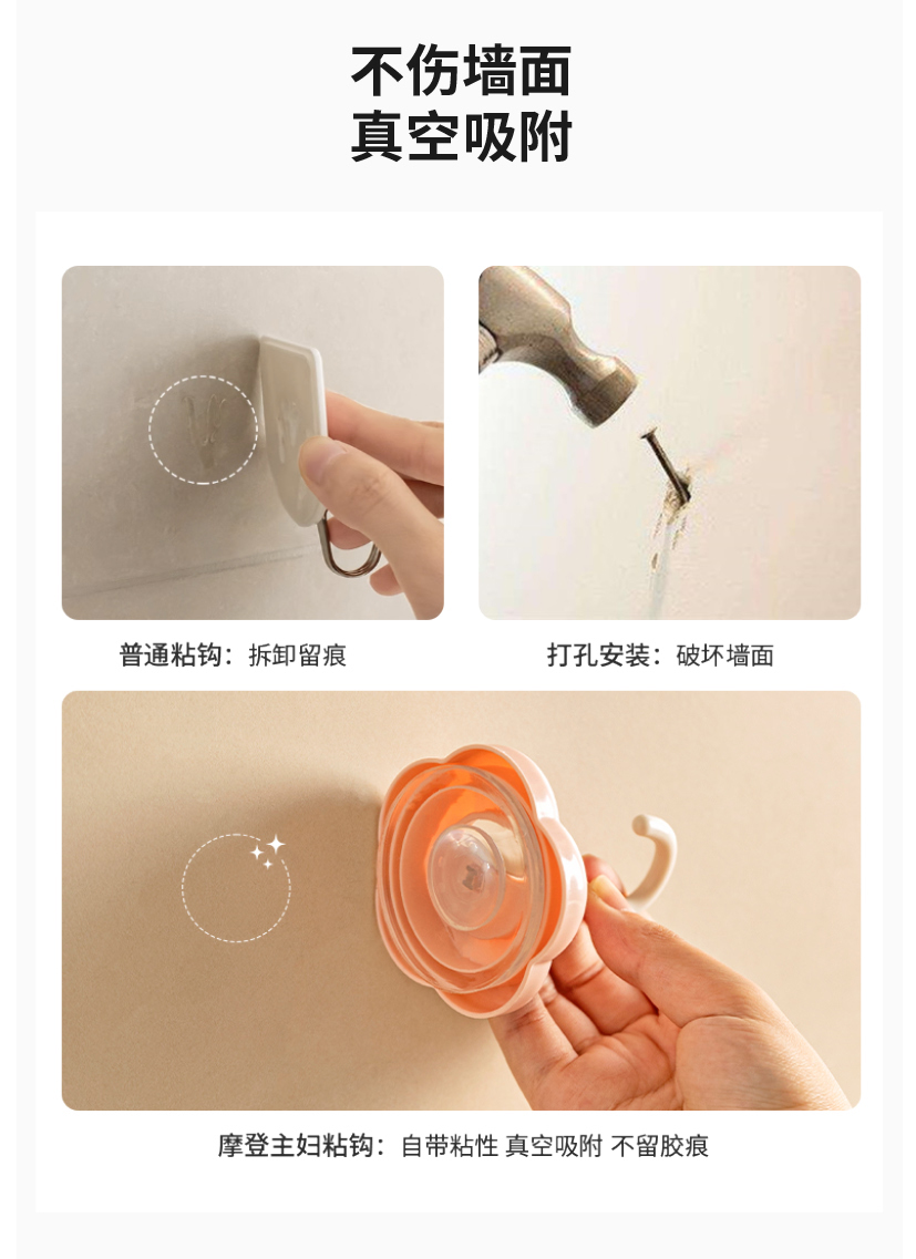 摩登主妇吸盘挂钩免打孔强力承重厨房卫生间门后壁挂真空无痕粘钩