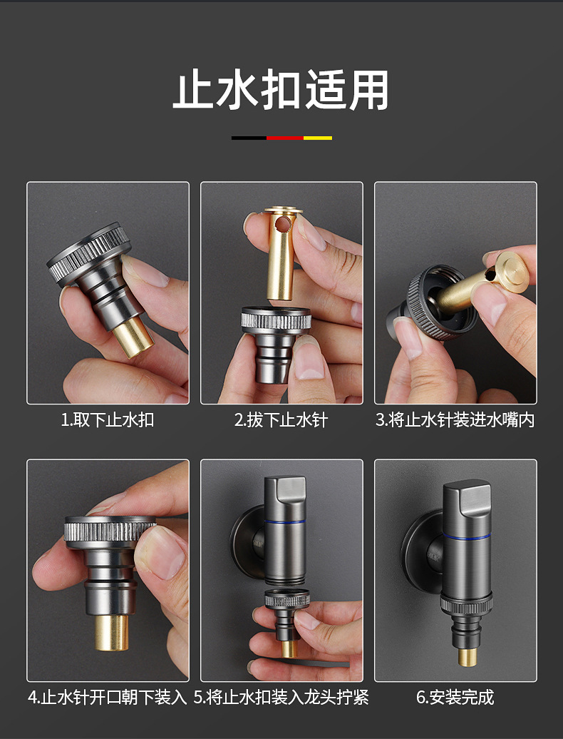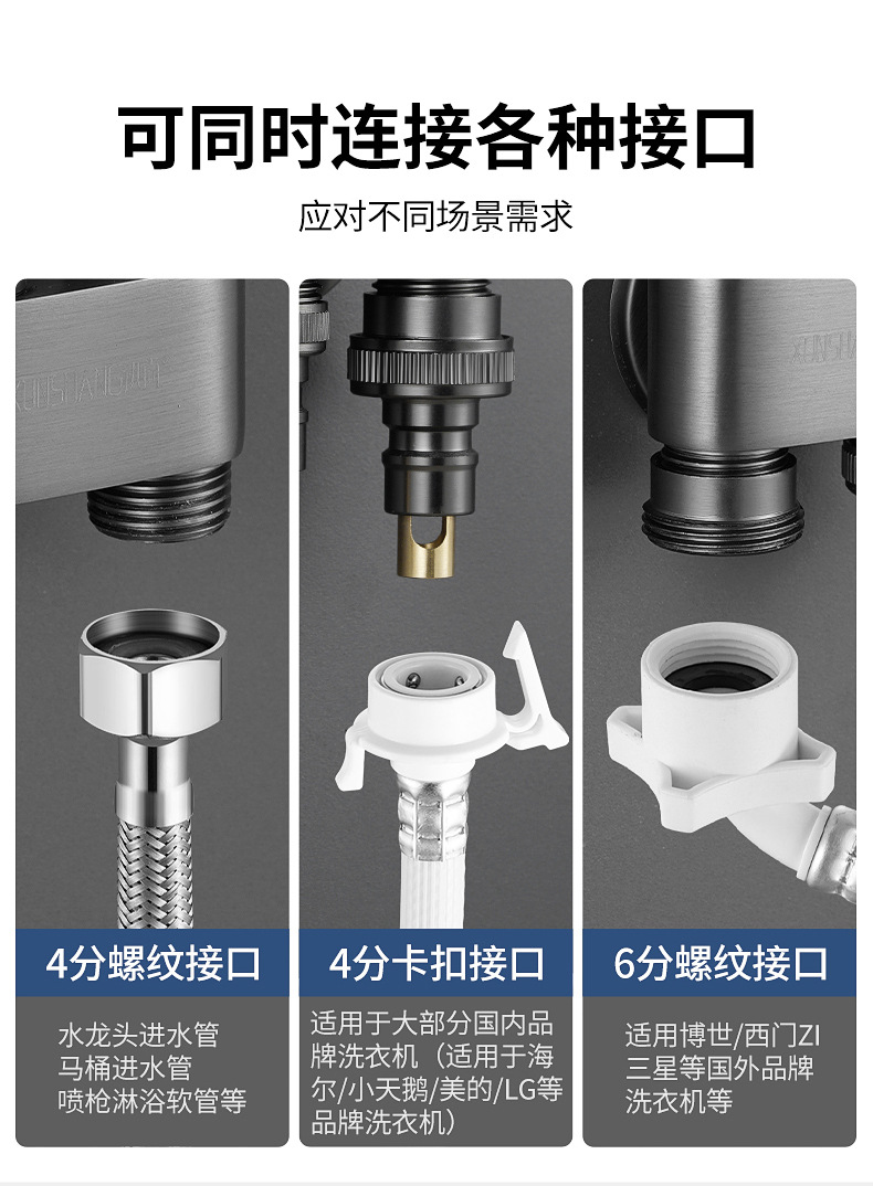 星罗全铜体洗衣机水短型角阀家用迷你省空间自动止水4/6分