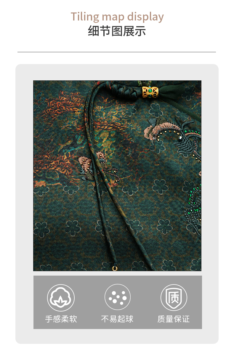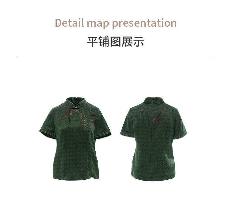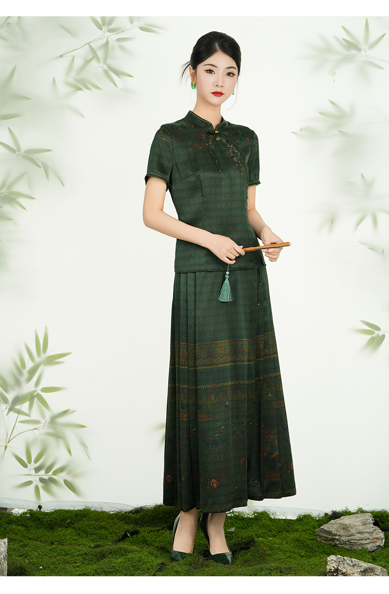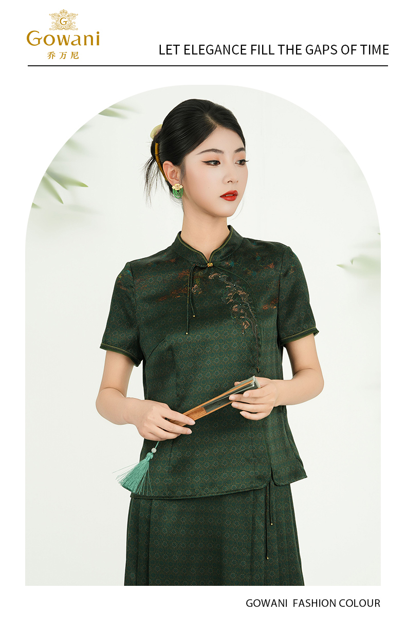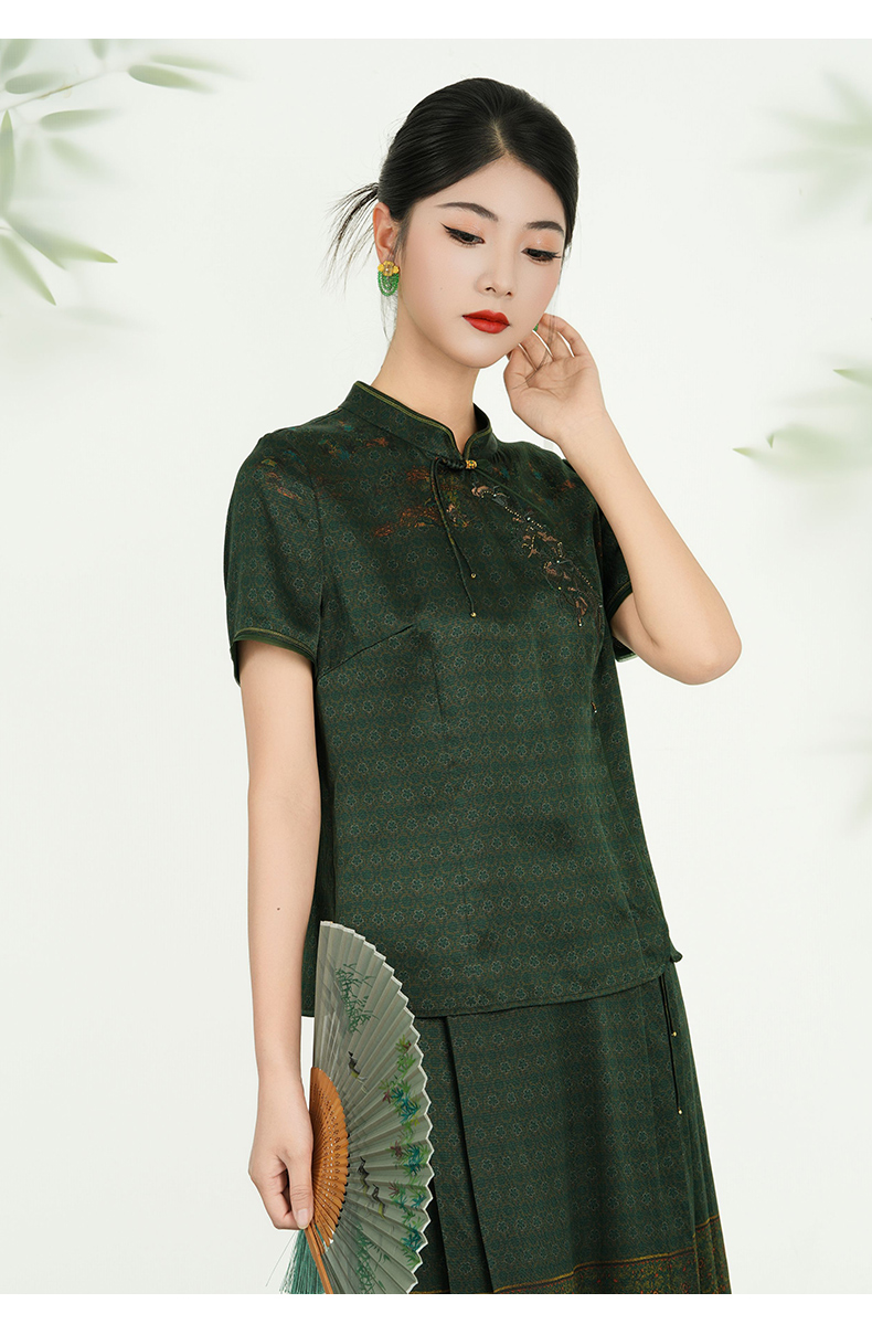 乔万尼新品松绿色云涧山景图新中式100%真丝上衣ED2C448