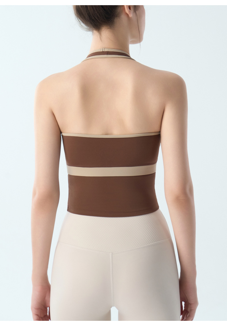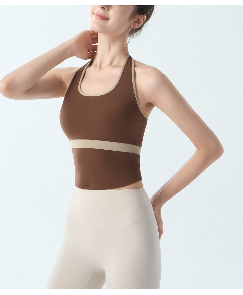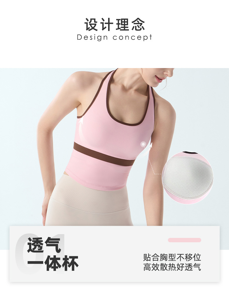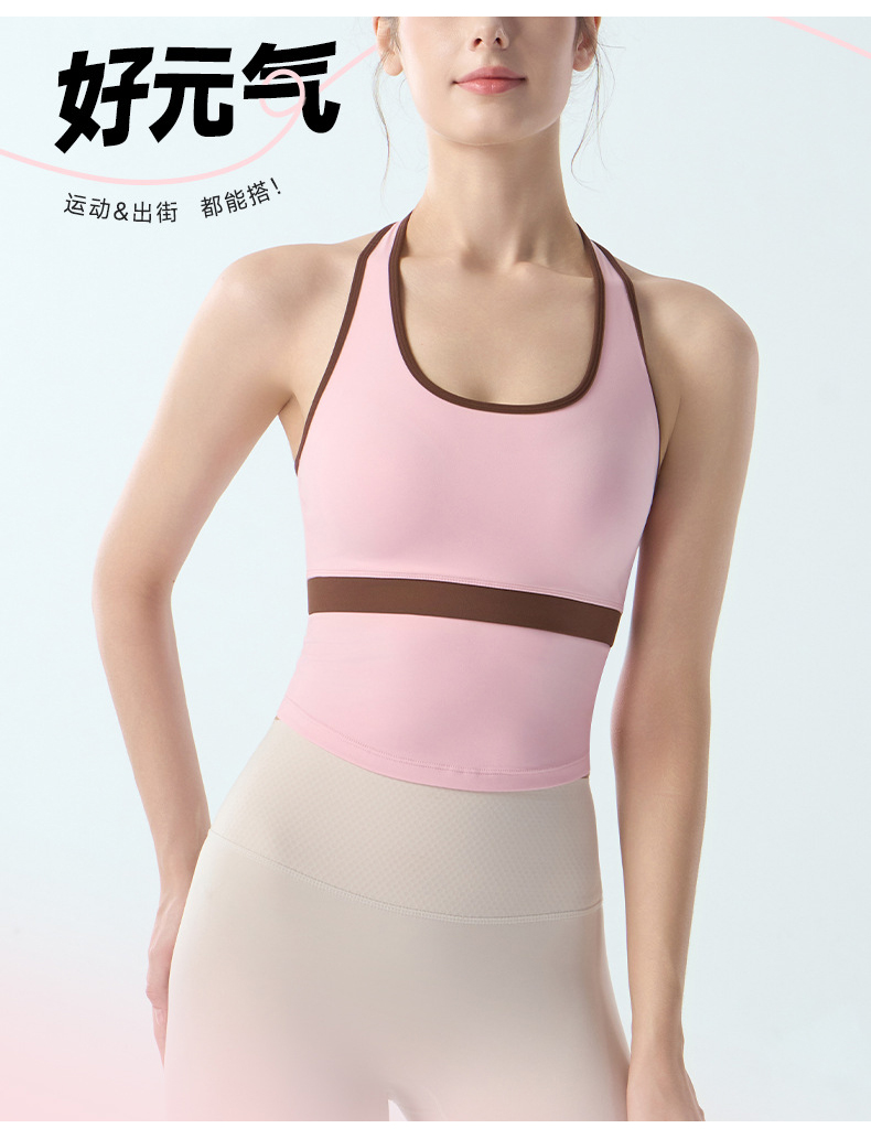 跃牌【海听系列】新款挂脖美背吊带瑜伽服背心带胸垫防震运动内衣女XC115-1