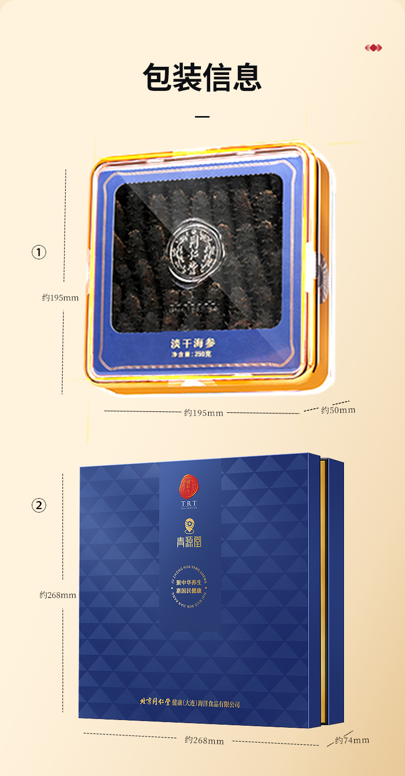 【正宗同仁堂品牌】北京同仁堂 青源堂 淡干海参250克 高蛋白高营养SY