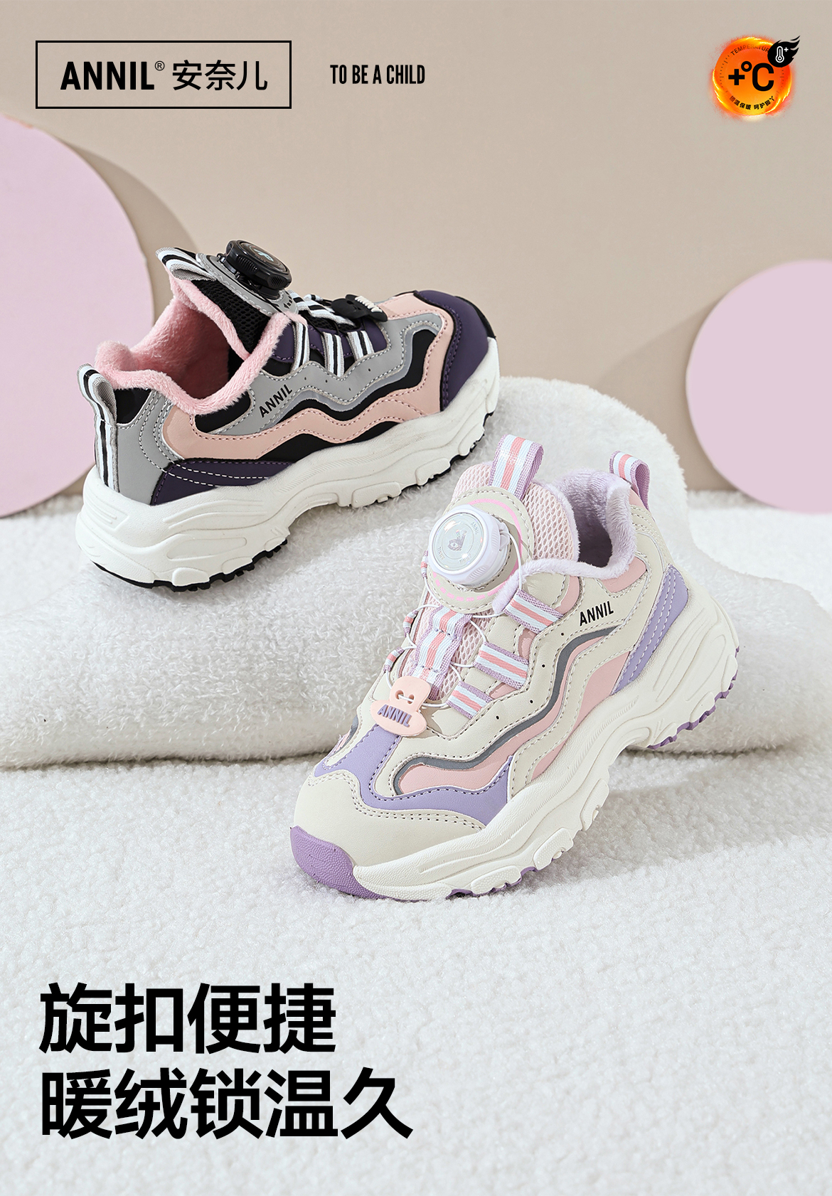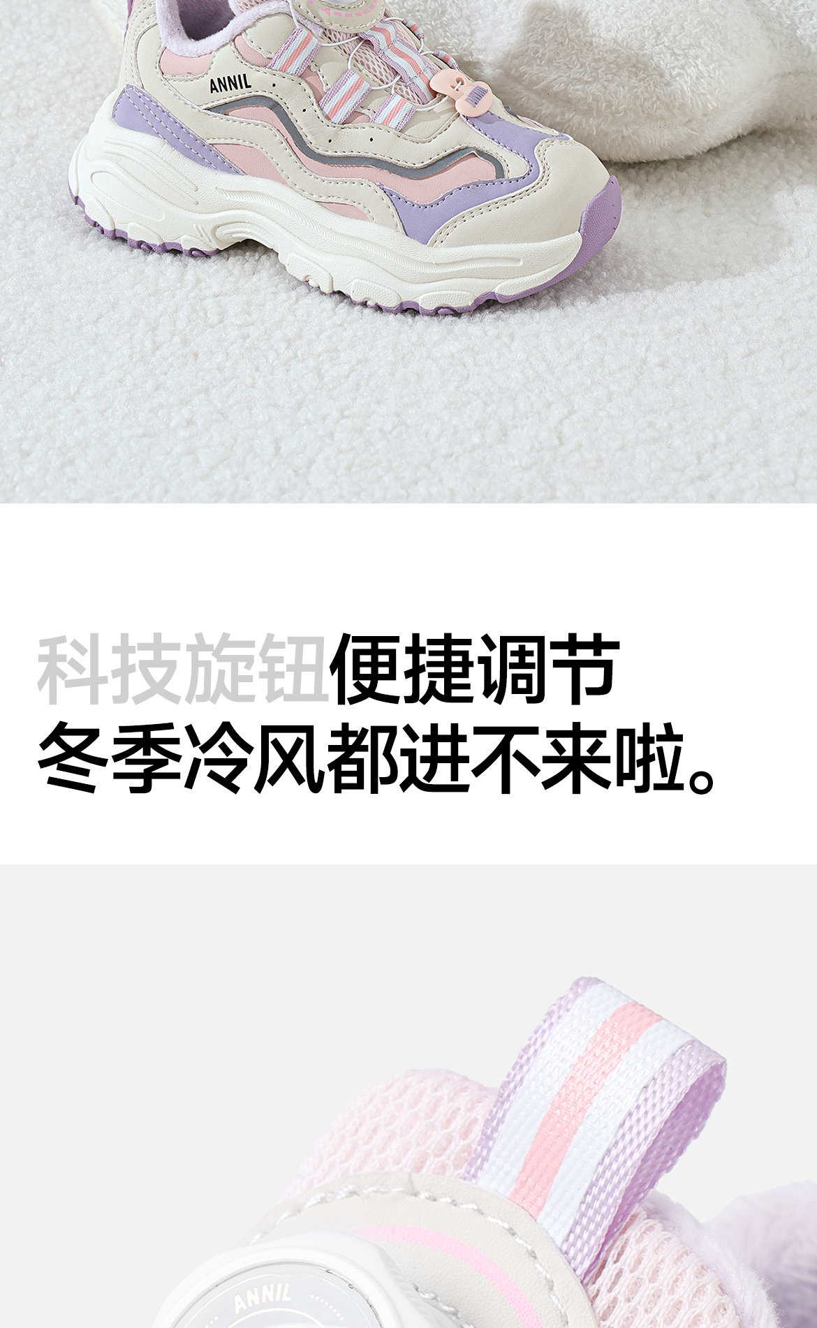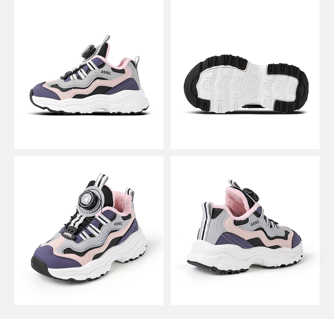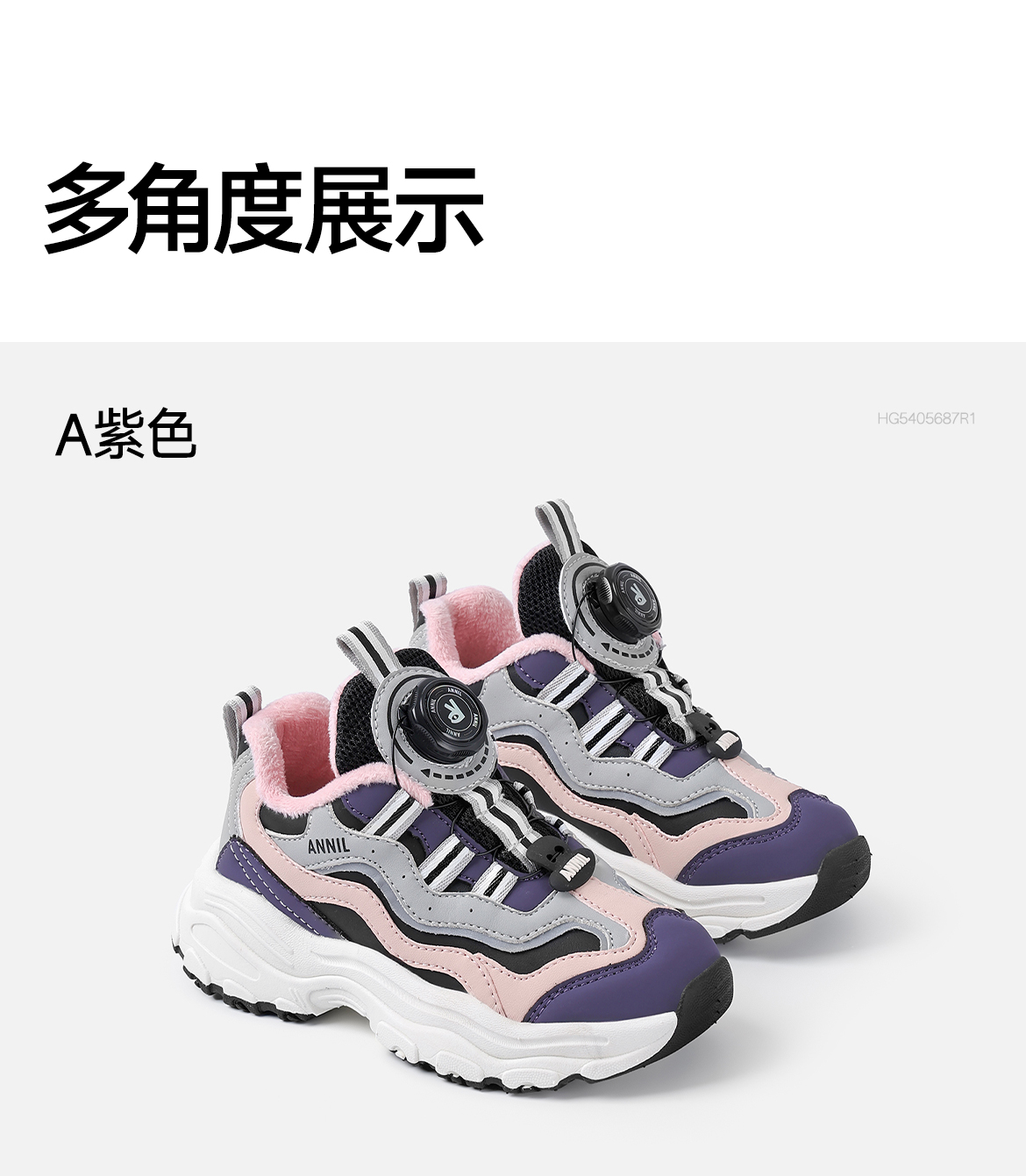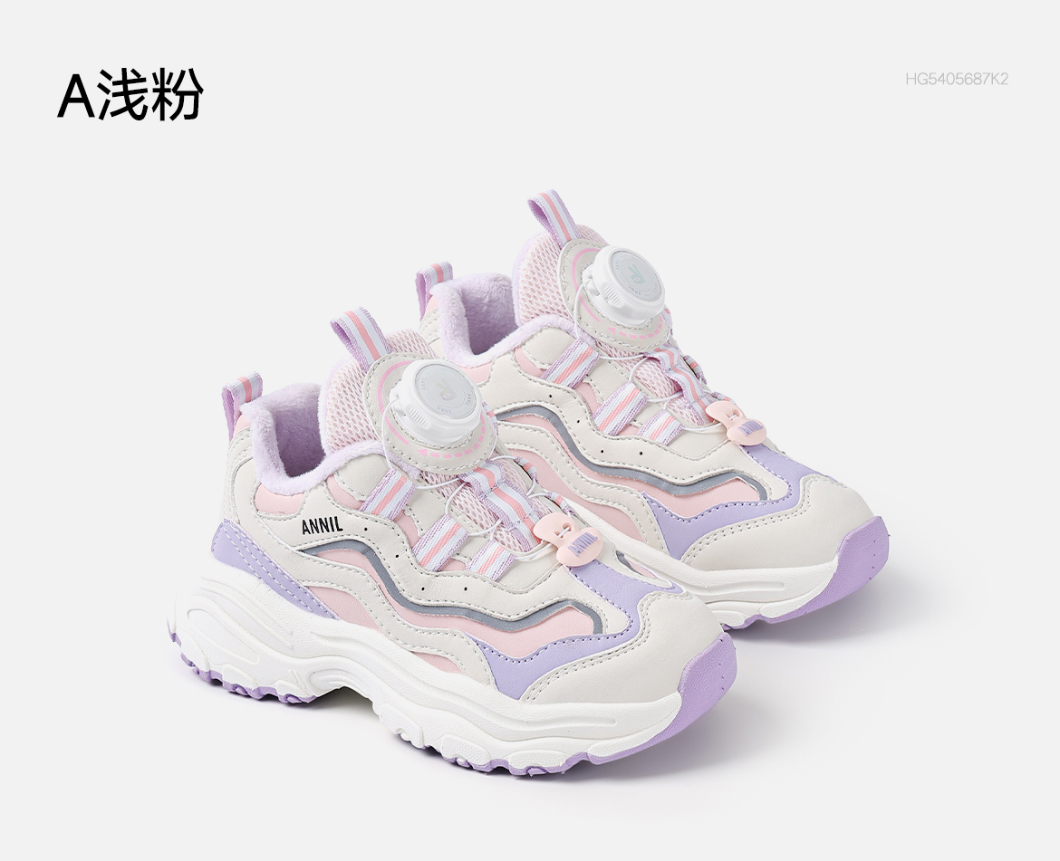 ANNIL/安奈儿童鞋女童冬季加绒保暖休闲鞋旋转纽扣秋冬季透气防滑运动鞋HG5405687