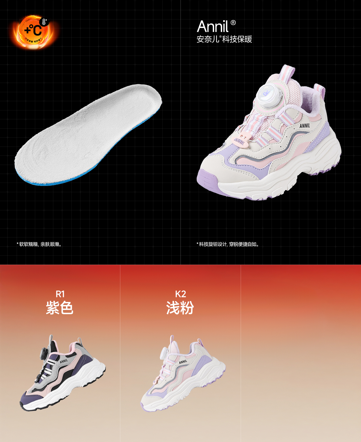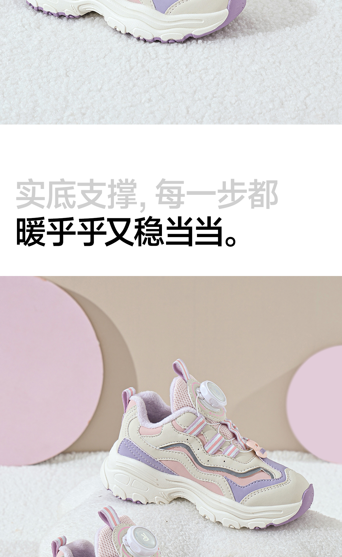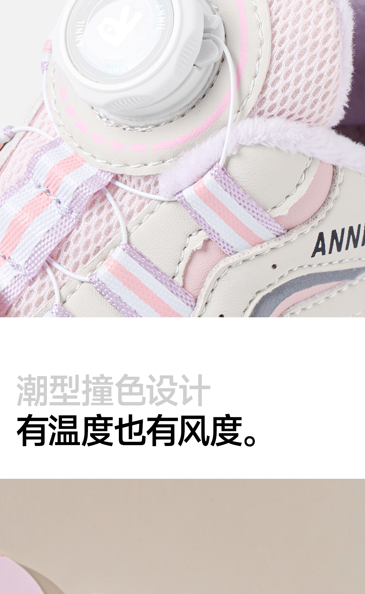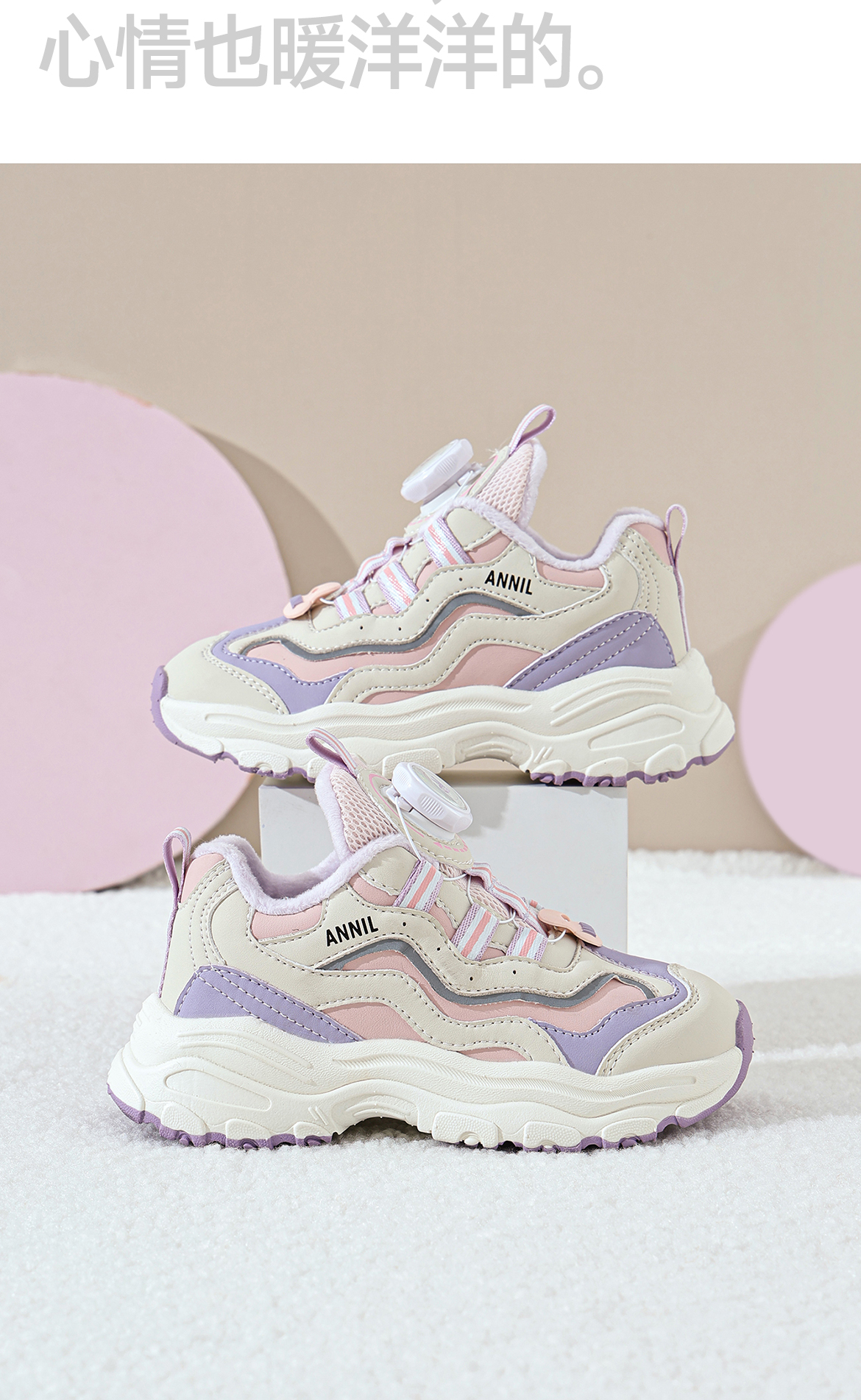 ANNIL/安奈儿童鞋女童冬季加绒保暖休闲鞋旋转纽扣秋冬季透气防滑运动鞋HG5405687